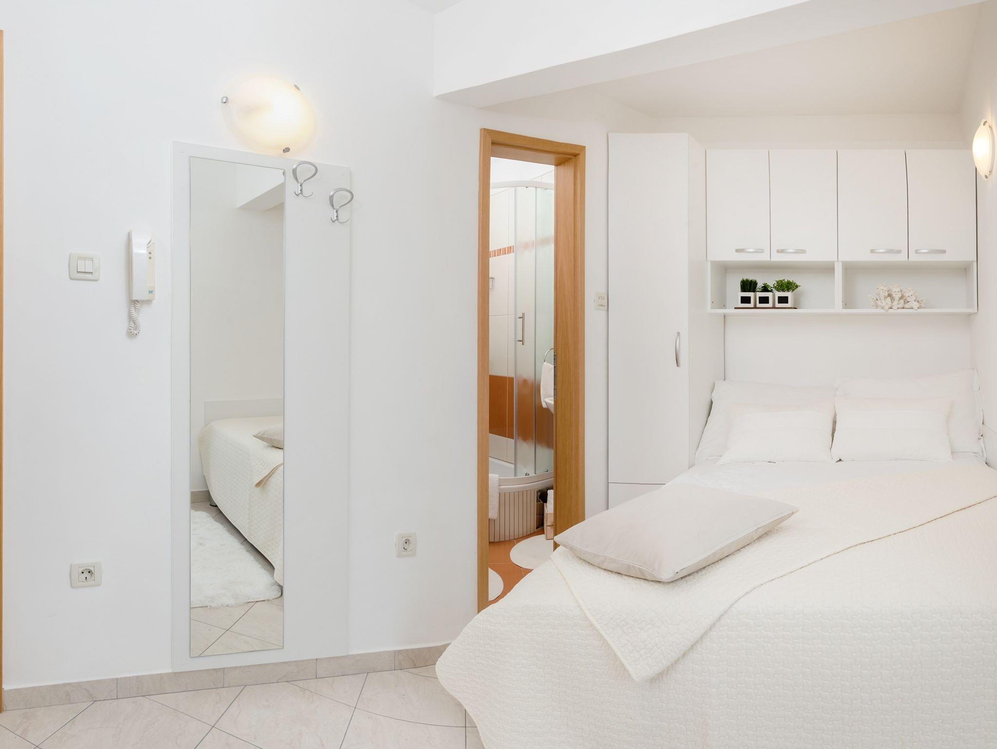 Zimmer bietet Platz für 2 Gäste. Die Betten sind in Schlafzimmern, die es 1 gibt, innerhalb einer Gesamtfläche von 10m2, angeordnet. Die Gäste haben einen eigenen Balkon zur Verfügung, auf der sie in warmen Sommernächten genießen können. Das Zimmer bietet Meerblick. Die reservierte Unterkunftseinheit ist ein Zimmer mit eigenem Badezimmer ohne die Möglichkeit der Nutzung einer Küche. IM PREIS INBEGRIFFEN: Kurtaxe, Endreinigung, Klimatisierung, Parkplatz, Internet. VERBINDLICHE ZUSÄTZLICHE KOSTEN: Aufzahlung für Kurzaufenthalte (prozentualer Zuschlag pro Nächtigungsanzahl: 30% - 1, 20% - 2, 10% - 3). Die Verfügbarkeit zusätzlicher Dienstleistungen in Ihrem reservierten Termin und die Preise derselben (falls nicht aufgeführt) müssen im Voraus überprüft werden. Zusätzliche Dienstleistungen die in der Zahlungsaufforderung nicht aufgeführt sind werden direkt beim Vermieter bezahlt, angenommen der Gast nutzt auch diese.