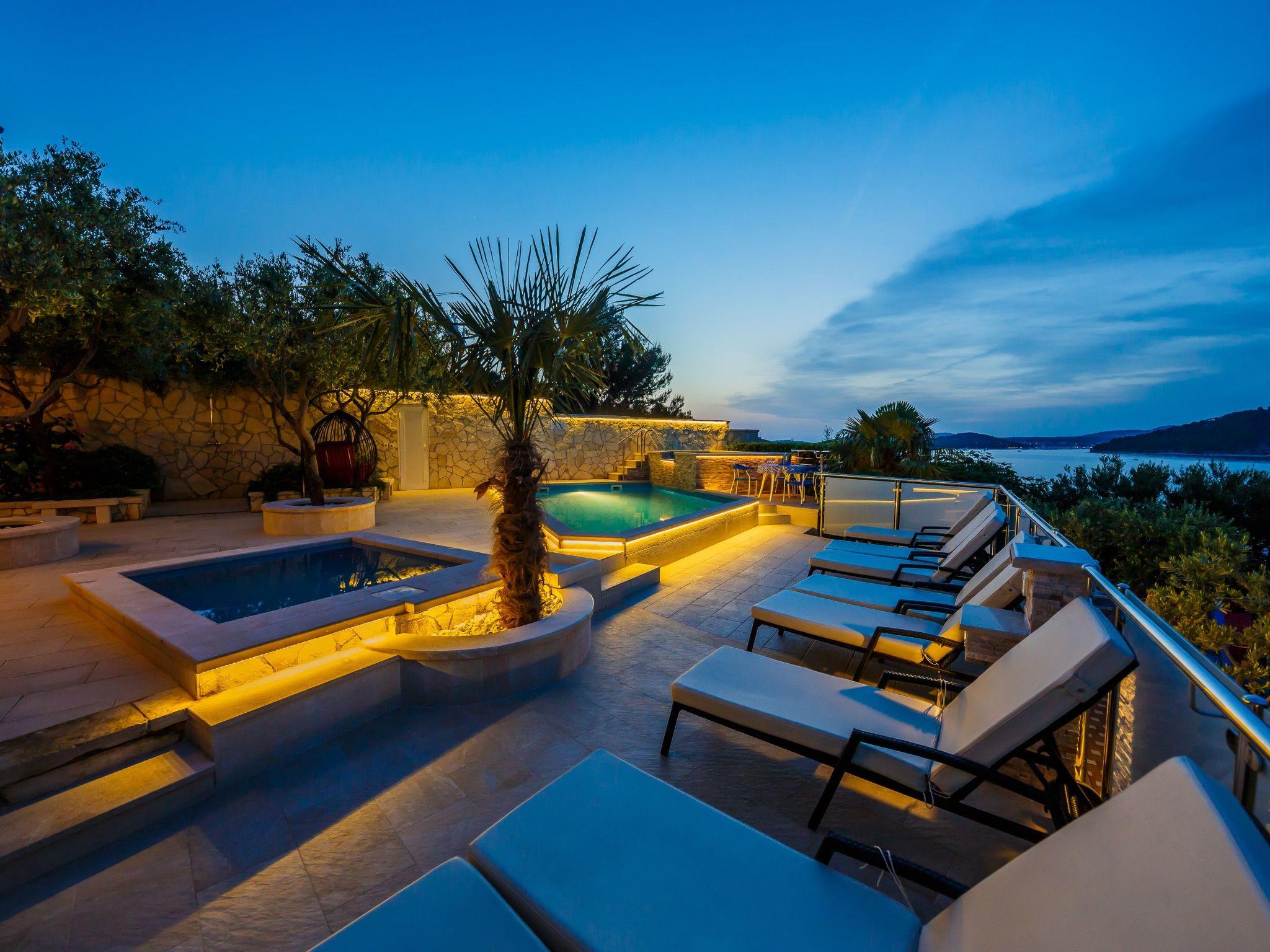 This holiday villa with its fantastic pool area and private jetty is just 10 meters from the beach and the sea. It is located between Split and Šibenik, in the wonderfully quiet fishing village Ražanj, ideal location for a relaxing holiday.Grandiose holiday villa with pool, children's pool, whirlpool, summer kitchen, sauna, gym, billiards and private jetty, only ten meters from the sea in a quiet location