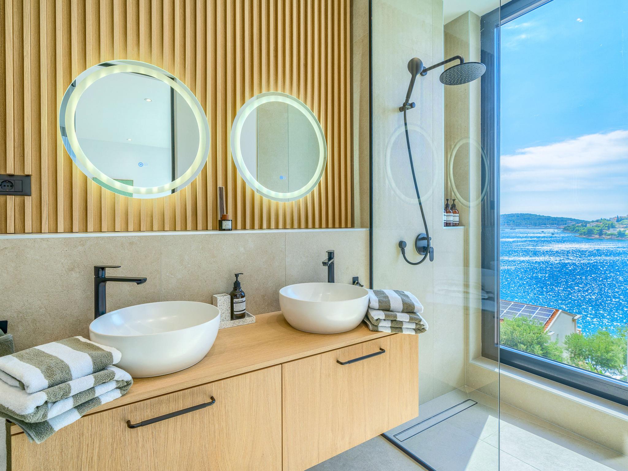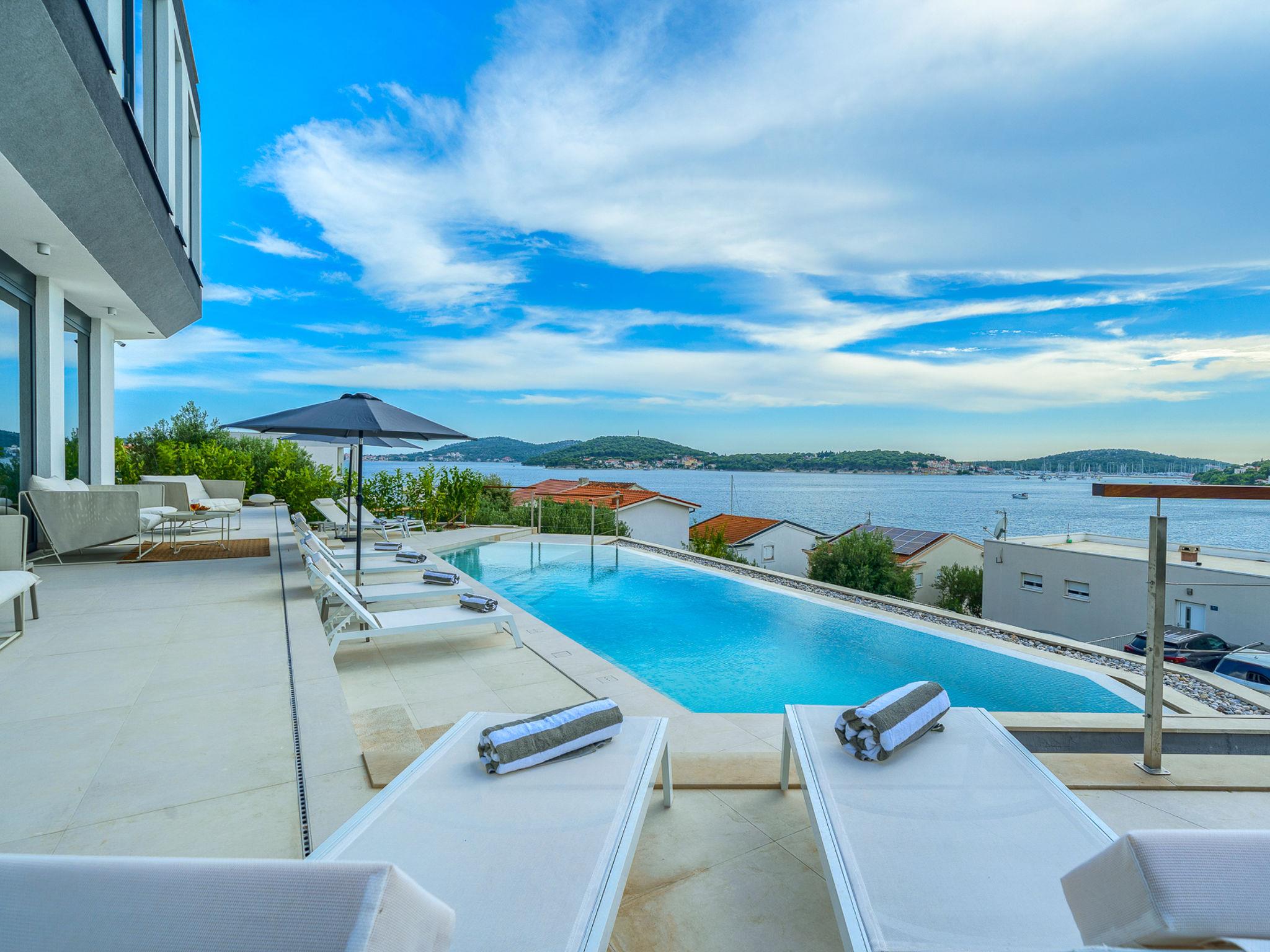 Villa "Allina", 2 storeys, detached. Zatoglav 5 km from the centre of Rogoznica, in a quiet, sunny, elevated position, 50 m from the sea, 180 m from the beach, west facing position. Private: property 750 m2, swimming pool angular (50 m2, depth 150 cm, seasonal availability: 01.May. - 01.Oct.). Outdoor shower, terrace (15 m2), barbecue. In the house: internet access, WiFi, washing machine, tumble dryer. Parking (for 3 cars) at the house on the premises. Shop 4 km, restaurant 5 km, bakery 4 km, bus stop 1.5 km, rocky beach 180 m. Marina 5 km.