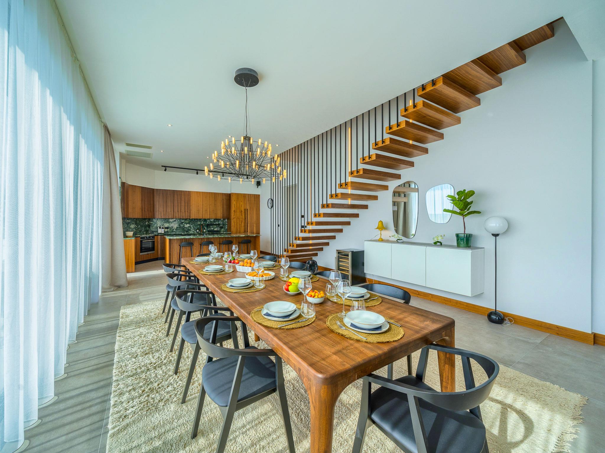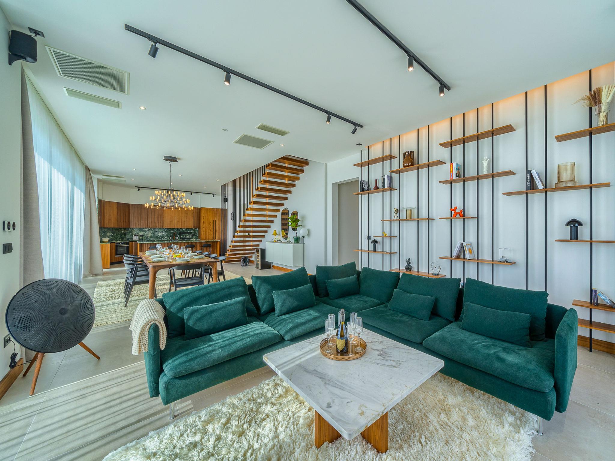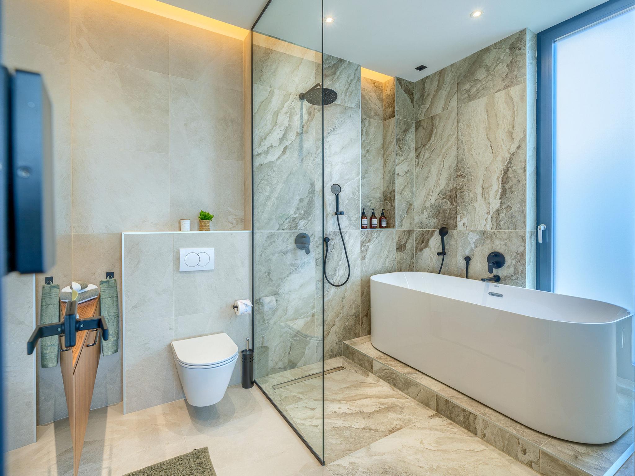 7-room villa 340 m2 on 2 levels. Beautiful and stylish furnishings: living/dining room with satellite TV (flat screen), air conditioning. Exit to the terrace, to the swimming pool. (180 cm, length 200 cm). Open kitchen (oven, dishwasher, 4 ceramic glass hob hotplates, toaster, kettle, microwave, freezer, electric coffee machine). Shower/WC. Upper floor: 2 rooms, each room with 1 french bed (180 cm, length 200 cm), satellite TV (flat screen), air conditioning. 2 rooms, each room with 1 french bed (180 cm, length 200 cm), shower/WC, double hand-basin and satellite TV (flat screen), air conditioning. 2 rooms, each room with 1 french bed (180 cm, length 200 cm), bath/shower/WC and satellite TV (flat screen), air conditioning. Playroom with satellite TV (flat screen), air conditioning. Shower/WC. Terrace 15 m2. Deck chairs (10). Beautiful view of the sea. Facilities: washing machine, safe, children's high chair, hair dryer. Internet (WiFi, free).