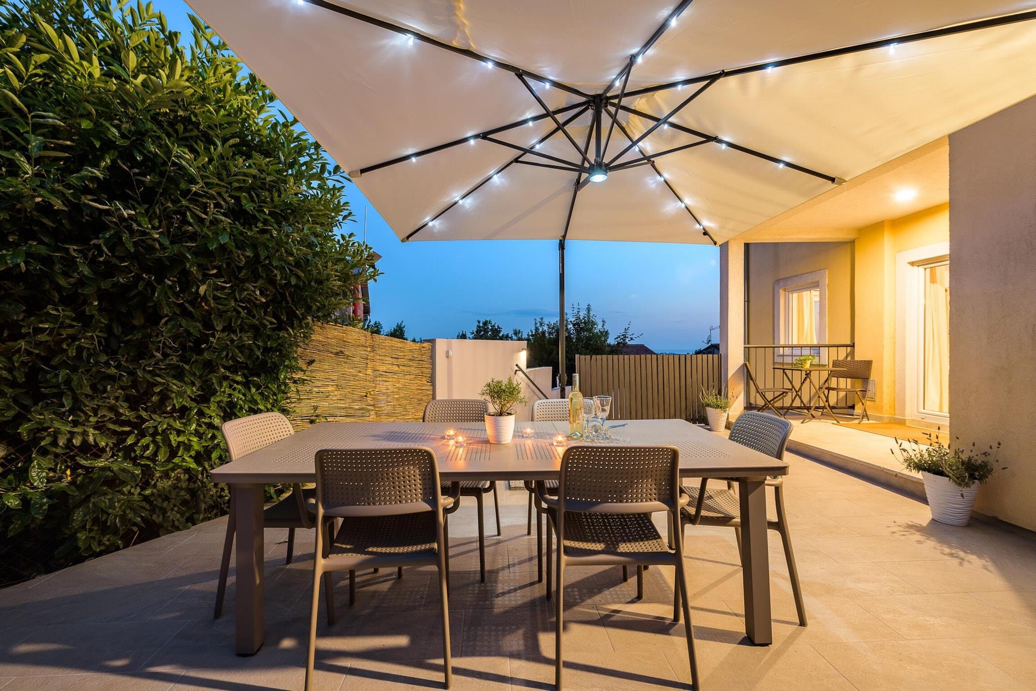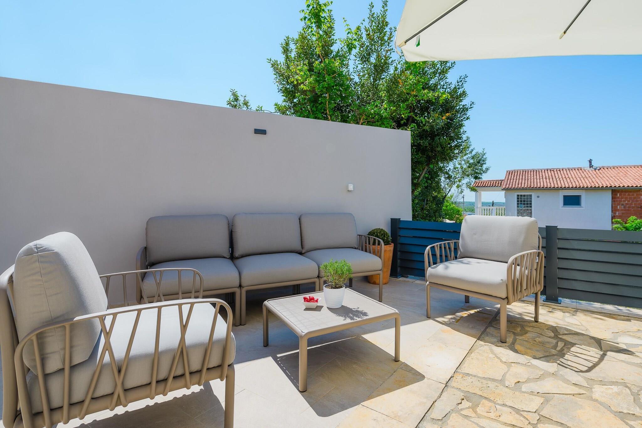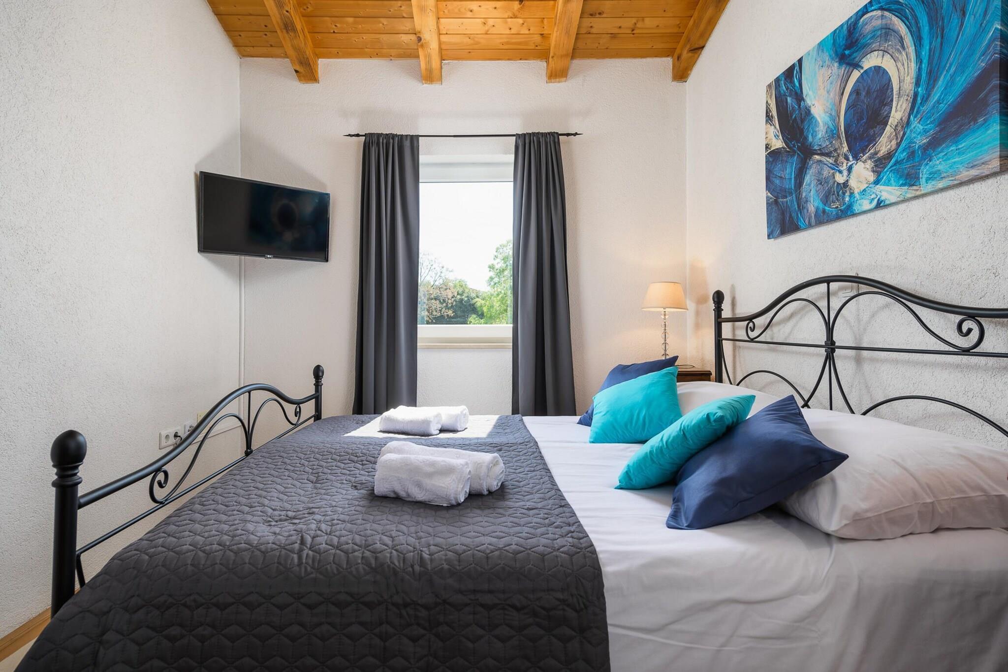 The villa i Rojci har 2 soveværelse(r) og kapacitet til 6 person(er). Bolig på 110 m² er moderne, med udsigt til have og swimming pool. Er beliggende 10 m fra byen "Porec", 61 m fra togstationen "Pula train station", 350 m fra supermarkedet "Grocery store Kovaci", 650 m from the restaurant "Restaurant Zardin", 10 km fra stranden "Marea Beach", 10 km fra stenstranden, 10 km fra busstationen "Bus station Porec", 15 km fra vandland "Aquacolors Zelena Laguna", 18 km fra forlystelsesparken "Dino Park Funtana", 27 km fra floden "River Mirna", 52 km fra naturparken "Fazana- Brijuni Islands", 61 km fra lufthavnen "Pula airport" og er beliggende i en ideel for familier område og i en forstad. Tilbyder have, terrassemøbler, indhegnet grund, 20 m² terrasse, vaskemaskine, grill, strygejern, internet (wifi), hårtørrer, altan, varmepumpe, aircondition i hele ferielejligheden, swimming pool privat, utildækket parkering til den samme bygning, 2 Fjernsyn, satellit (Sprog: Engelsk, Tysk), radio. The amerikanske køkken, elektrisk, med service og køleskab, mikroovn, ovn, fryser, opvaskemaskine, tallerkener/bestik, køkkenredskaber, kaffemaskine, brødrister og kedel.