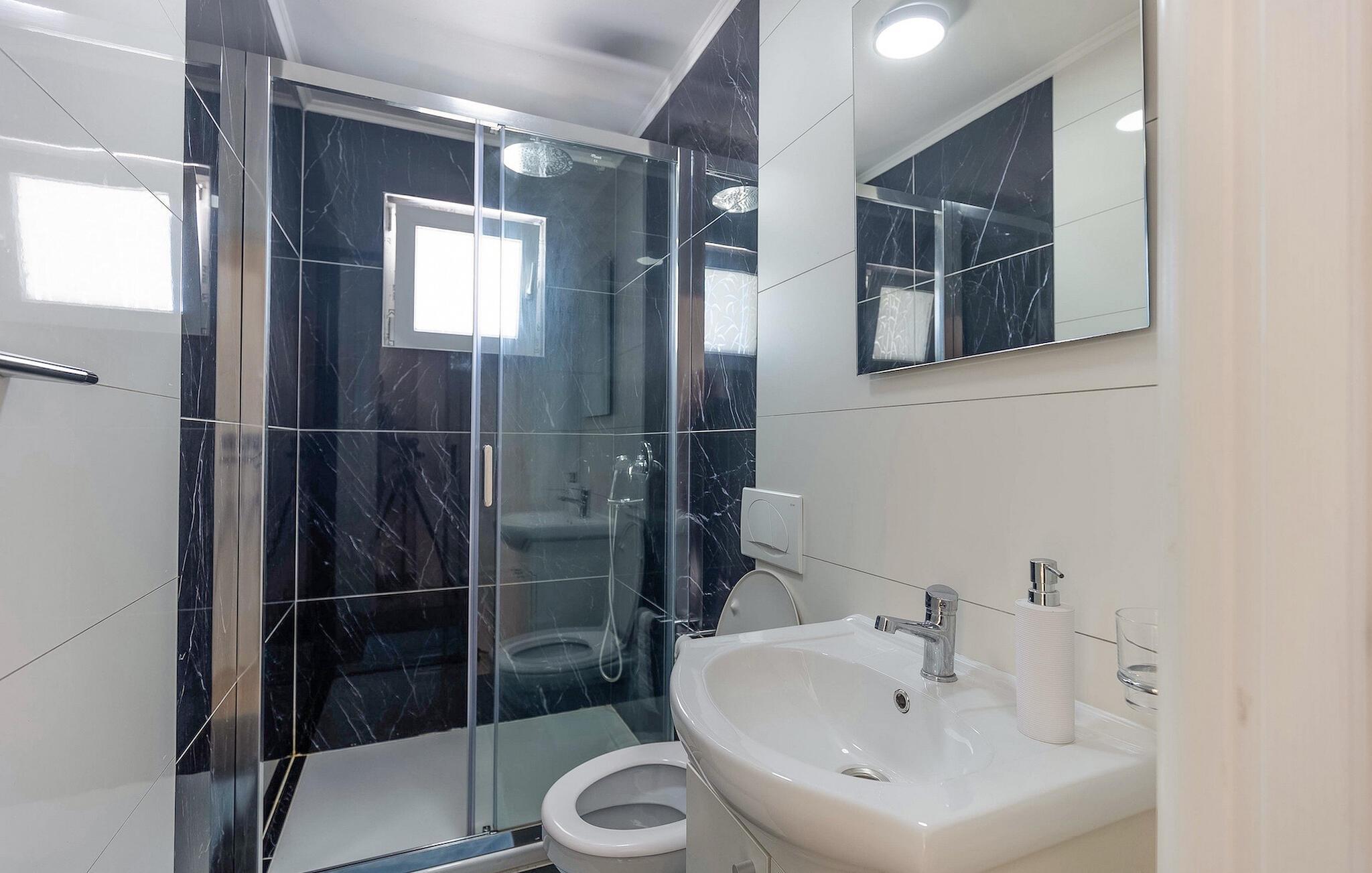 Badeværelse 4m2 (nr. 1) - WC. Varmt og koldt vand. Bruser