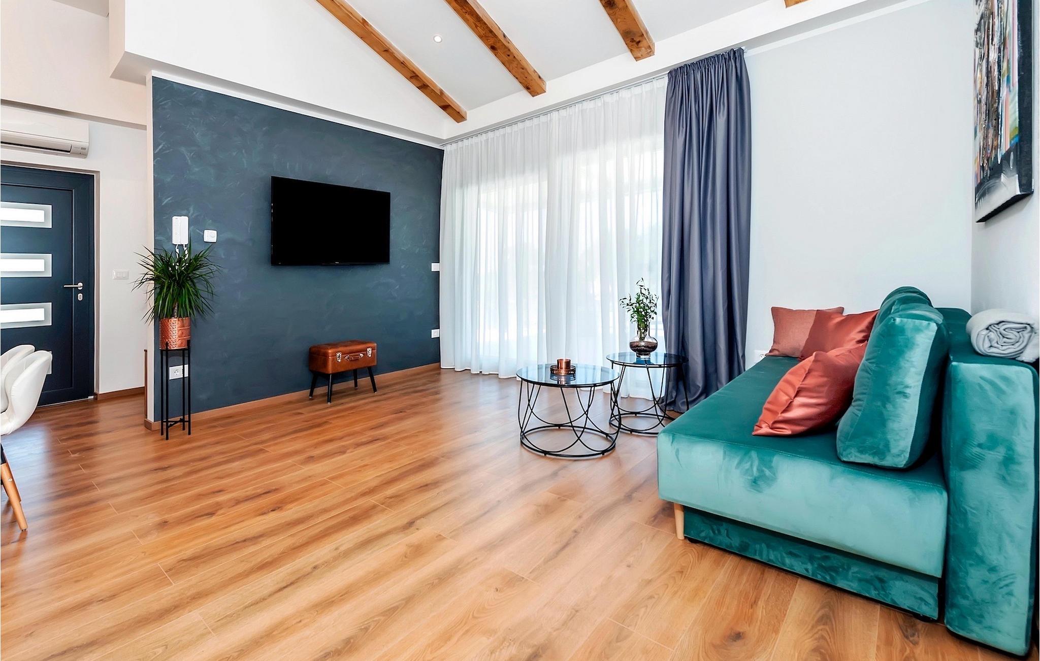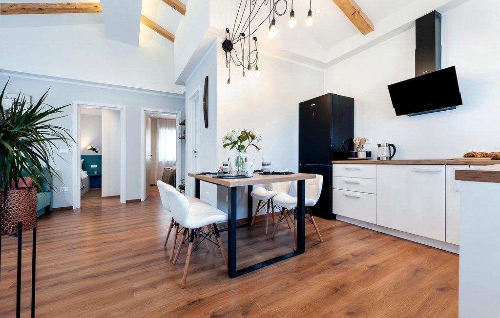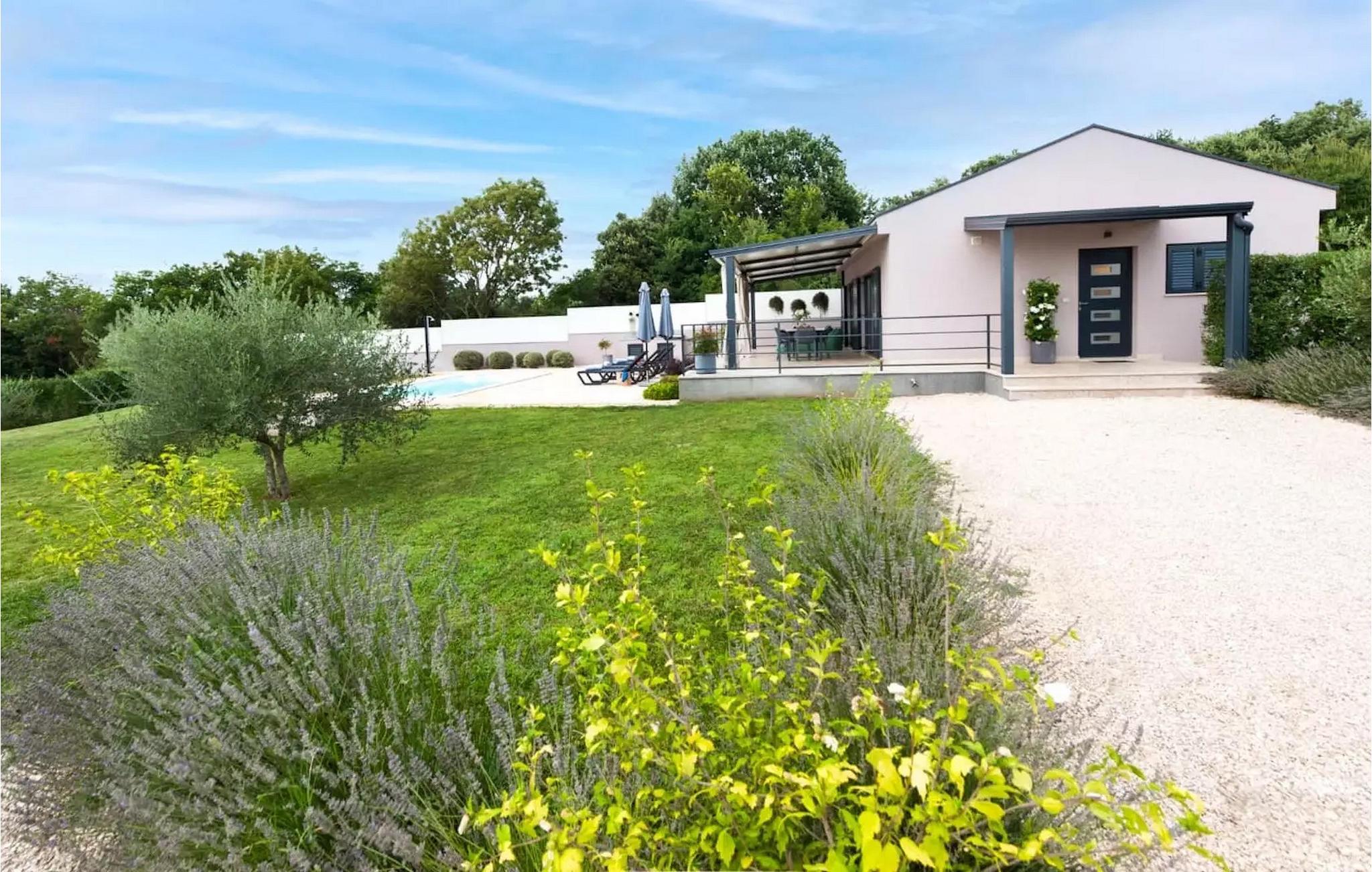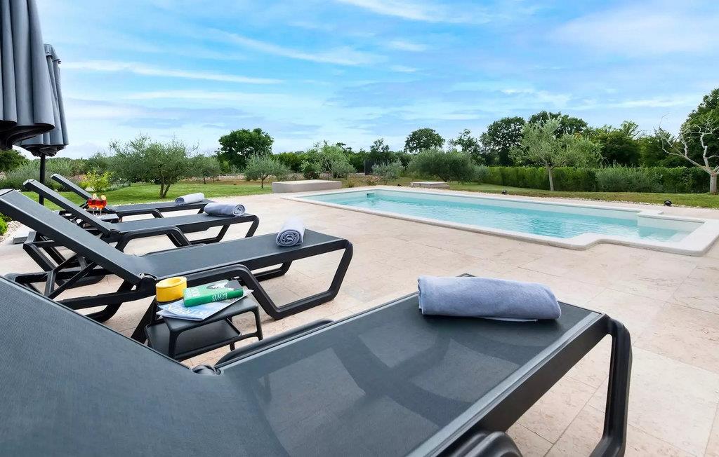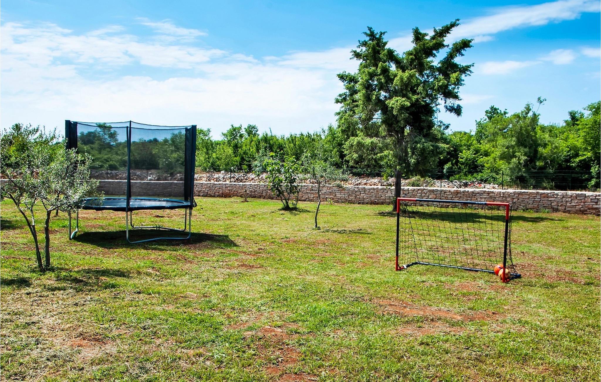 Vores Villa Jolanda Rovinj ligger i den fortryllende by Rovinj på Istriens vestkyst. Denne smukke stueetage villa er ideel til 4 gæster, der ønsker at tilbringe en drømmeferie tæt på havet og tæt på byens centrum. Den forfriskende pool er hjertet af ejendommen og stedet, hvor du vil have det sjovt og slappe af. Nyd den kroatiske sol på en af liggestolene ved poolen, hop i det kølige vand for at forfriske dig selv og få den sommerbrune farve, som du vil tage med hjem som souvenir. Den overdækkede terrasse med spisebord vil være dit yndlingssted til morgenmad eller til grillfester sammen. En gasgrill er tilgængelig til dette. I haven er der trampolin, mini fodboldmål og badminton til at fordrive tiden for de mindste. Hvis du træder ind i villaen fra terrassen, vil du finde dig selv i den åbne, smagfuldt indrettede opholdsstue med et fuldt udstyret køkken og spiseplads. Masser af små detaljer vil fange dit øje. De to smukke soveværelser med komfortable dobbeltsenge lover afslappende nætter, og de 2 moderne badeværelser bliver din helt egen lille wellness-oase.