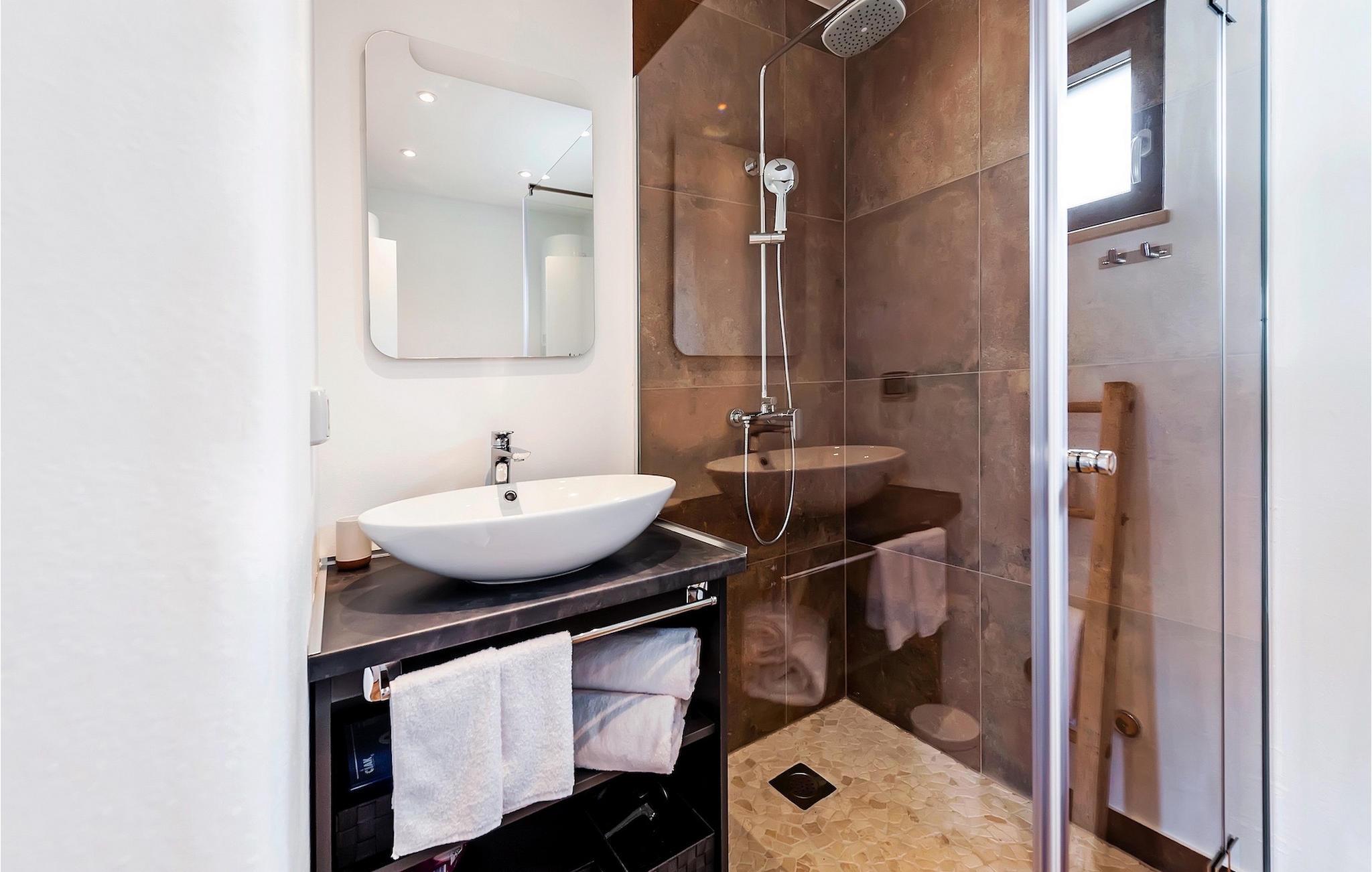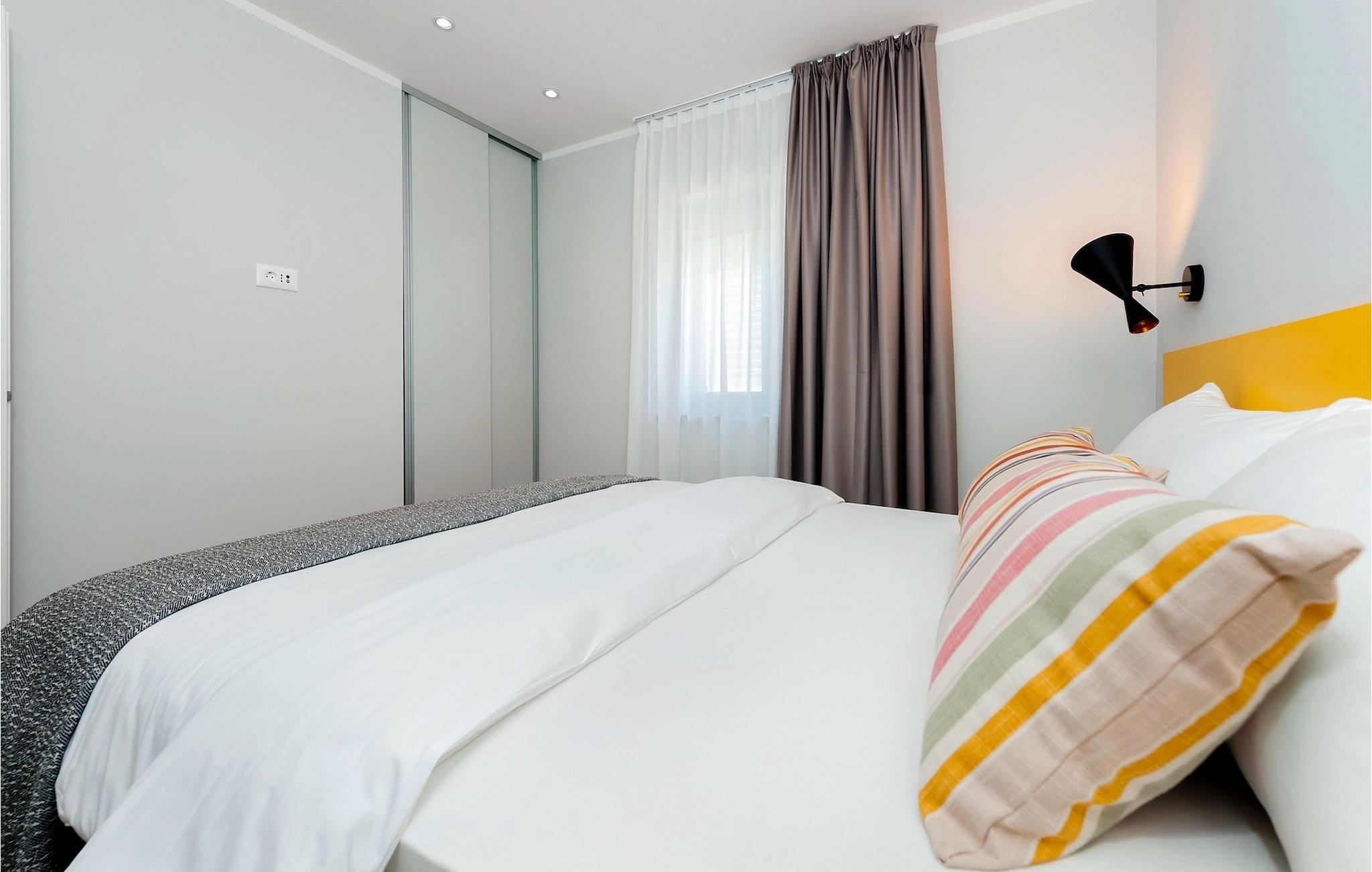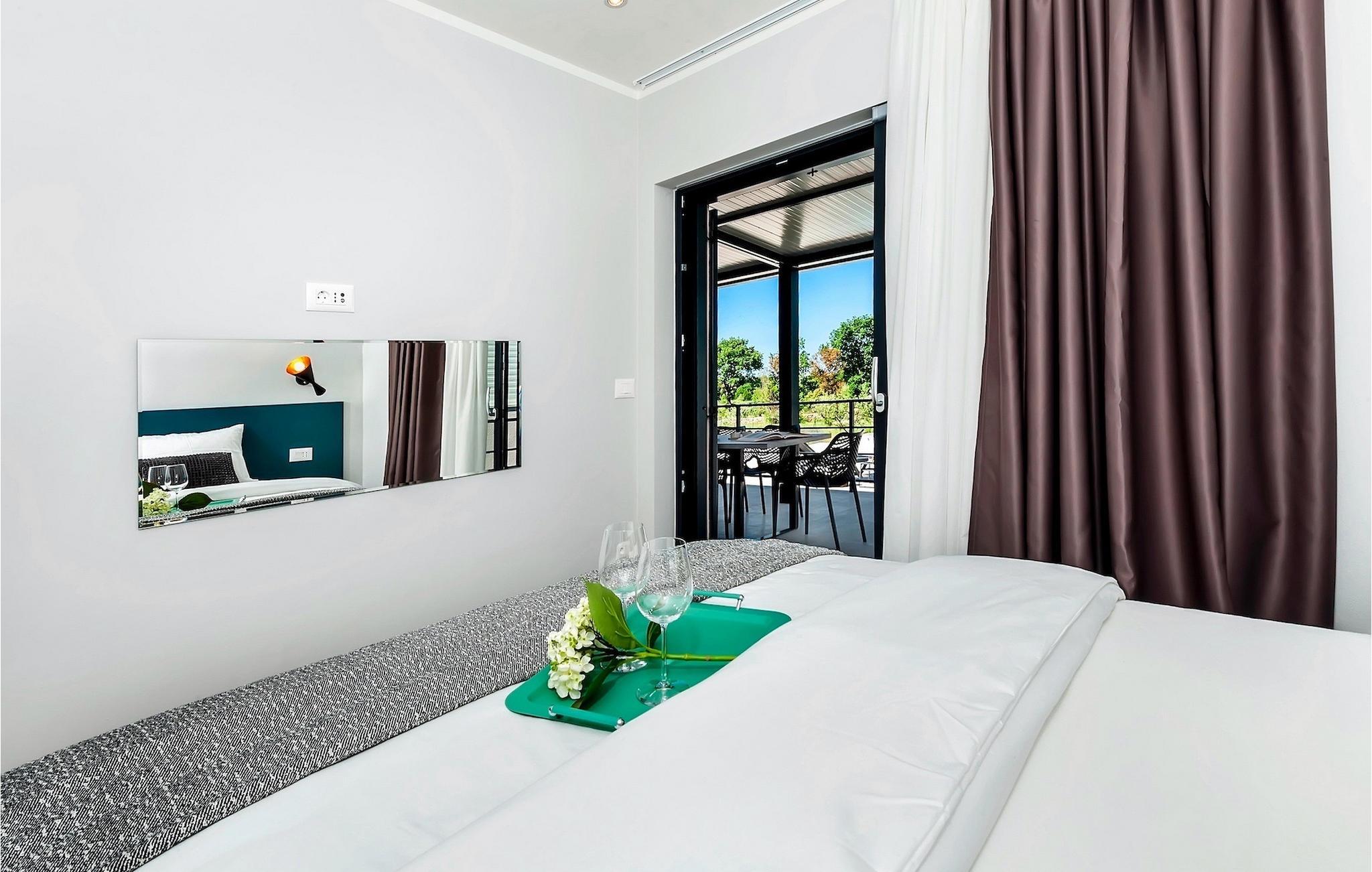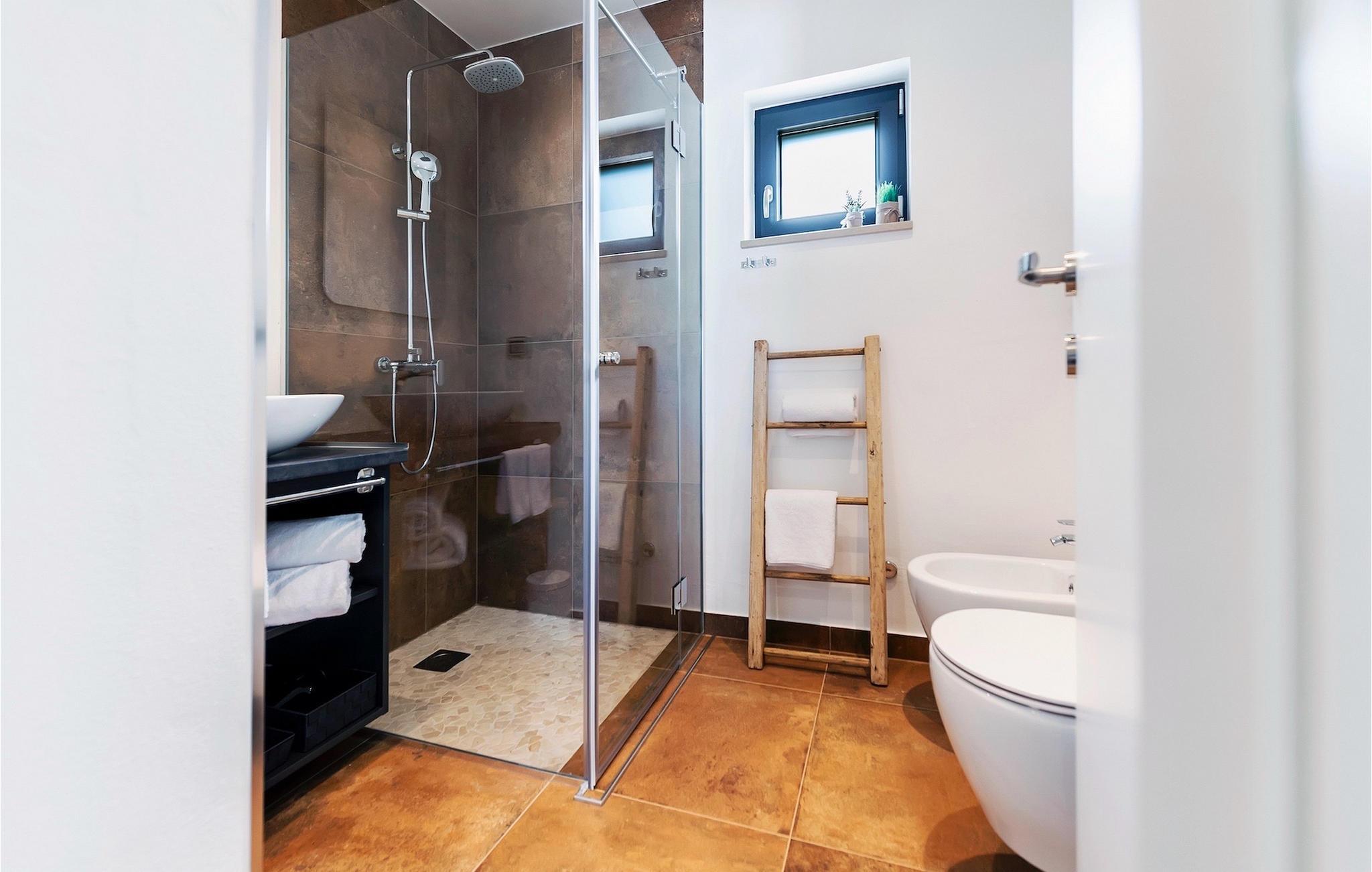 Vores Villa Jolanda Rovinj ligger i den fortryllende by Rovinj på Istriens vestkyst. Denne smukke stueetage villa er ideel til 4 gæster, der ønsker at tilbringe en drømmeferie tæt på havet og tæt på byens centrum. Den forfriskende pool er hjertet af ejendommen og stedet, hvor du vil have det sjovt og slappe af. Nyd den kroatiske sol på en af liggestolene ved poolen, hop i det kølige vand for at forfriske dig selv og få den sommerbrune farve, som du vil tage med hjem som souvenir. Den overdækkede terrasse med spisebord vil være dit yndlingssted til morgenmad eller til grillfester sammen. En gasgrill er tilgængelig til dette. I haven er der trampolin, mini fodboldmål og badminton til at fordrive tiden for de mindste. Hvis du træder ind i villaen fra terrassen, vil du finde dig selv i den åbne, smagfuldt indrettede opholdsstue med et fuldt udstyret køkken og spiseplads. Masser af små detaljer vil fange dit øje. De to smukke soveværelser med komfortable dobbeltsenge lover afslappende nætter, og de 2 moderne badeværelser bliver din helt egen lille wellness-oase.