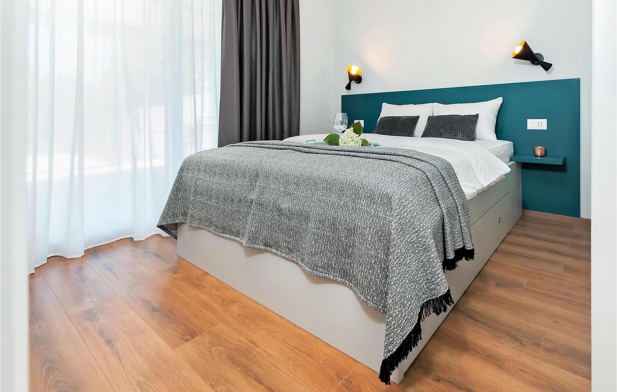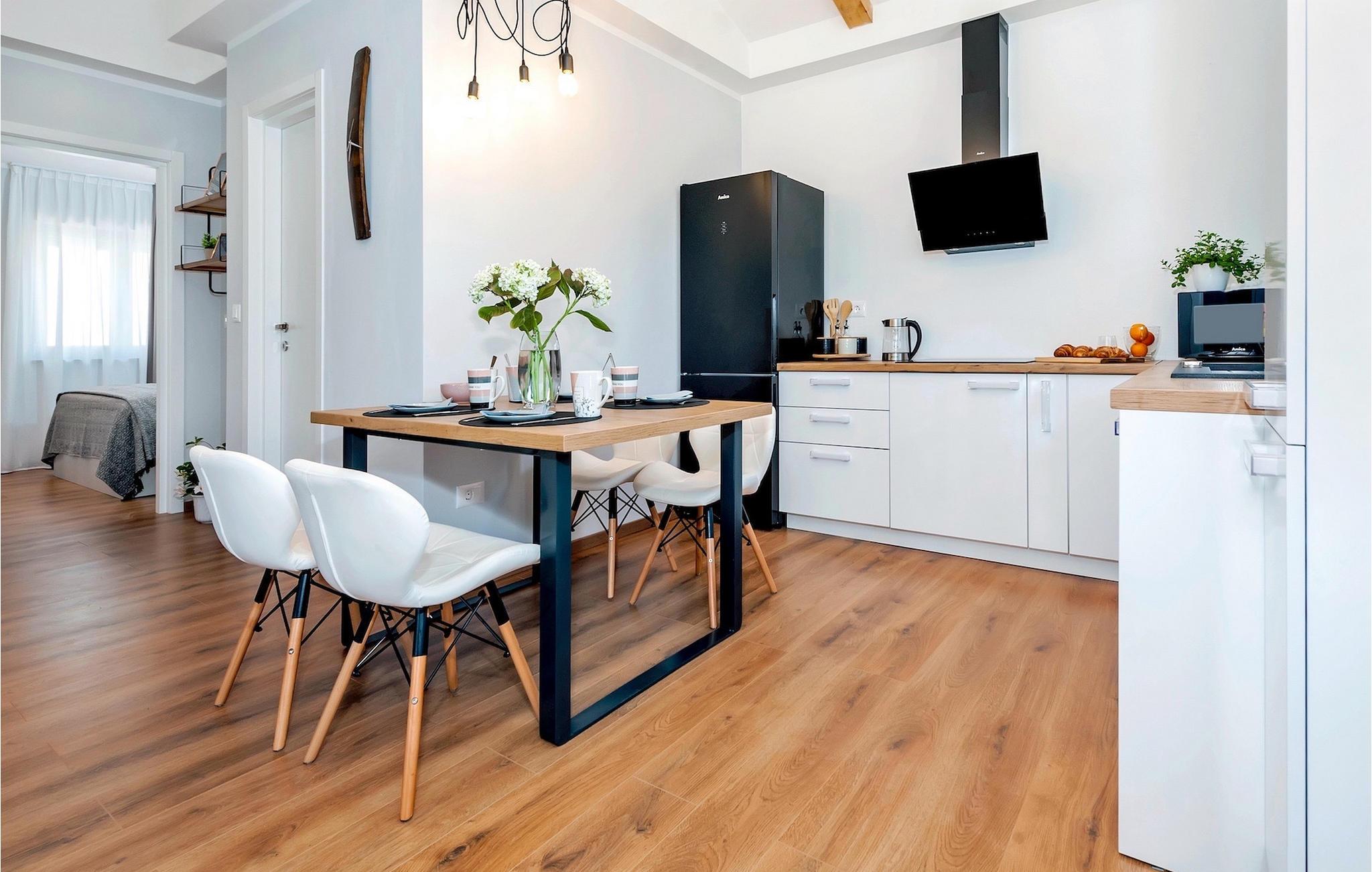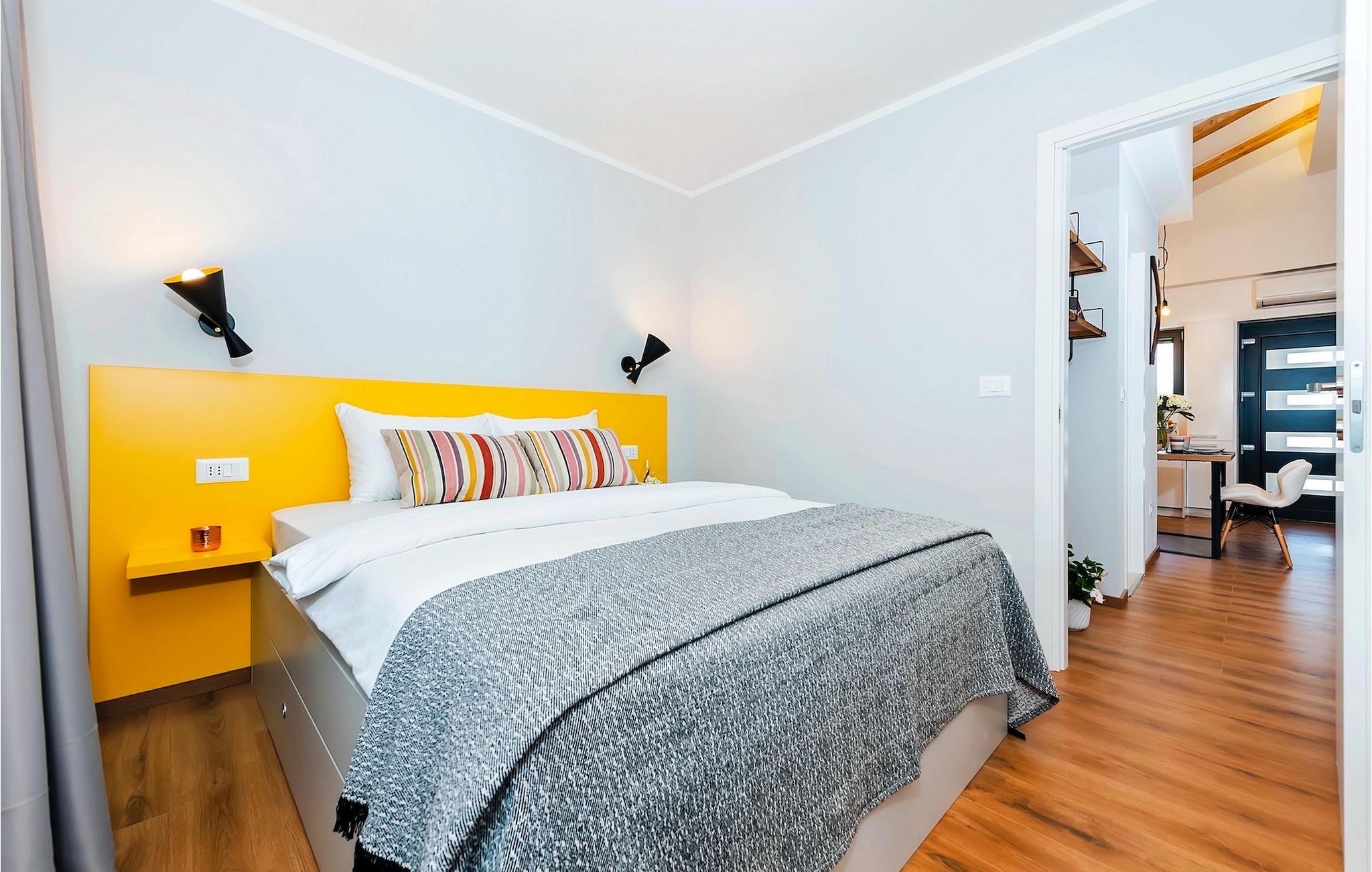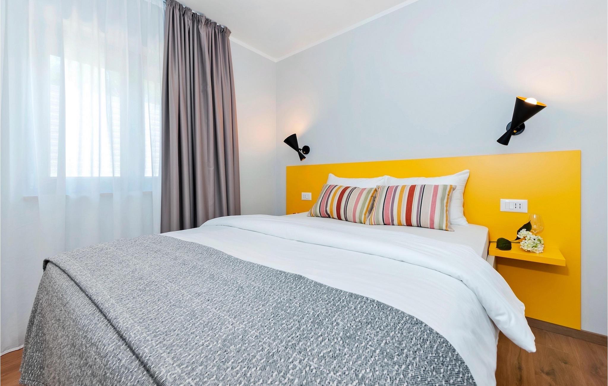Vores Villa Jolanda Rovinj ligger i den fortryllende by Rovinj på Istriens vestkyst. Denne smukke stueetage villa er ideel til 4 gæster, der ønsker at tilbringe en drømmeferie tæt på havet og tæt på byens centrum. Den forfriskende pool er hjertet af ejendommen og stedet, hvor du vil have det sjovt og slappe af. Nyd den kroatiske sol på en af liggestolene ved poolen, hop i det kølige vand for at forfriske dig selv og få den sommerbrune farve, som du vil tage med hjem som souvenir. Den overdækkede terrasse med spisebord vil være dit yndlingssted til morgenmad eller til grillfester sammen. En gasgrill er tilgængelig til dette. I haven er der trampolin, mini fodboldmål og badminton til at fordrive tiden for de mindste. Hvis du træder ind i villaen fra terrassen, vil du finde dig selv i den åbne, smagfuldt indrettede opholdsstue med et fuldt udstyret køkken og spiseplads. Masser af små detaljer vil fange dit øje. De to smukke soveværelser med komfortable dobbeltsenge lover afslappende nætter, og de 2 moderne badeværelser bliver din helt egen lille wellness-oase.