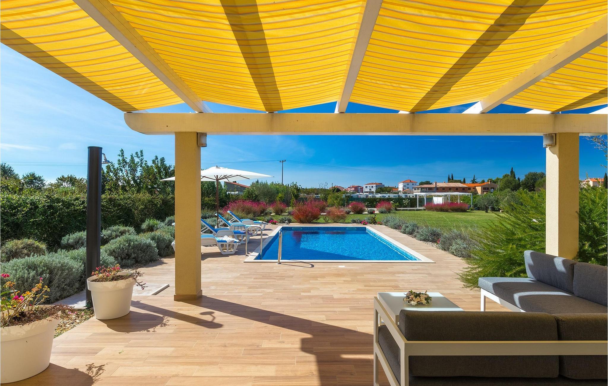 Die charmante Villa Nella ist die ideale Wahl für Gäste, die von einem entspannenden Urlaub nah zu den schönen istrischen Stränden träumen. Falls Sie bevorzugen, zu Hause zu bleiben, steht Ihnen der private Pool zur Verfügung, der in heißen Sommertagen für Abkühlung sorgen wird - Spaß für die ganze Familie ist garantiert! Genießen Sie den Außengrill und zahlreiche Sitzecken und verbringen Sie die Zeit mit Ihren Liebsten, während die Kinder im sorgfältig gepflegten Garten herumlaufen. Der Garten ist mit wunderschönen mediterranen Pflanzen geschmückt und bietet viel Platz zum Entspannen. Im Inneren bietet die Villa ein offenes Erdgeschoß an, in dem sich die komplett ausgestattete Küche mit Essbereich und das gemütliche Wohnzimmer befinden. Sobald Sie den Raum betreten, bemerken Sie die stilvolle Einrichtung mit schlichten Farben die eine warme Atmosphäre bieten. Zwei komfortable Schlafzimmer, jeweils mit einem privaten schönem Badezimmer, befinden sich im ersten Stock. Die Villa ist klimatisiert, hat WiFi, SAT TV und alles, was man sich für einen unvergesslichen Urlaub wünscht.Die Villa befindet sich nur eine kurze Fahrt von der schönsten Stadt Istriens –Rovinj. Rovinj ist die „fotogenste“ Stadt am Mittelmeer. Einst eine Fischerstadt, heute ein Touristenzentrum. Der gesamte Küstenstrich, welcher insgesamt zweiundzwanzig Inseln umfasst, ist ein geschütztes Naturgebiet. Spüren Sie den Zauber der Stadt in den engen mittelalterlichen Gassen und der warmen mediterranen Umgebung und genießen Sie den atemberaubenden Blick vom Glockenturm. Rovinj und seine Umgebung bieten zahlreiche Freizeitmöglichkeiten an: Radfahren, Reiten, Joggen. Sie können entweder am ersten Strand genießen, schwimmen, schnorcheln oder verschiedene Wassersportarten probieren. (z.B. Wasserski, Windsurfen). Zu guter Letzt können Sie hier köstliche mediterrane und istrische Spezialitäten genießen.