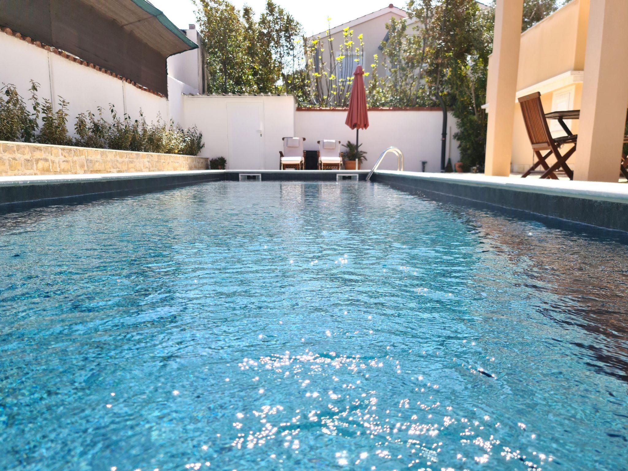 Umgebung des Objekts (Ordentlich), Hof (550m2, Sitzbereich), Parkplatz (Anzahl der Parkplätze: 6, Entfernung vom Objekt: im Hof), Pool: gemeinsam, Dimensionen: 14m x 4m x 1.5m, Wassertyp: Süßwasser, Heizung: Ja, Grill: gemeinsam, WiFi Internet, Föhn, Bügeleisen, Bügelbrett, Kinderbett
