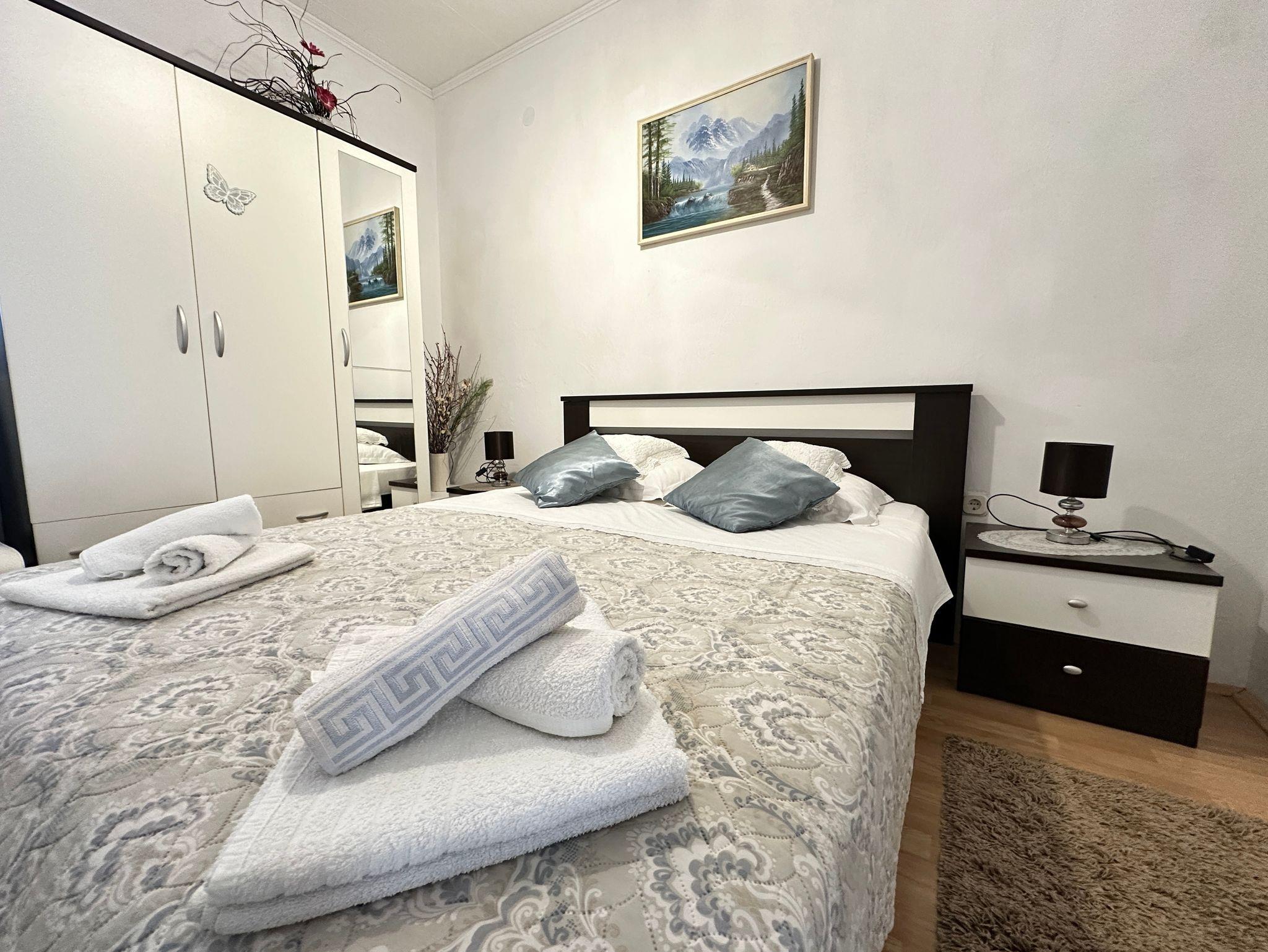 Ferienwohnung bietet Platz für 4 Gäste. Die Betten sind in Schlafzimmern, die es 2 gibt, innerhalb einer Gesamtfläche von 60m2, angeordnet. Die Gäste haben eine eigene Terrasse zur Verfügung, auf der sie in warmen Sommernächten genießen können. Das Apartment bietet Meerblick. IM PREIS INBEGRIFFEN: Kurtaxe, Endreinigung, Klimatisierung, Internet, Bügeleisen, Föhn. VERBINDLICHE ZUSÄTZLICHE KOSTEN: Aufzahlung für Kurzaufenthalte (prozentualer Zuschlag pro Nächtigungsanzahl: 30% - 1, 20% - 2, 10% - 3). Die Verfügbarkeit zusätzlicher Dienstleistungen in Ihrem reservierten Termin und die Preise derselben (falls nicht aufgeführt) müssen im Voraus überprüft werden. Zusätzliche Dienstleistungen die in der Zahlungsaufforderung nicht aufgeführt sind werden direkt beim Vermieter bezahlt, angenommen der Gast nutzt auch diese.