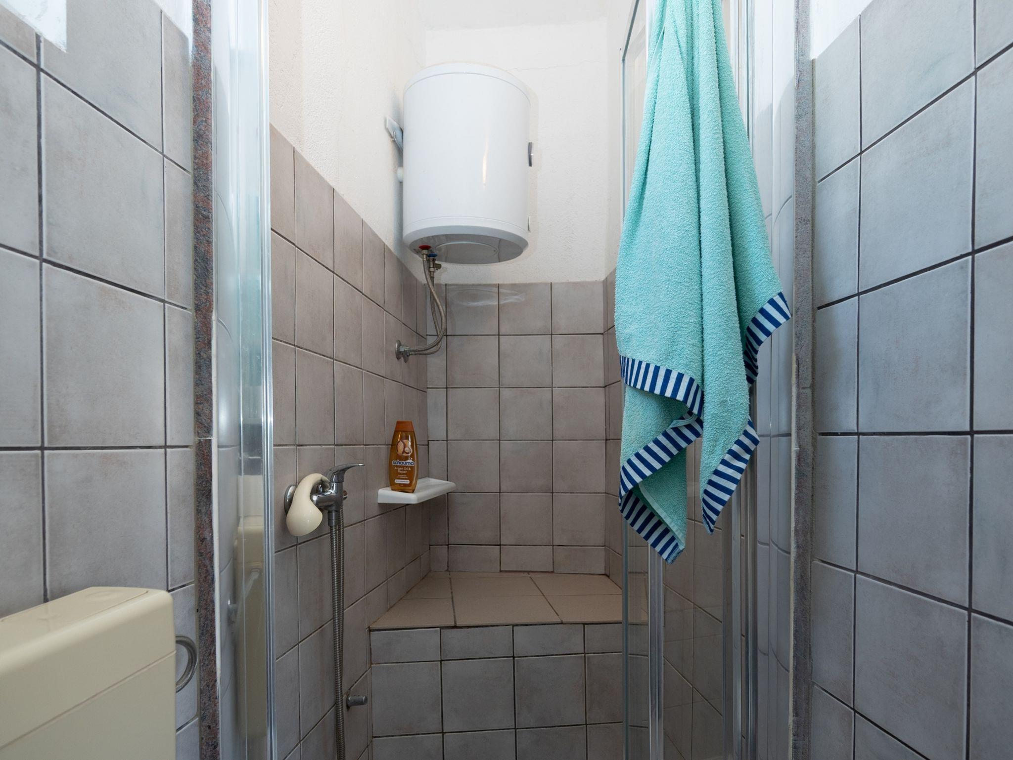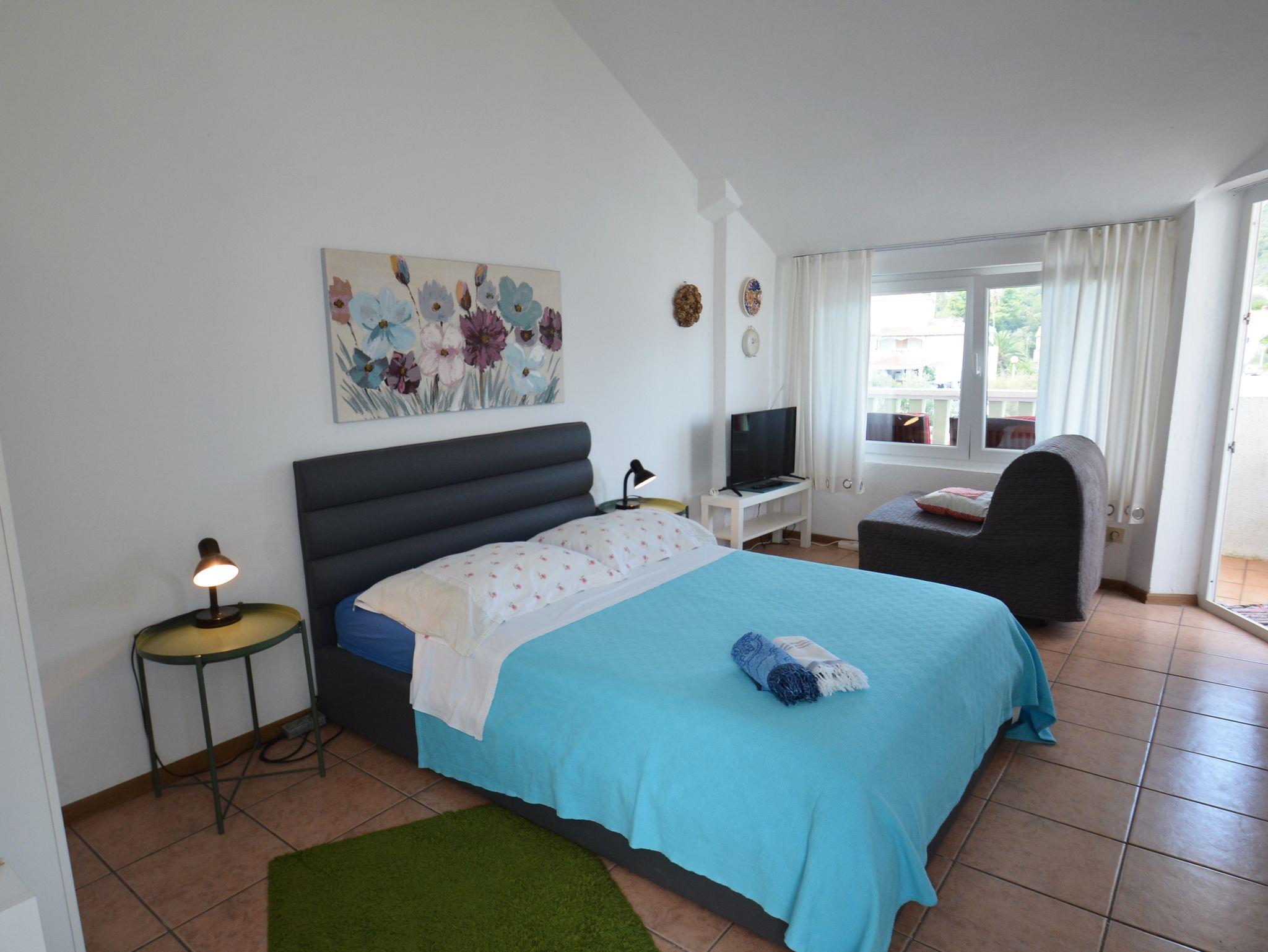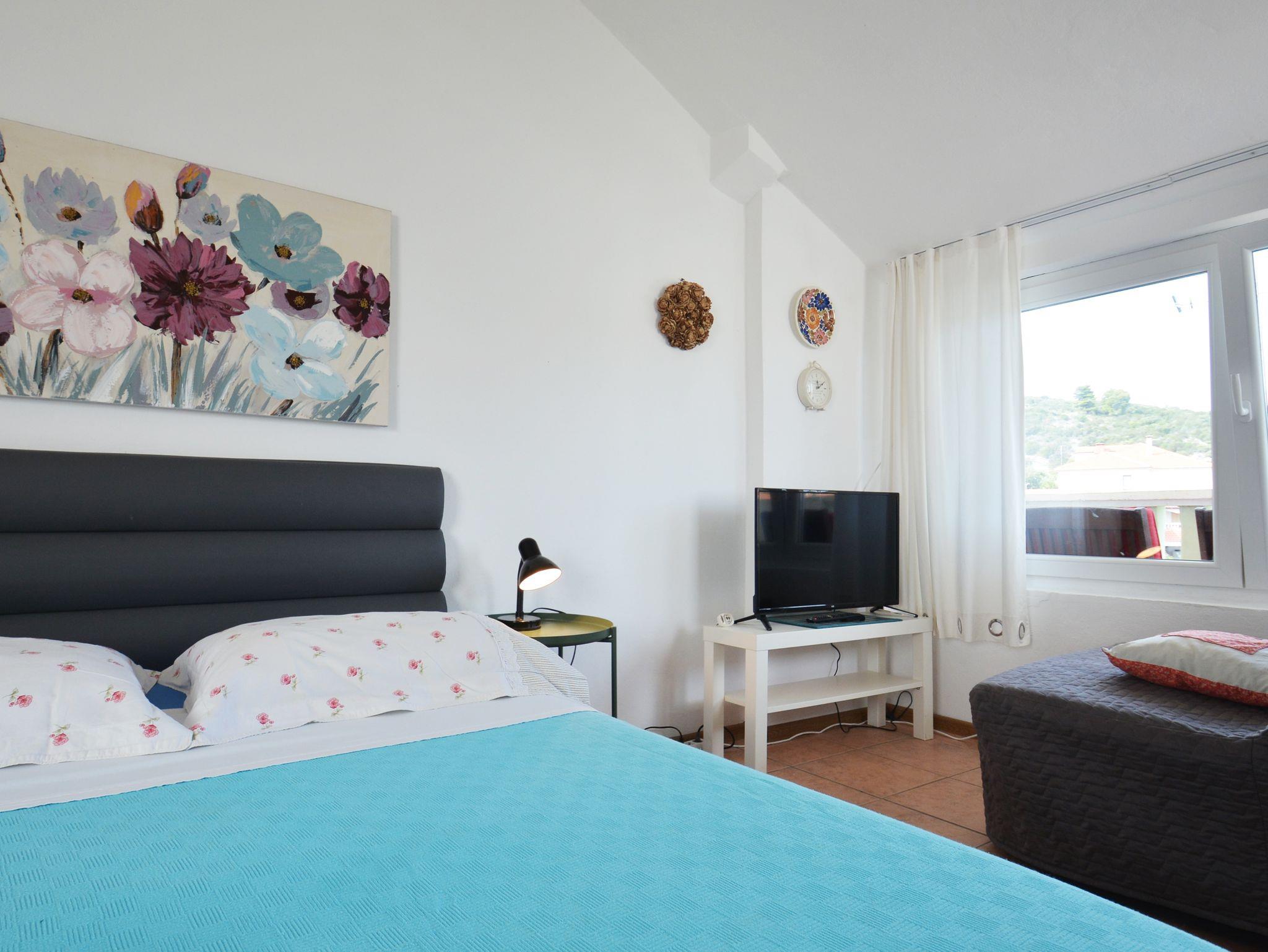 Zimmer bietet Platz für 2 Gäste. Die Betten sind in Schlafzimmern, die es 1 gibt, innerhalb einer Gesamtfläche von 17m2, angeordnet. Die Gäste haben einen eigenen Balkon zur Verfügung, auf der sie in warmen Sommernächten genießen können. Das Zimmer bietet Meerblick. Es ist erlaubt, Speisen auf dem Gemeinschafts-Grill vorzubereiten. In der Unterkunftseinheit besteht die Möglichkeit des Mitbringens von Haustieren gegen Aufpreis. Die reservierte Unterkunftseinheit ist ein Zimmer mit eigenem Badezimmer ohne die Möglichkeit der Nutzung einer Küche. IM PREIS INBEGRIFFEN: Kurtaxe, Endreinigung, Klimatisierung, Internet, Bootsanlegeplatz, Kinderbett, Bügeleisen, Bügelbrett, Föhn, Liegestühle. VERBINDLICHE ZUSÄTZLICHE KOSTEN: Aufzahlung für Kurzaufenthalte (prozentualer Zuschlag pro Nächtigungsanzahl: 30% - 1, 20% - 2, 10% - 3). UNVERBINDLICHE ZUSÄTZLICHE KOSTEN: Wäschewaschen (5,00 € Waschen), Haustiere (5,00 € pro Nacht). Die Verfügbarkeit zusätzlicher Dienstleistungen in Ihrem reservierten Termin und die Preise derselben (falls nicht aufgeführt) müssen im Voraus überprüft werden. Zusätzliche Dienstleistungen die in der Zahlungsaufforderung nicht aufgeführt sind werden direkt beim Vermieter bezahlt, angenommen der Gast nutzt auch diese.