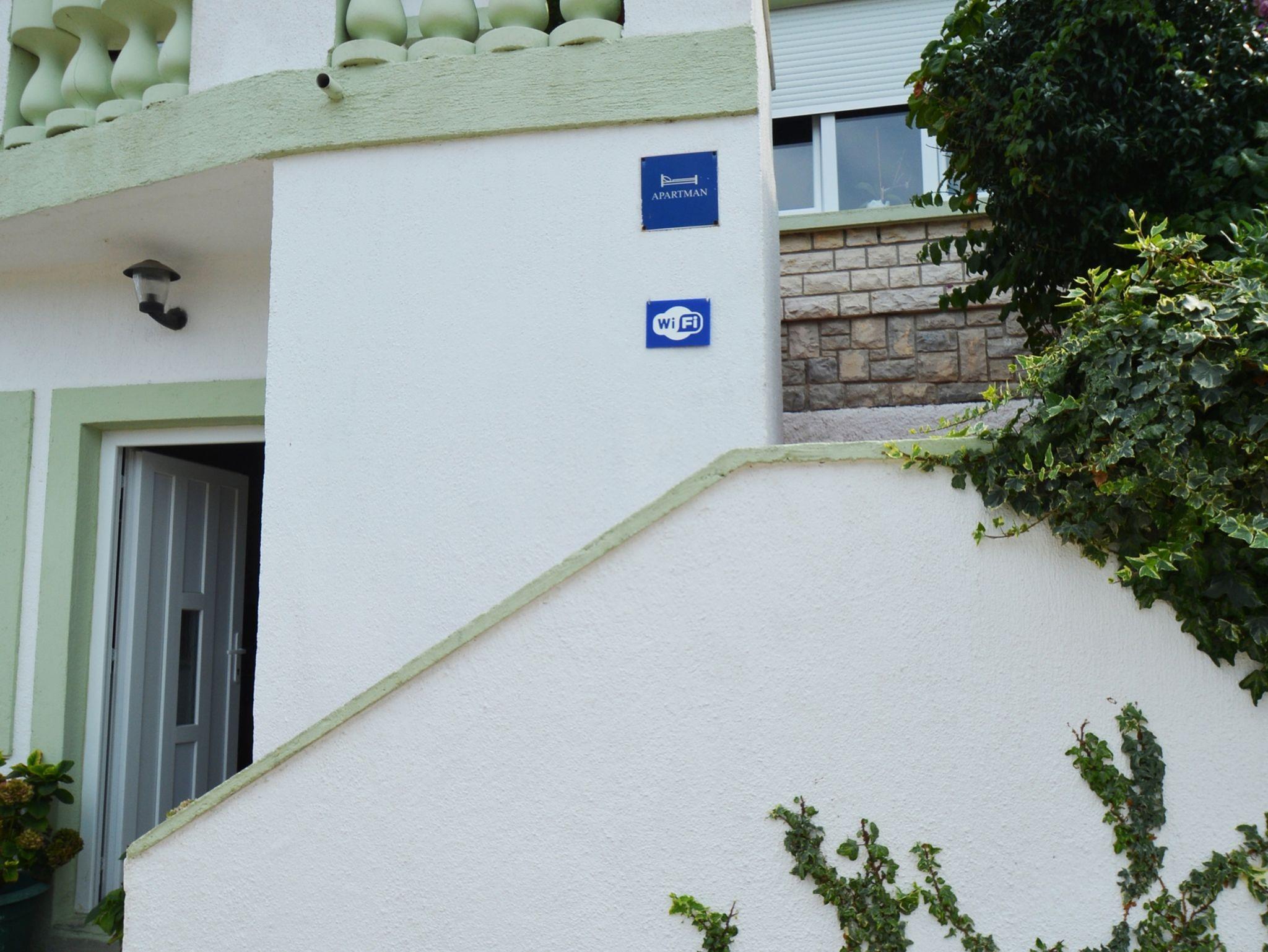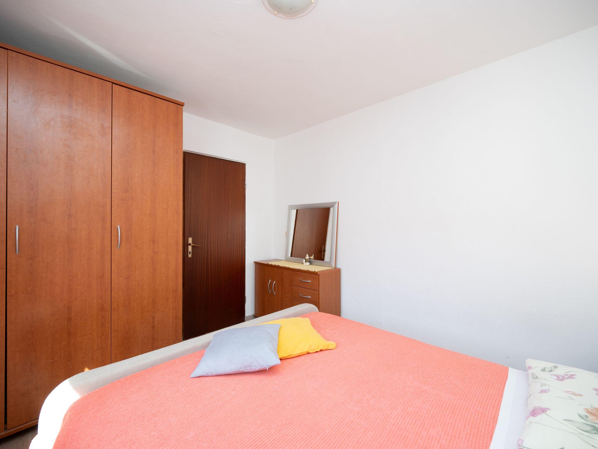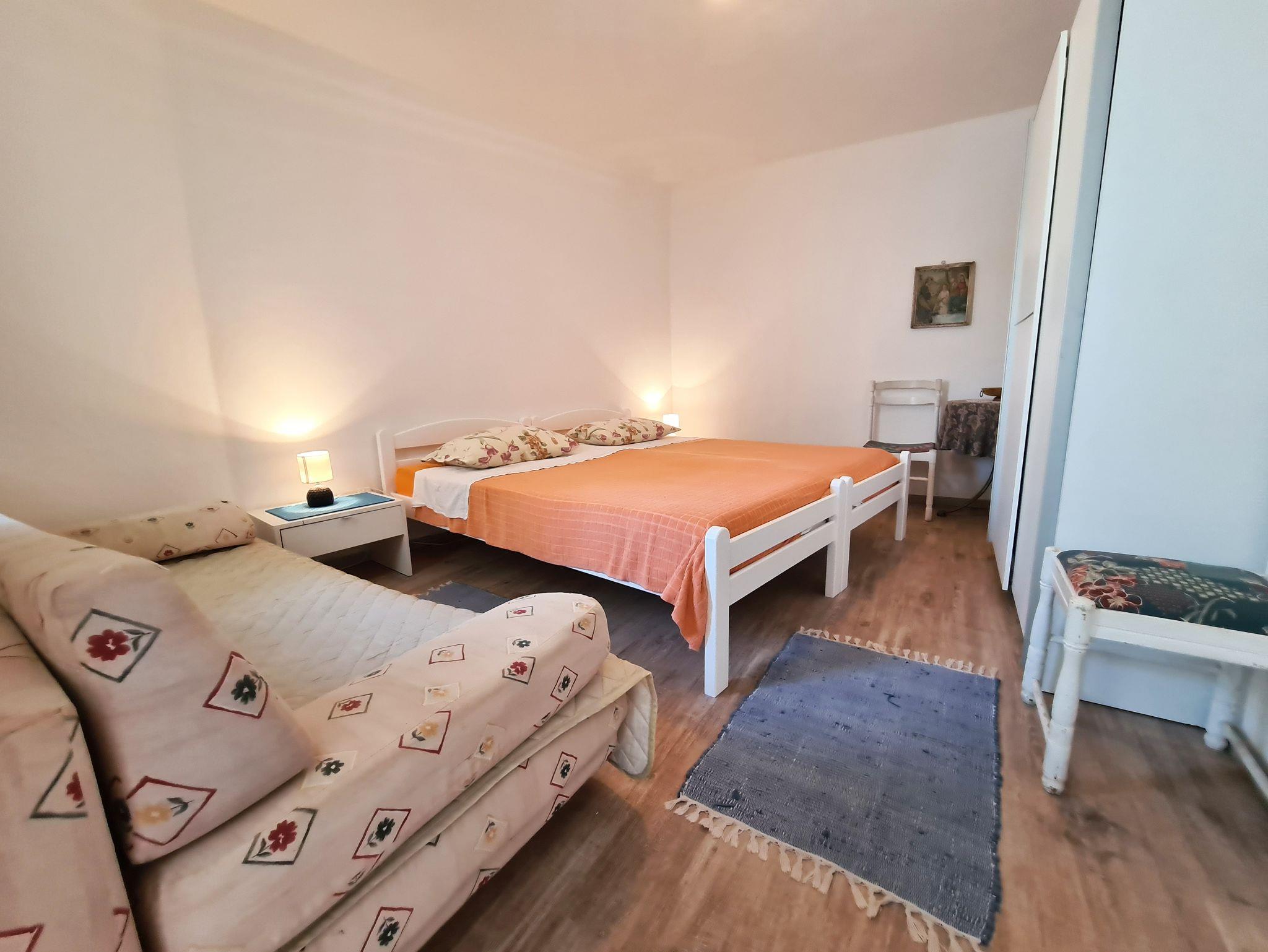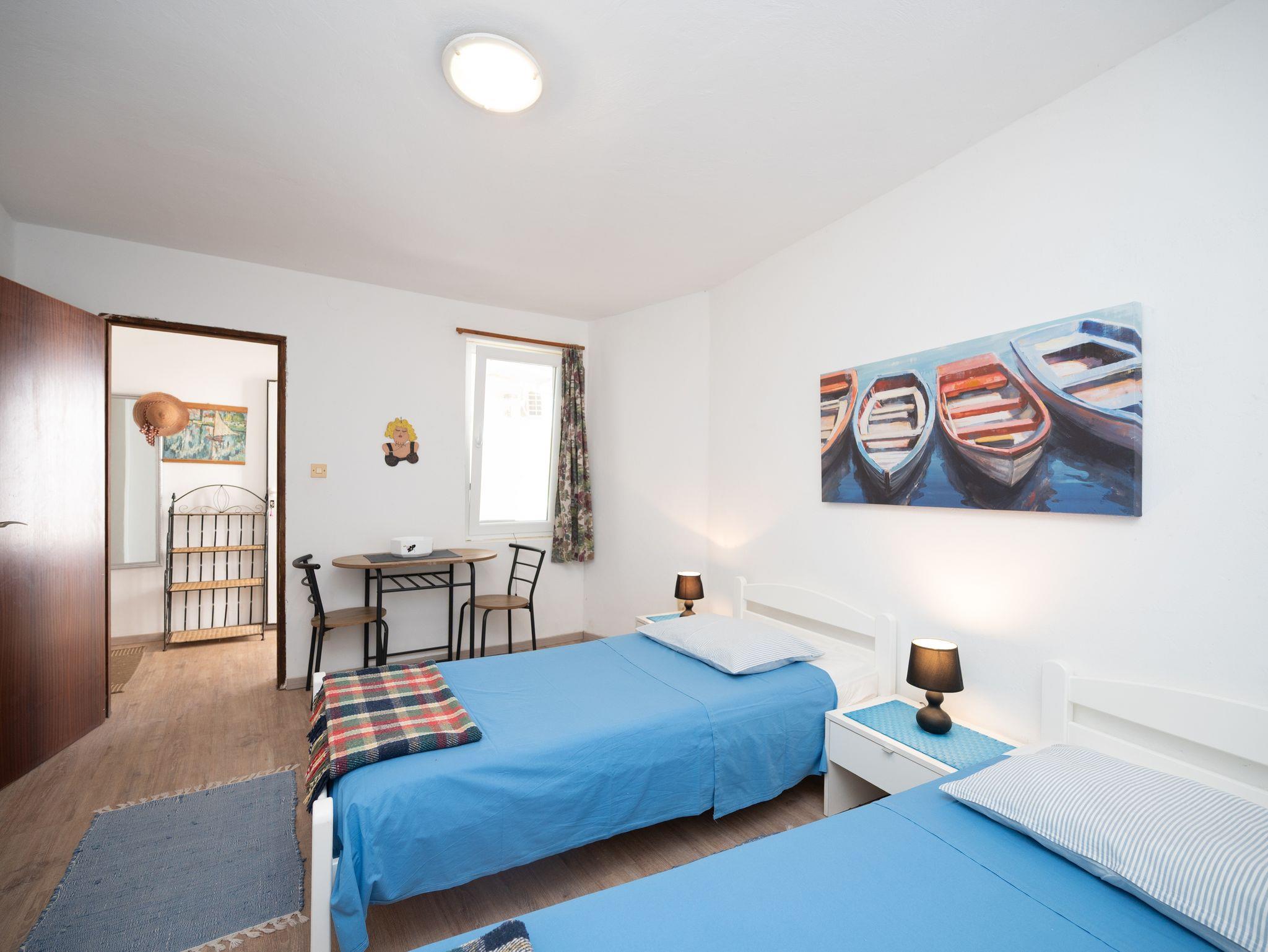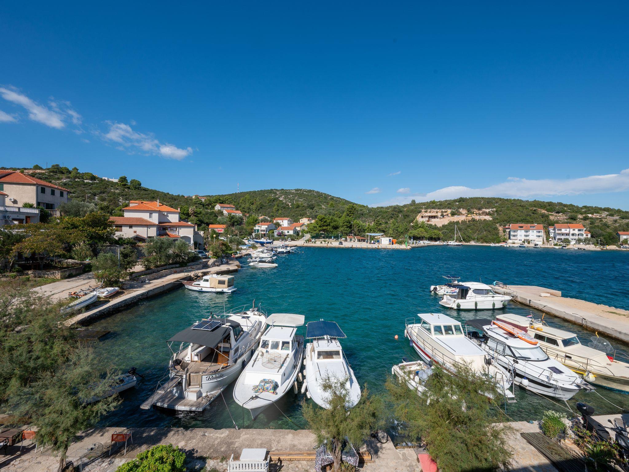 Ferienwohnung bietet Platz für 5 Gäste. Die Betten sind in Schlafzimmern, die es 2 gibt, und in Esszimmer, innerhalb einer Gesamtfläche von 50m2, angeordnet. Die Gäste haben eine eigene Terrasse zur Verfügung, auf der sie in warmen Sommernächten genießen können. Das Apartment bietet Meerblick. Es ist erlaubt, Speisen auf dem Gemeinschafts-Grill vorzubereiten. In der Unterkunftseinheit besteht die Möglichkeit des Mitbringens von Haustieren gegen Aufpreis. IM PREIS INBEGRIFFEN: Kurtaxe, Endreinigung, Klimatisierung, Internet, Bootsanlegeplatz, Kinderbett, Bügeleisen, Bügelbrett, Föhn, Liegestühle. VERBINDLICHE ZUSÄTZLICHE KOSTEN: Aufzahlung für Kurzaufenthalte (prozentualer Zuschlag pro Nächtigungsanzahl: 30% - 1, 20% - 2, 10% - 3). UNVERBINDLICHE ZUSÄTZLICHE KOSTEN: Wäschewaschen (5,00 € Waschen), Haustiere (5,00 € pro Nacht), Zusatzbett (10,00 € pro Nacht). Die Verfügbarkeit zusätzlicher Dienstleistungen in Ihrem reservierten Termin und die Preise derselben (falls nicht aufgeführt) müssen im Voraus überprüft werden. Zusätzliche Dienstleistungen die in der Zahlungsaufforderung nicht aufgeführt sind werden direkt beim Vermieter bezahlt, angenommen der Gast nutzt auch diese.