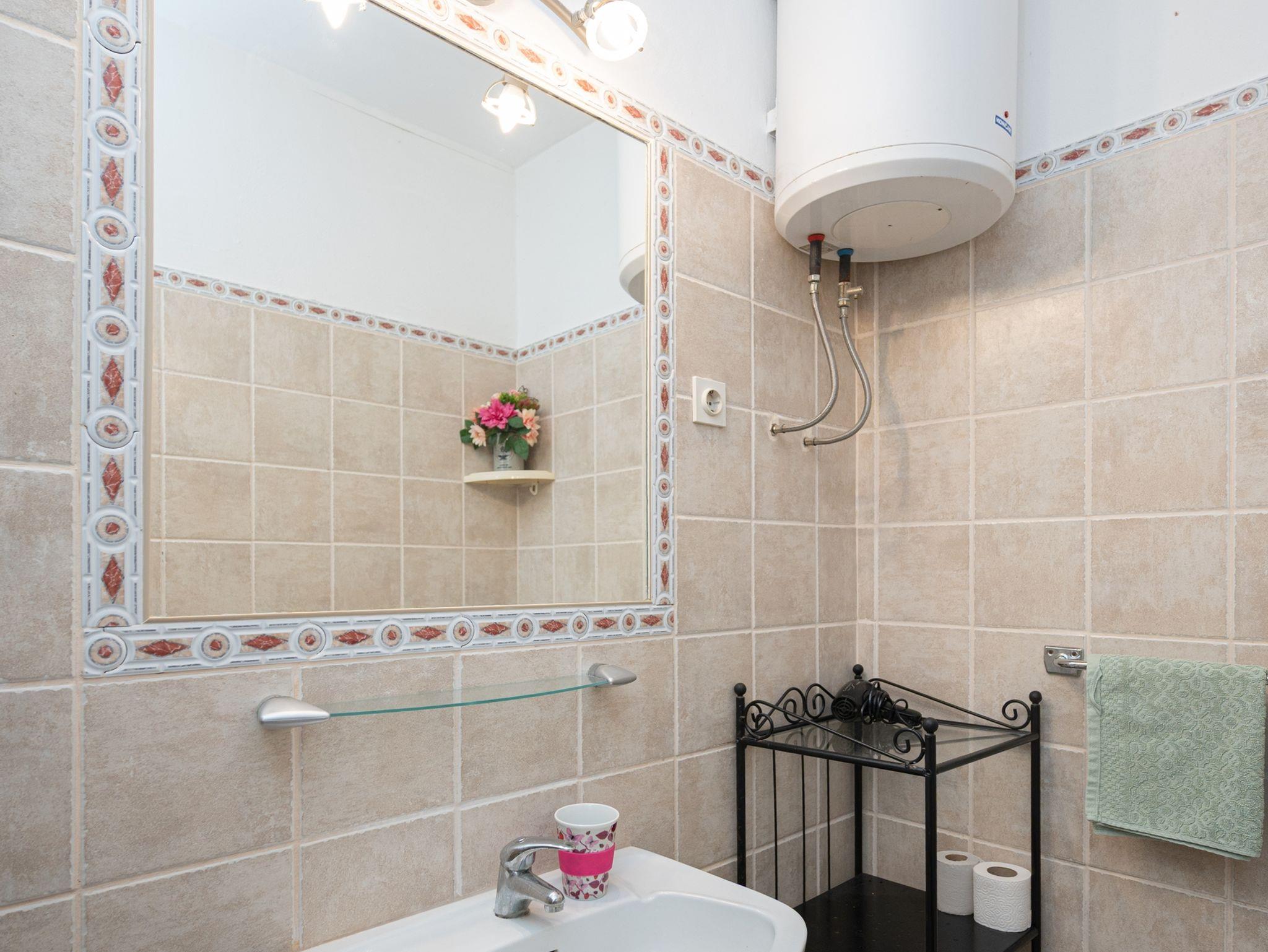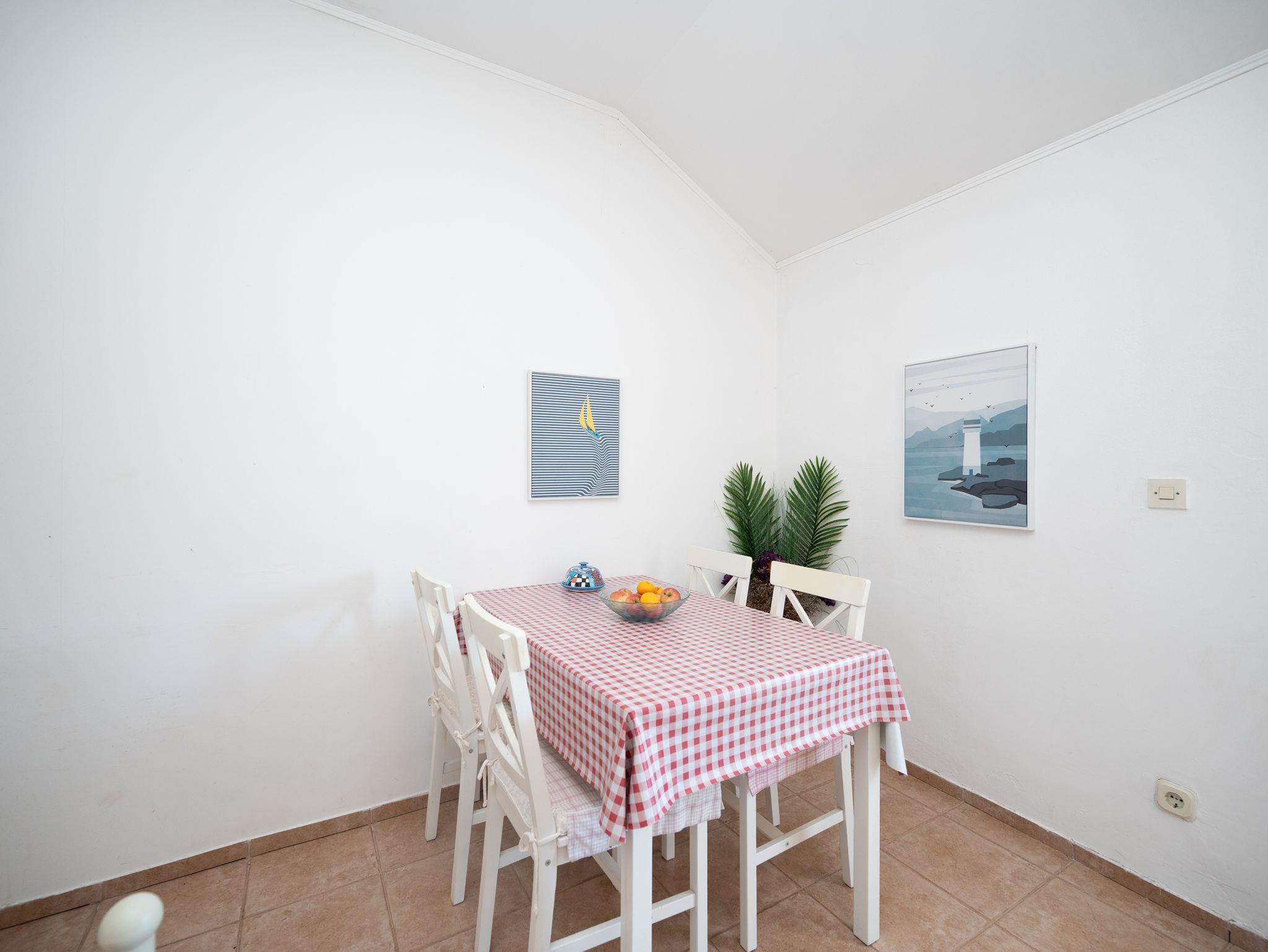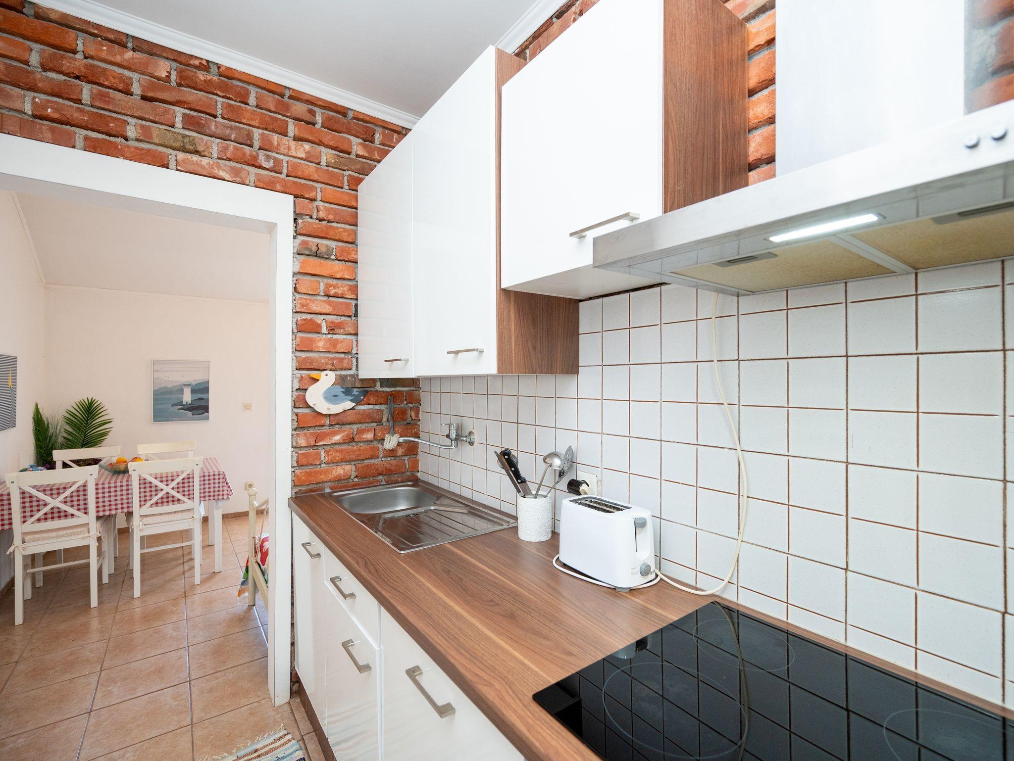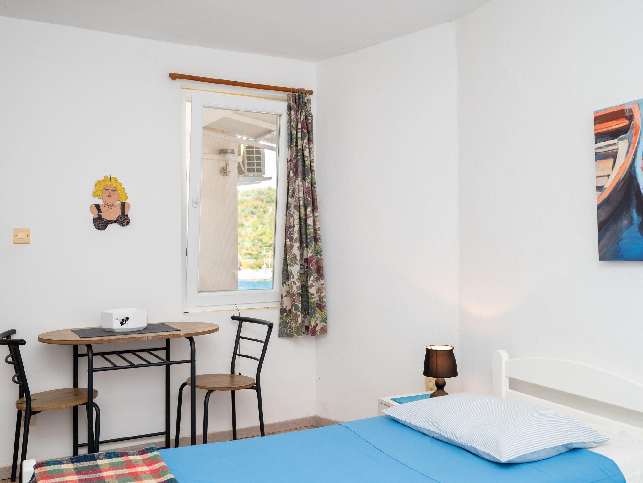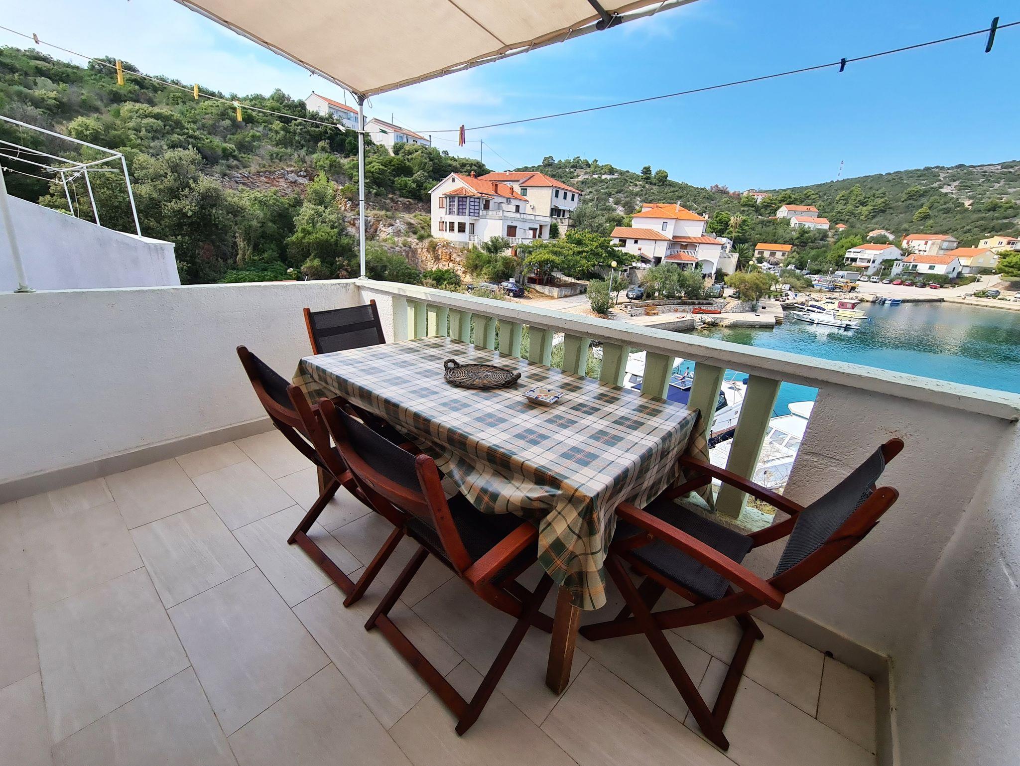 Ferienwohnung bietet Platz für 5 Gäste. Die Betten sind in Schlafzimmern, die es 2 gibt, und in Esszimmer, innerhalb einer Gesamtfläche von 50m2, angeordnet. Die Gäste haben eine eigene Terrasse zur Verfügung, auf der sie in warmen Sommernächten genießen können. Das Apartment bietet Meerblick. Es ist erlaubt, Speisen auf dem Gemeinschafts-Grill vorzubereiten. In der Unterkunftseinheit besteht die Möglichkeit des Mitbringens von Haustieren gegen Aufpreis. IM PREIS INBEGRIFFEN: Kurtaxe, Endreinigung, Klimatisierung, Internet, Bootsanlegeplatz, Kinderbett, Bügeleisen, Bügelbrett, Föhn, Liegestühle. VERBINDLICHE ZUSÄTZLICHE KOSTEN: Aufzahlung für Kurzaufenthalte (prozentualer Zuschlag pro Nächtigungsanzahl: 30% - 1, 20% - 2, 10% - 3). UNVERBINDLICHE ZUSÄTZLICHE KOSTEN: Wäschewaschen (5,00 € Waschen), Haustiere (5,00 € pro Nacht), Zusatzbett (10,00 € pro Nacht). Die Verfügbarkeit zusätzlicher Dienstleistungen in Ihrem reservierten Termin und die Preise derselben (falls nicht aufgeführt) müssen im Voraus überprüft werden. Zusätzliche Dienstleistungen die in der Zahlungsaufforderung nicht aufgeführt sind werden direkt beim Vermieter bezahlt, angenommen der Gast nutzt auch diese.