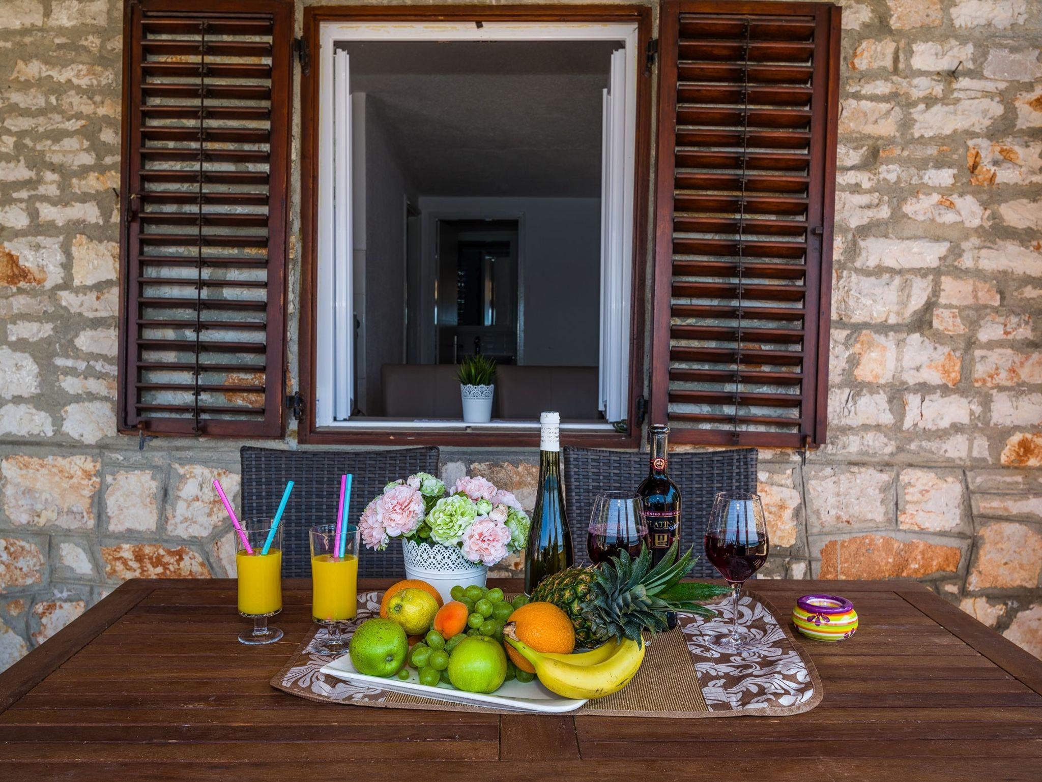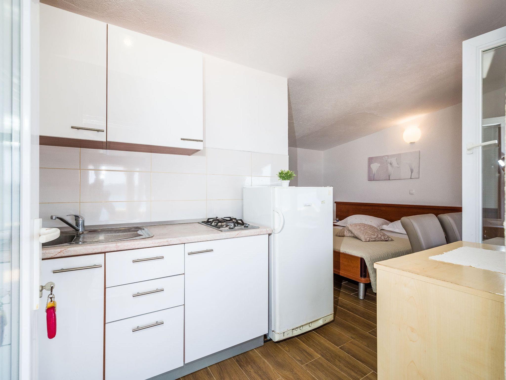 Studio bietet Platz für 4 Gäste. Die Betten sind in Schlafzimmern, die es 1 gibt, und in Wohnzimmer, innerhalb einer Gesamtfläche von 23m2, angeordnet. Die Gäste haben eine eigene Terrasse zur Verfügung, auf der sie in warmen Sommernächten genießen können. Das Studio-Apartment bietet Meerblick. Es ist erlaubt, Speisen auf dem Gemeinschafts-Grill vorzubereiten. In der Unterkunftseinheit besteht die Möglichkeit des Mitbringens von Haustieren, und die Dienstleistung ist im Preis der Unterkunft enthalten. IM PREIS INBEGRIFFEN: Kurtaxe, Endreinigung, Parkplatz, Bootsanlegeplatz, Haustiere, Kinderbett, Transport zum Objekt (mit dem Boot des Vermieters), Sonnenschirm, Liegestühle. VERBINDLICHE ZUSÄTZLICHE KOSTEN: Aufzahlung für Kurzaufenthalte (prozentualer Zuschlag pro Nächtigungsanzahl: 30% - 1, 20% - 2, 10% - 3). UNVERBINDLICHE ZUSÄTZLICHE KOSTEN: Boot (25,00 € pro Nacht). Die Verfügbarkeit zusätzlicher Dienstleistungen in Ihrem reservierten Termin und die Preise derselben (falls nicht aufgeführt) müssen im Voraus überprüft werden. Zusätzliche Dienstleistungen die in der Zahlungsaufforderung nicht aufgeführt sind werden direkt beim Vermieter bezahlt, angenommen der Gast nutzt auch diese.