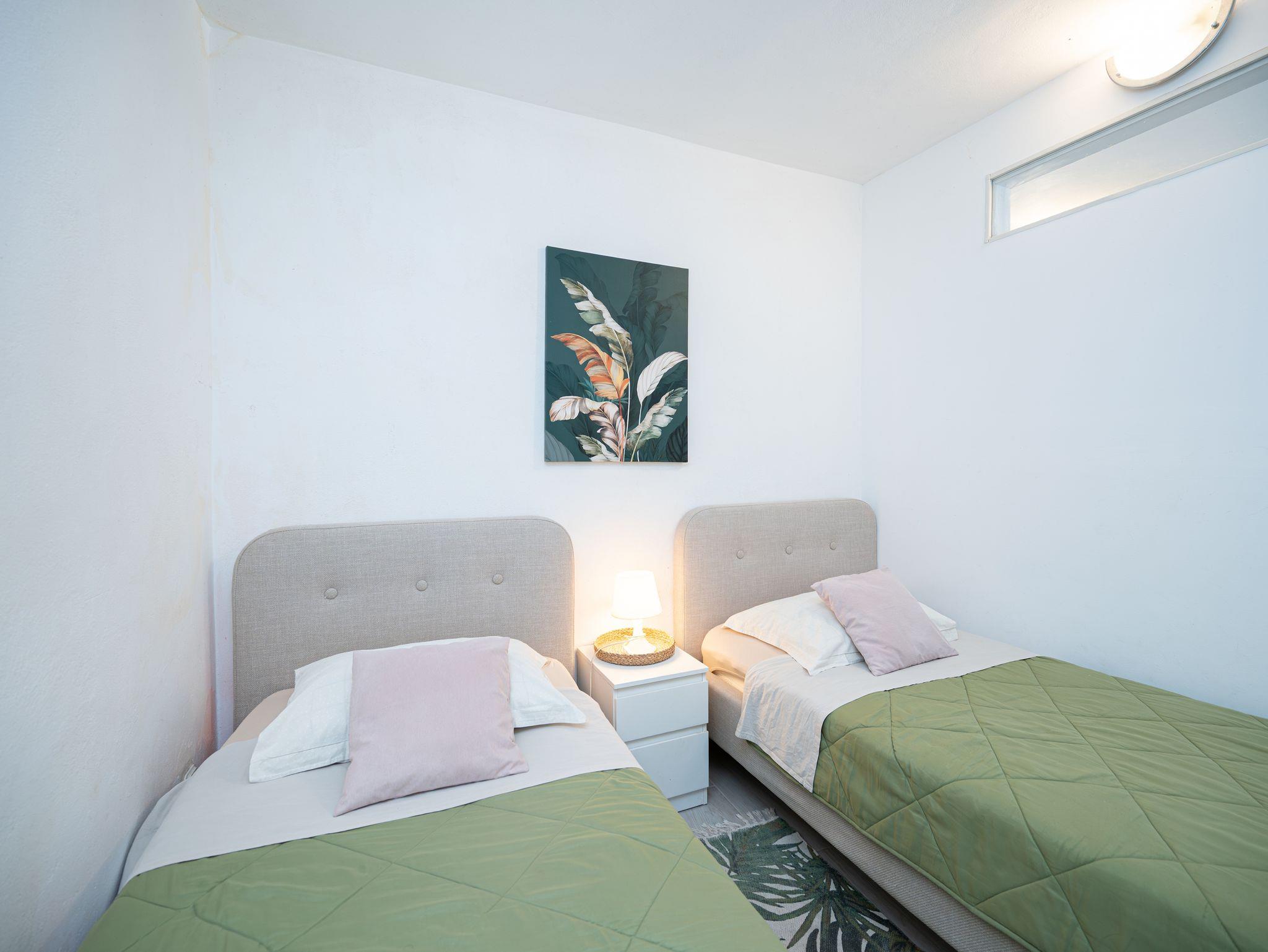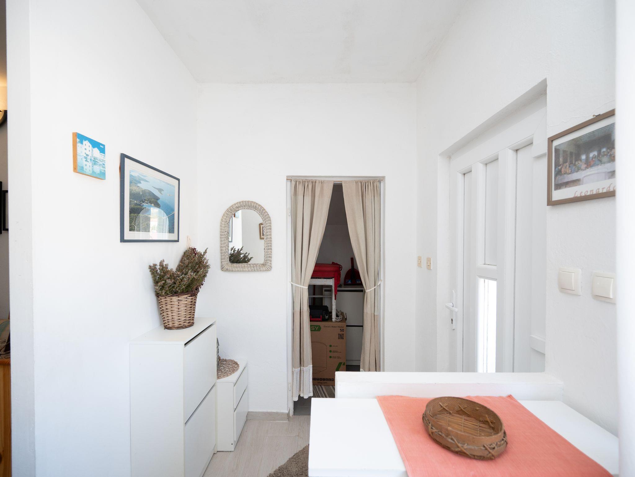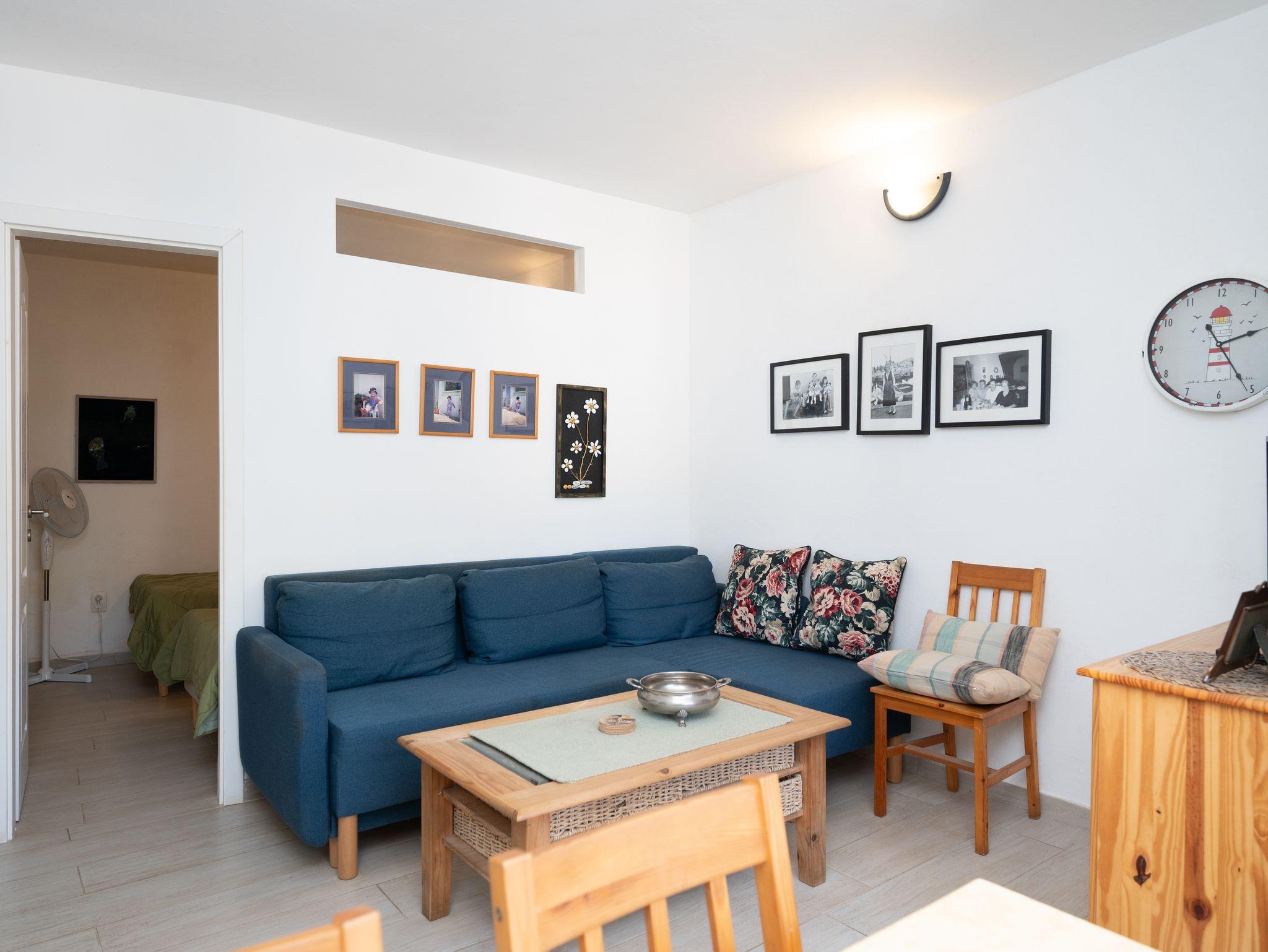 Ferienwohnung bietet Platz für 3 Gäste. Die Betten sind in Schlafzimmern, die es 1 gibt, und in Wohnzimmer, innerhalb einer Gesamtfläche von 28m2, angeordnet. Das Apartment bietet Meerblick. Es ist erlaubt, Speisen auf dem Gemeinschafts-Grill vorzubereiten. In der Unterkunftseinheit besteht die Möglichkeit des Mitbringens von Haustieren gegen Aufpreis. Die reservierte Unterkunftseinheit hat keinen Balkon und keine Terrasse. IM PREIS INBEGRIFFEN: Kurtaxe, Endreinigung, Internet, Bootsanlegeplatz, Kinderbett, Bügeleisen, Bügelbrett, Föhn, Liegestühle. VERBINDLICHE ZUSÄTZLICHE KOSTEN: Aufzahlung für Kurzaufenthalte (prozentualer Zuschlag pro Nächtigungsanzahl: 30% - 1, 20% - 2, 10% - 3). UNVERBINDLICHE ZUSÄTZLICHE KOSTEN: Wäschewaschen (5,00 € Waschen), Haustiere (5,00 € pro Nacht). Die Verfügbarkeit zusätzlicher Dienstleistungen in Ihrem reservierten Termin und die Preise derselben (falls nicht aufgeführt) müssen im Voraus überprüft werden. Zusätzliche Dienstleistungen die in der Zahlungsaufforderung nicht aufgeführt sind werden direkt beim Vermieter bezahlt, angenommen der Gast nutzt auch diese.