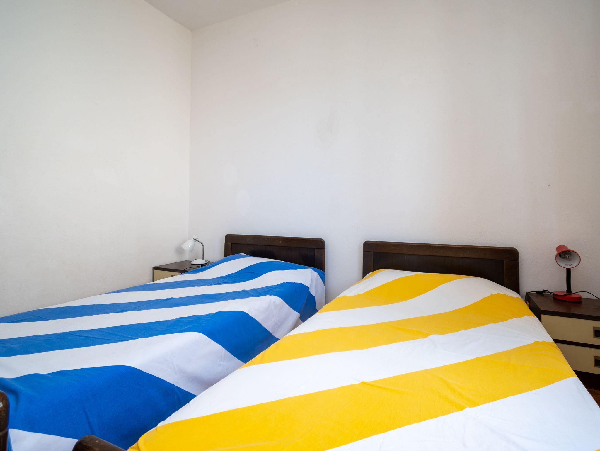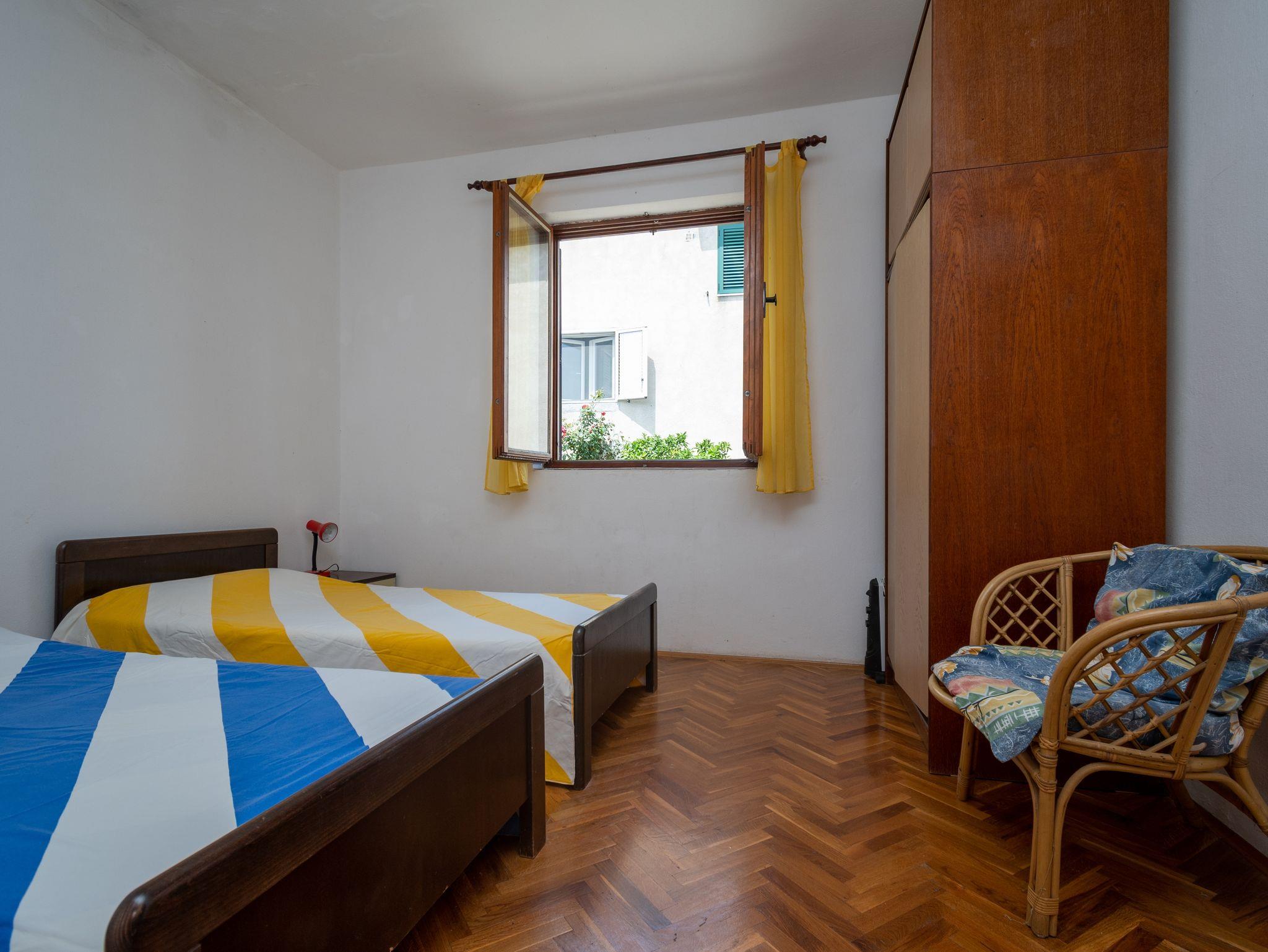 Ferienwohnung bietet Platz für 4 Gäste. Die Betten sind in Schlafzimmern, die es 2 gibt, innerhalb einer Gesamtfläche von 43m2, angeordnet. Die Gäste haben eine eigene Terrasse zur Verfügung, auf der sie in warmen Sommernächten genießen können. Das Apartment bietet Meerblick. Es ist erlaubt, Speisen auf dem Gemeinschafts-Grill vorzubereiten. In der Unterkunftseinheit besteht die Möglichkeit des Mitbringens von Haustieren gegen Aufpreis. IM PREIS INBEGRIFFEN: Kurtaxe, Endreinigung, Klimatisierung, Parkplatz, Garage, Internet, Bootsanlegeplatz, Bügeleisen, Bügelbrett, Föhn, Sonnenschirm. VERBINDLICHE ZUSÄTZLICHE KOSTEN: Aufzahlung für Kurzaufenthalte (prozentualer Zuschlag pro Nächtigungsanzahl: 30% - 1, 20% - 2, 10% - 3). UNVERBINDLICHE ZUSÄTZLICHE KOSTEN: Wäschewaschen (5,00 € Waschen), Haustiere (5,00 € pro Nacht). Die Verfügbarkeit zusätzlicher Dienstleistungen in Ihrem reservierten Termin und die Preise derselben (falls nicht aufgeführt) müssen im Voraus überprüft werden. Zusätzliche Dienstleistungen die in der Zahlungsaufforderung nicht aufgeführt sind werden direkt beim Vermieter bezahlt, angenommen der Gast nutzt auch diese.