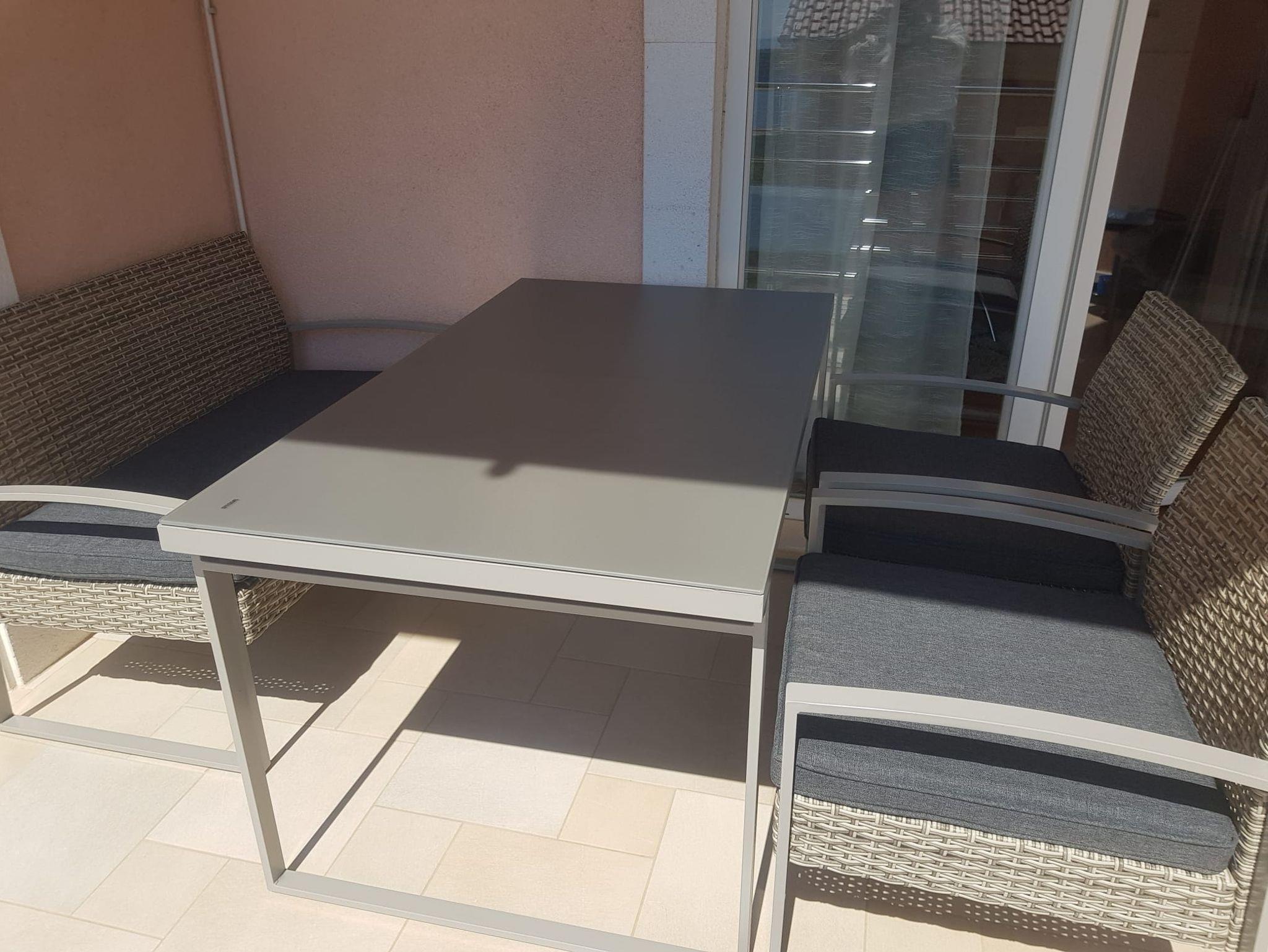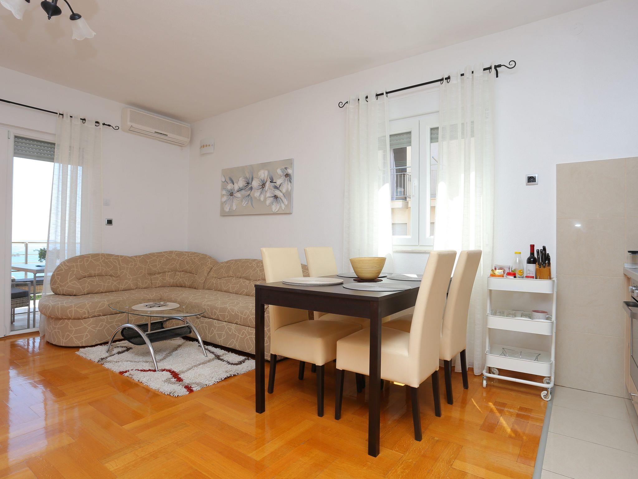 Ferienwohnung bietet Platz für 4 Gäste. Die Betten sind in Schlafzimmern, die es 1 gibt, und in Wohnzimmer, innerhalb einer Gesamtfläche von 48m2, angeordnet. Die Gäste haben eine eigene Terrasse zur Verfügung, auf der sie in warmen Sommernächten genießen können. Das Apartment bietet Meerblick. In der Unterkunftseinheit besteht die Möglichkeit des Mitbringens von Haustieren, und die Dienstleistung ist im Preis der Unterkunft enthalten. IM PREIS INBEGRIFFEN: Kurtaxe, Endreinigung, Klimatisierung, Parkplatz, Internet, Haustiere, Bügeleisen, Bügelbrett, Föhn. Die Verfügbarkeit zusätzlicher Dienstleistungen in Ihrem reservierten Termin und die Preise derselben (falls nicht aufgeführt) müssen im Voraus überprüft werden. Zusätzliche Dienstleistungen die in der Zahlungsaufforderung nicht aufgeführt sind werden direkt beim Vermieter bezahlt, angenommen der Gast nutzt auch diese. Ermäßigung auf den Grundpreis: Gratistag 14=13 (bei einem Aufenthalt von 14 Tagen oder mehr erhalten Sie einen Gratistag für den Aufenthalt bis 31.12.26).