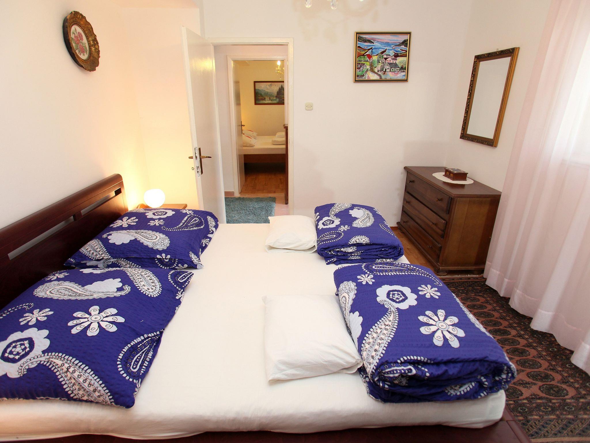 Ferienwohnung bietet Platz für 4 Gäste. Die Betten sind in Schlafzimmern, die es 2 gibt, innerhalb einer Gesamtfläche von 57m2, angeordnet. Die Gäste haben eine eigene Terrasse zur Verfügung, auf der sie in warmen Sommernächten genießen können. Das Apartment bietet Meerblick. Es ist erlaubt, Speisen auf dem Gemeinschafts-Grill vorzubereiten. IM PREIS INBEGRIFFEN: Kurtaxe, Endreinigung, Klimatisierung, Parkplatz, Garage, Internet, Bootsanlegeplatz, Bügeleisen, Bügelbrett, Föhn. Die Verfügbarkeit zusätzlicher Dienstleistungen in Ihrem reservierten Termin und die Preise derselben (falls nicht aufgeführt) müssen im Voraus überprüft werden. Zusätzliche Dienstleistungen die in der Zahlungsaufforderung nicht aufgeführt sind werden direkt beim Vermieter bezahlt, angenommen der Gast nutzt auch diese.