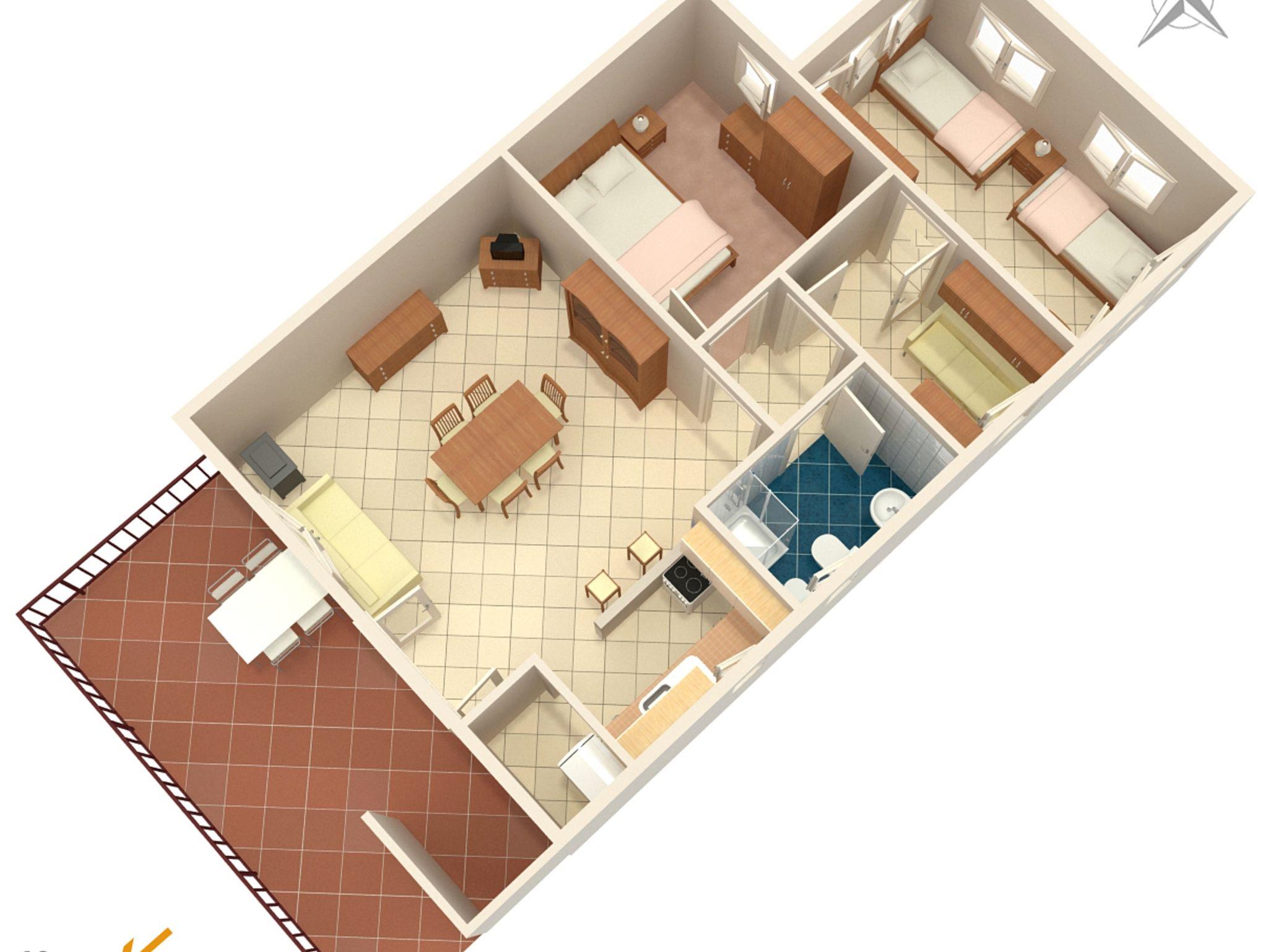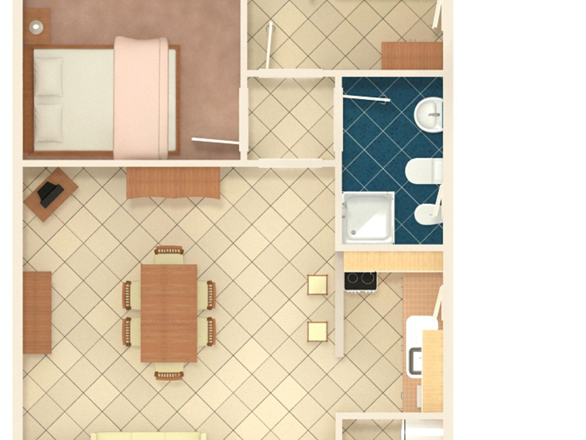 Ferienwohnung bietet Platz für 5 Gäste. Die Betten sind in Schlafzimmern, die es 2 gibt, und in Wohnzimmer, innerhalb einer Gesamtfläche von 57m2, angeordnet. Die Gäste haben eine eigene Terrasse zur Verfügung, auf der sie in warmen Sommernächten genießen können. Das Apartment bietet Meerblick. Es ist erlaubt, Speisen auf dem Gemeinschafts-Grill vorzubereiten. IM PREIS INBEGRIFFEN: Kurtaxe, Endreinigung, Klimatisierung, Parkplatz, Internet, Kinderbett, Bügeleisen, Bügelbrett, Föhn, tragbarer Grill, Sonnenschirm. Die Verfügbarkeit zusätzlicher Dienstleistungen in Ihrem reservierten Termin und die Preise derselben (falls nicht aufgeführt) müssen im Voraus überprüft werden. Zusätzliche Dienstleistungen die in der Zahlungsaufforderung nicht aufgeführt sind werden direkt beim Vermieter bezahlt, angenommen der Gast nutzt auch diese. Ermäßigung auf den Grundpreis: Gratistag 14=13 (bei einem Aufenthalt von 14 Tagen oder mehr erhalten Sie einen Gratistag für den Aufenthalt bis 31.12.26).