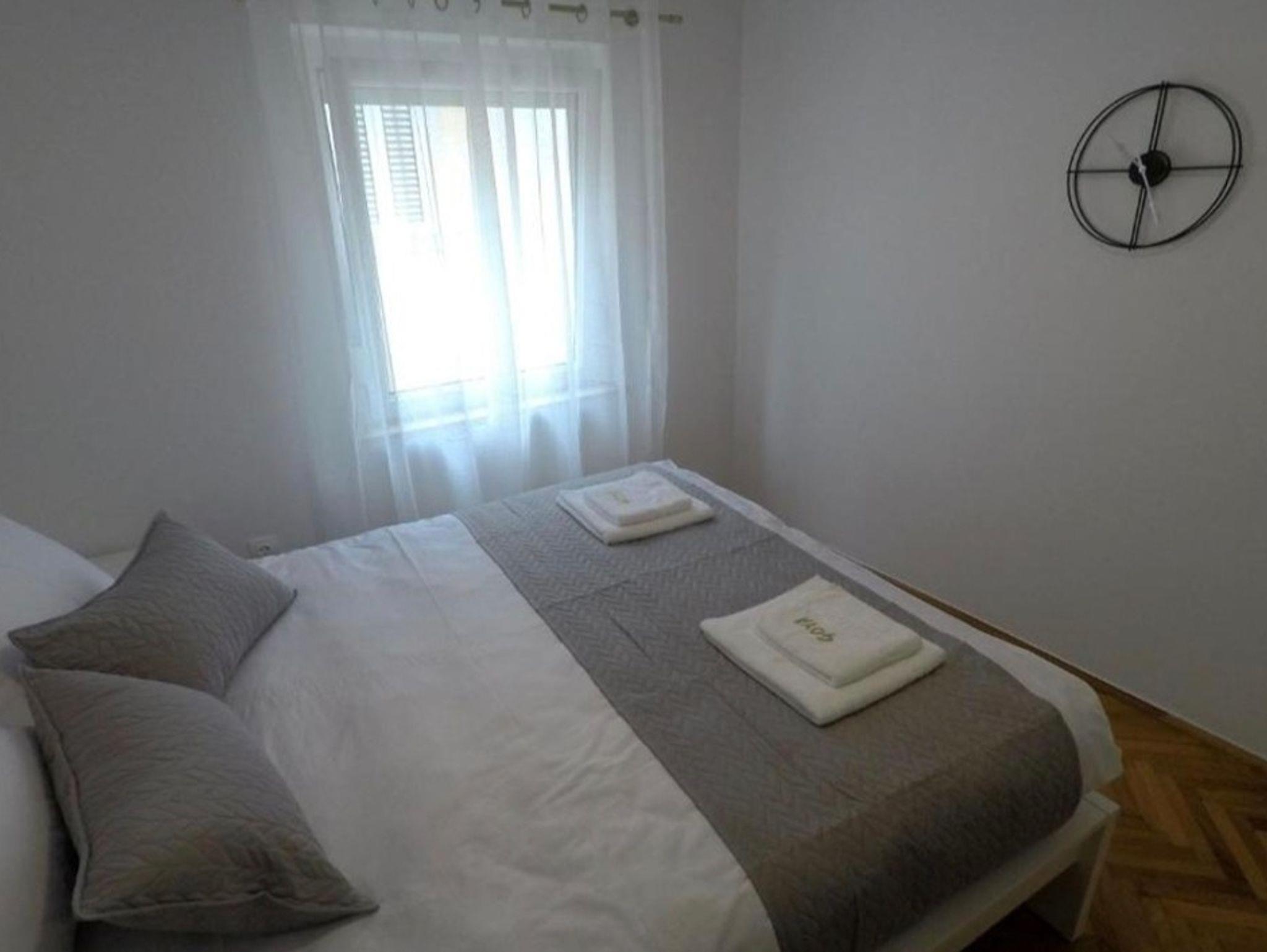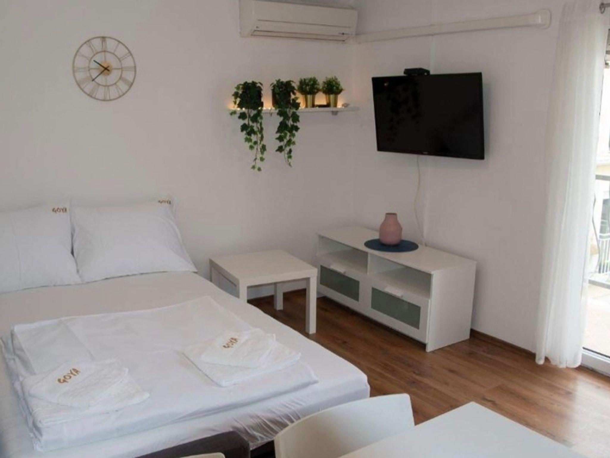 Ferienwohnung bietet Platz für 4 Gäste. Die Betten sind in Schlafzimmern, die es 1 gibt, und in Wohnzimmer, innerhalb einer Gesamtfläche von 33m2, angeordnet. Die Gäste haben einen eigenen Balkon zur Verfügung, auf der sie in warmen Sommernächten genießen können. Das Apartment bietet Meerblick. IM PREIS INBEGRIFFEN: Kurtaxe, Endreinigung, Klimatisierung, Internet, Kinderbett, Bügeleisen, Bügelbrett, Föhn. Die Verfügbarkeit zusätzlicher Dienstleistungen in Ihrem reservierten Termin und die Preise derselben (falls nicht aufgeführt) müssen im Voraus überprüft werden. Zusätzliche Dienstleistungen die in der Zahlungsaufforderung nicht aufgeführt sind werden direkt beim Vermieter bezahlt, angenommen der Gast nutzt auch diese.