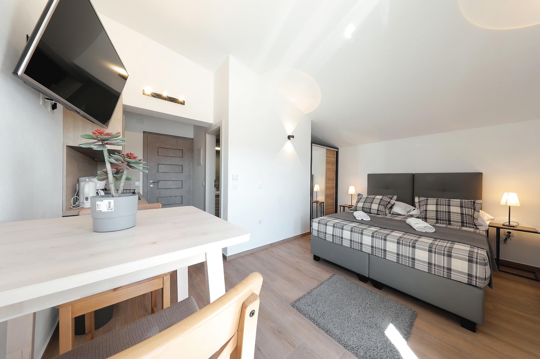 Denne rummelige 6-værelses villa i Seline kan rumme op til 17 gæster, ideel til store familier eller grupper. Kun 250 meter fra havet har det en privat opvarmet swimmingpool med solbruser og en indhegnet, oplyst have med liggestole, havemøbler og et grillområde til afslapning udendørs. Villaen har flere fuldt udstyrede køkkener, opholds- og spisestuer med aircondition og flere balkoner og terrasser med smuk udsigt. Indenfor inkluderer kælderens rekreative rum et tv, spiseplads, dart og festspil til underholdning. Villaen ligger tæt på restauranter (250 m) og købmandsforretninger (500 m), med Starigrad-Paklenicas centrum 3 km væk. Parkering er tilgængelig på stedet. Den nærmeste lufthavn ligger 45 km fra ejendommen. Denne villa kombinerer komfort, plads og fremragende faciliteter til en uforglemmelig ferie på dalmatiske kysten.