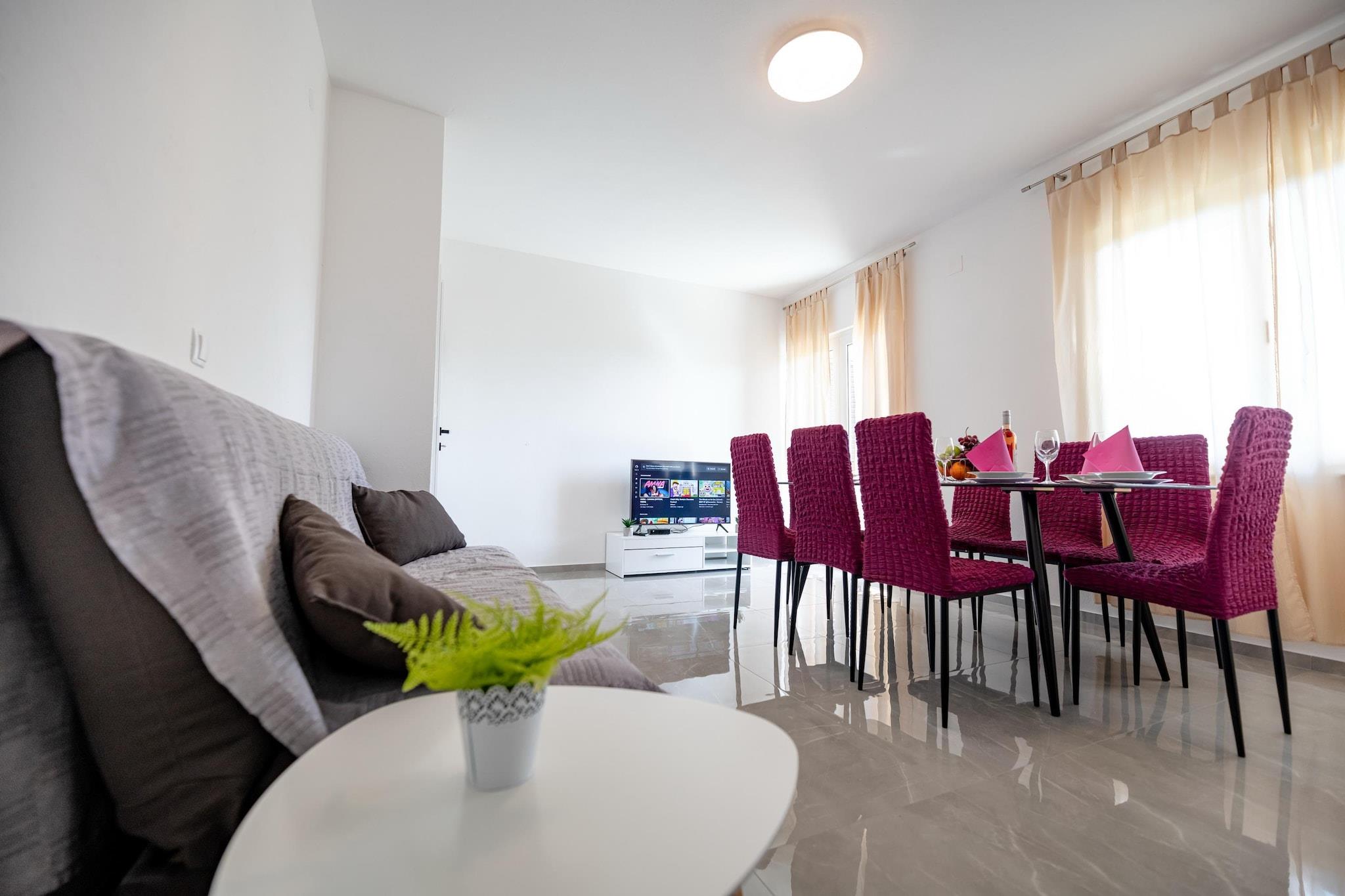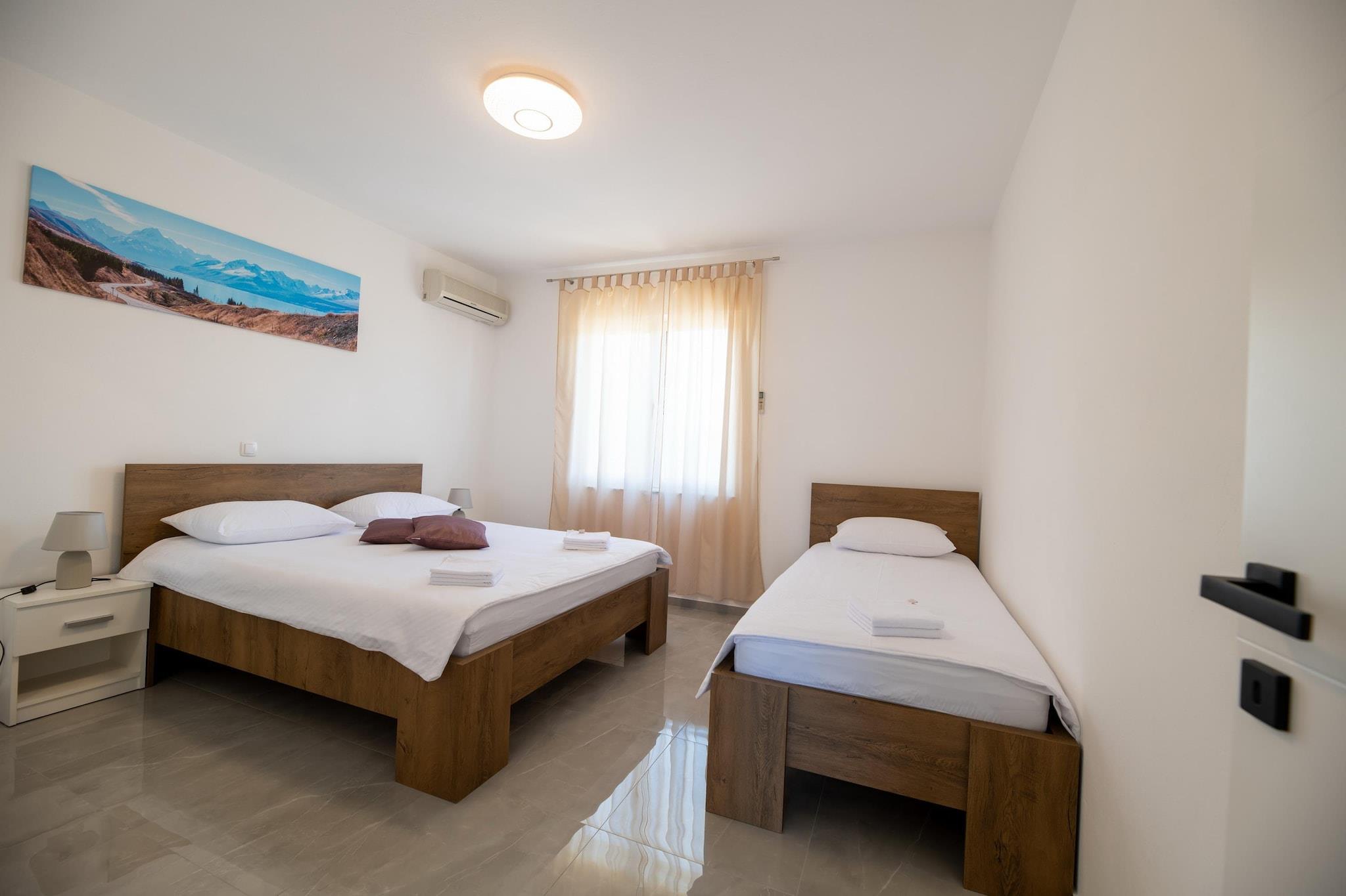 På kystvejen ved Seline og ikke langt fra stranden finder du dette lille private hus med 2 veludstyrede og moderne lejligheder. I de rummelige lejligheder, som har en skøn terrasse eller altan, finder op til 9 voksne den rette bolig til en afslappende familieferie. Den smukke have byder på masser af plads til at lege og grillplads til hyggelige aftener. Huset er også ideelt for 2 familier, der rejser sammen. Seline ligger på kysten af Velebit-kanalen, omkring tre kilometer syd for Starigrad. Blandt de smukkeste strande er bugten "Jaz", strandene "Pisak" og "Polje". Supermarkeder, restauranter, caféer, frugt- og grøntsagsmarkeder kan findes i nærheden. Der arrangeres også koncerter med lokal musik i landsbyen. Detaljer ingar: WLAN, registreringsgebyr, byskat, forbrugsbaserede energiomkostninger, sengelinned, håndklæder, slutrengøring. Aktiviteter i nærheden: På den sydligste del af Velebit, den største bjergkæde i Dinaric-massivet, ligger Paklenica National Park, som strækker sig helt ud til havet. Det betyder, at du har et af de mest imponerende landskaber lige uden for døren til dit sommerhus. Speleologer, klatrere, vandrere, botanikere og aktive vandrere får noget for pengene her, ligesom mountainbikere. Parkens hovedattraktioner er de to betagende kløfter Velika og Mala Paklenica med mange usædvanlige karstreliefformer og flere huler, der strækker sig til havet fra svimlende højder. Der venter de lange stenstrande og det blå hav alle vandsportsentusiaster, og der er også meget at se for undervandsfans, mens de snorkler eller dykker. Udendørs højdepunkter i regionen omfatter kanosafari og bådture på Zrmanja-floden. Den kulturelle metropol Zadar kan nås efter cirka 40 kilometer, den historiske landsby Nin er cirka 50 kilometer væk.