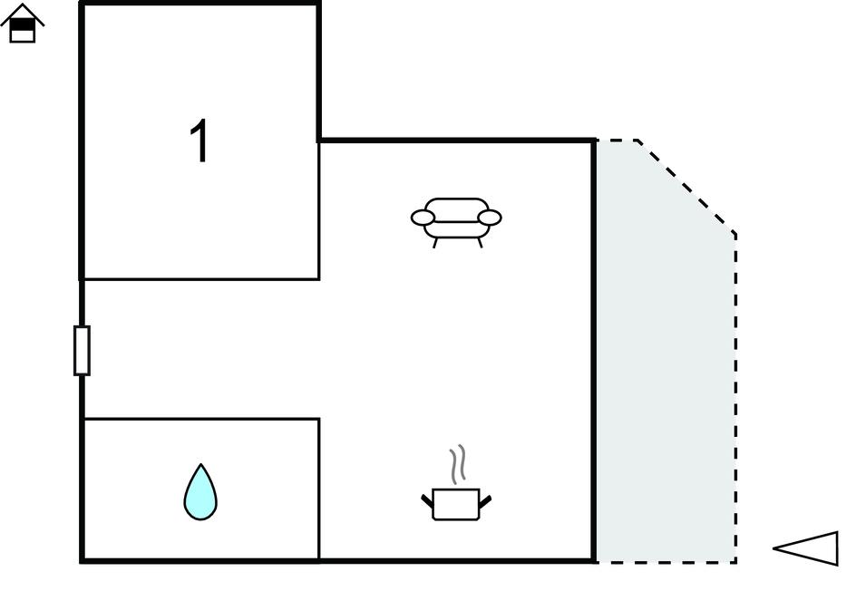 Opholdsstue/køkken 23m2 - 1 Soveplads. (Sofa, madras eller lignende).