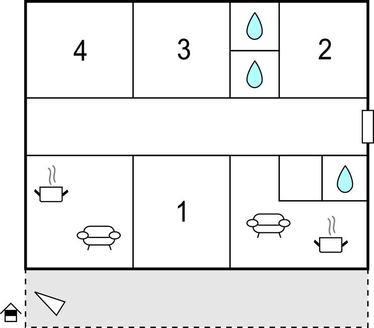 Badeværelse 3m2 (nr. 4) - WC. Varmt og koldt vand. Bruser