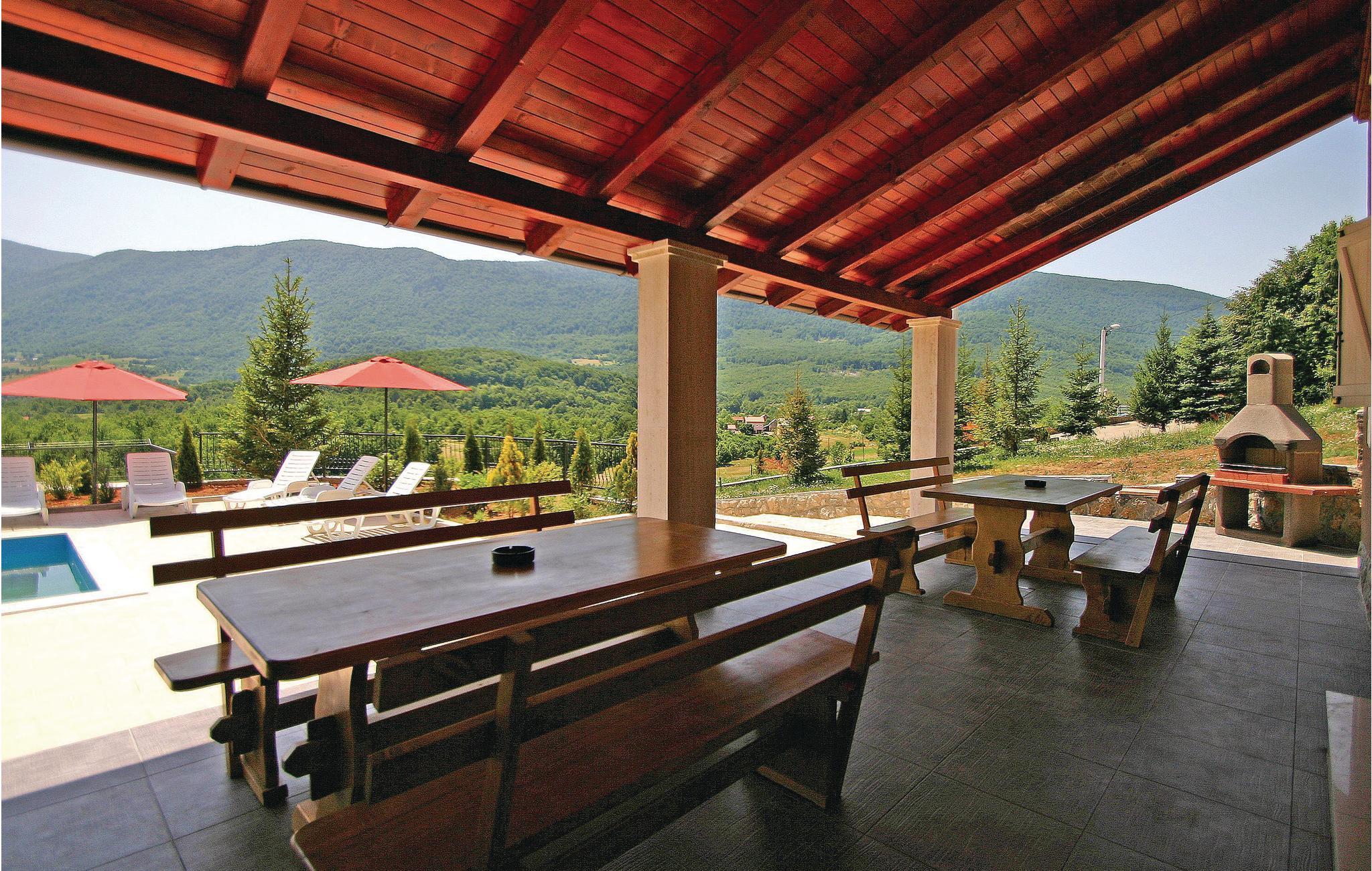 Dette dejlige, nye feriehus ligger i Crni Kal, en lille by på skråningerne af Velebit. Ideelt til en afslappende ferie. I stueetagen finder I køkken og spisestue, her er også trappen til 1. etage med opholdsstue og adgang til den overdækkede terrasse. En lille fodboldbane og bordtennis er til rådighed. Bliv afsvalet i den dejlige pool på de varme sommerdage. Det tager omkring en time at nå nationalparken Plitvice-Søerne. Soveværelse 6 er gennemgangsværelse. I har adgang til bordtennis, basketballkurv, tennisbane og efter aftale med ejer også en pub. Faciliteterne deles med gæsterne fra CKV171.
