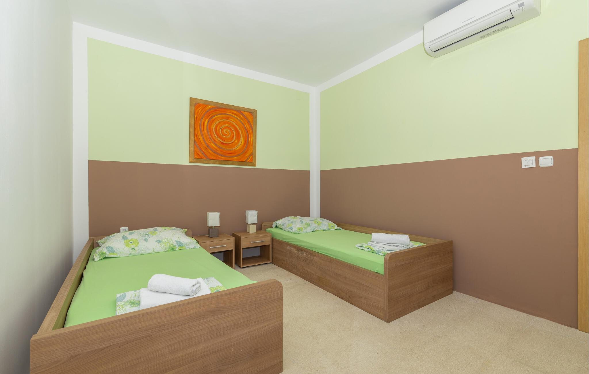 Denne lyse og velholdte ferielejlighed i den idylliske kystby Lukovo lægger op til en afslappende ferie med venner eller familie. Pisk kroatiske specialiteter op i det åbne køkken og nyd jeres måltider ved det hyggelige spisebord. Slap af på det rummelige sofaområde, stream en god serie eller tilbring tid sammen over en spilleaften.