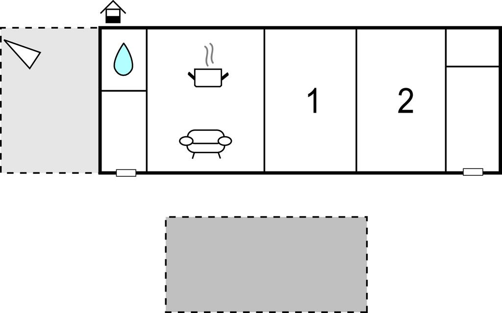 Soveværelse 12m2 (nr. 2) - 1 Soveplads. (Enkeltseng(e)). 2 Sovepladser. (Dobbeltseng(e)).