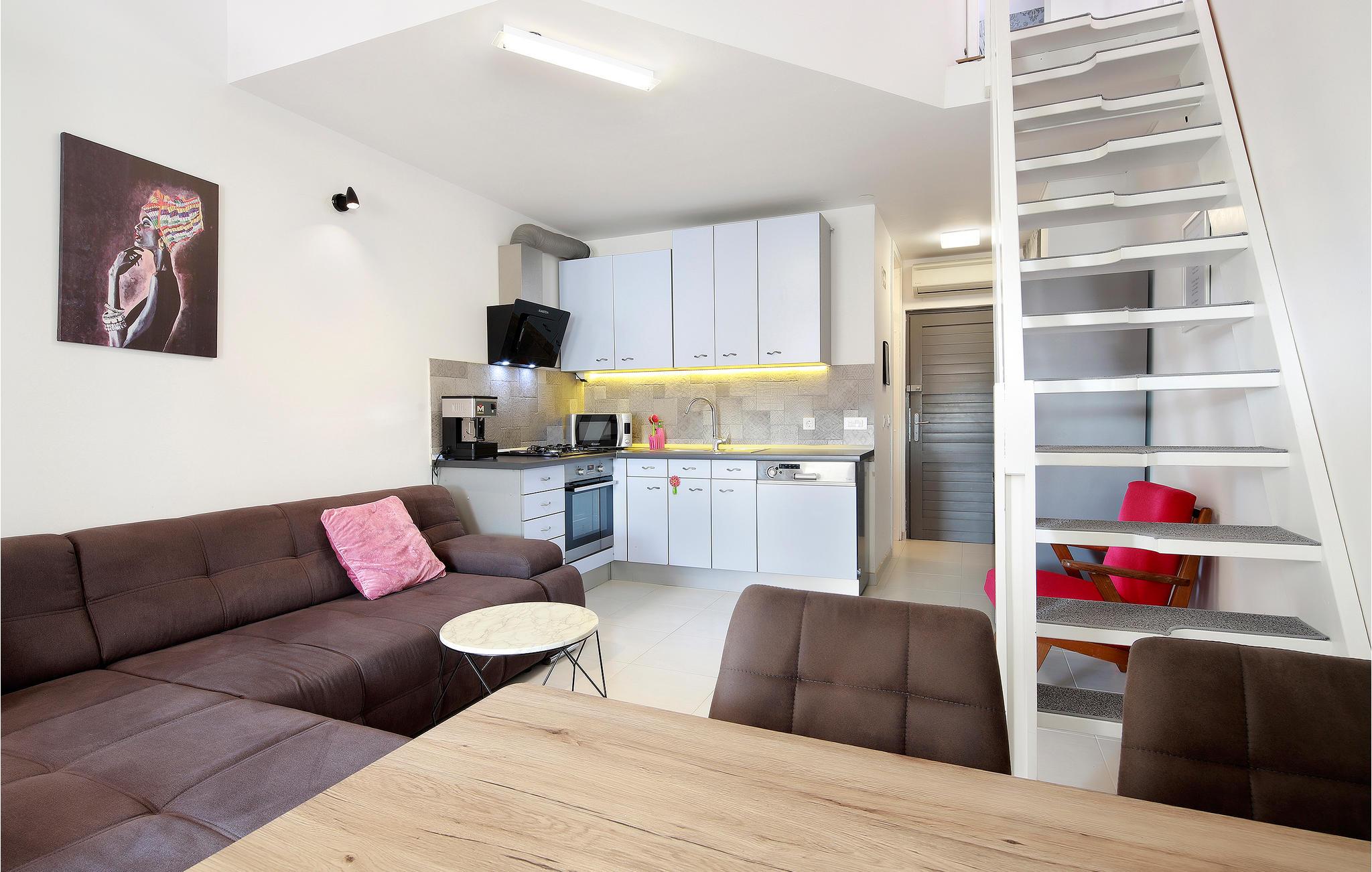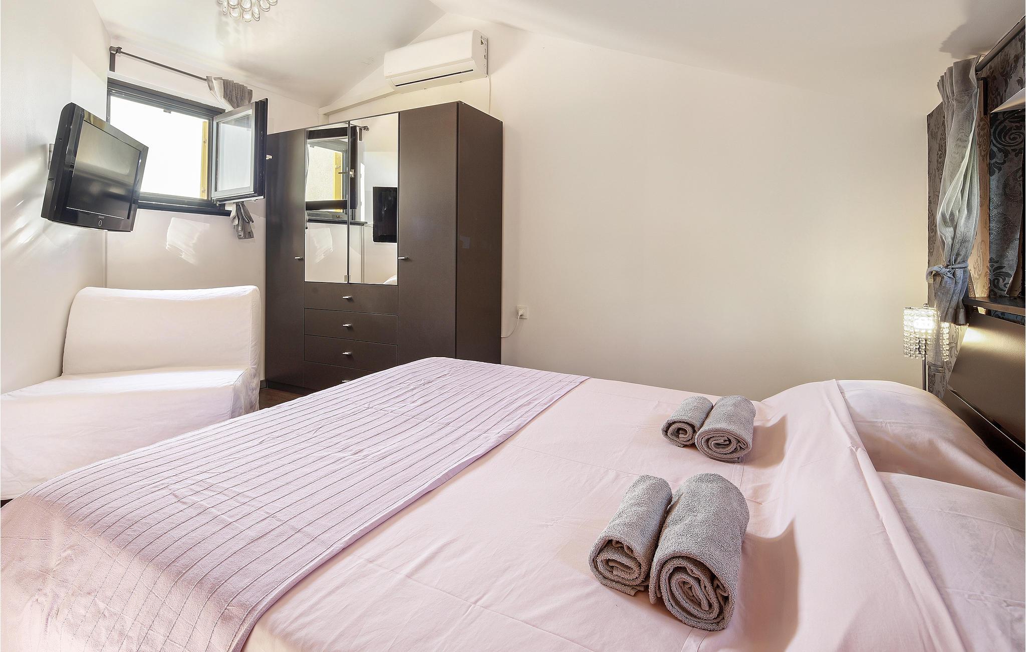 Ferielejligheden ligger kun 150 meter fra nærmeste strand, hvor I kan bade, dyrke vandsport og slappe af i solen. Stinicas centrum ligger kun få skridt væk fra lejligheden, hvor I finder butikker og restauranter, som har sæsonåbent.
