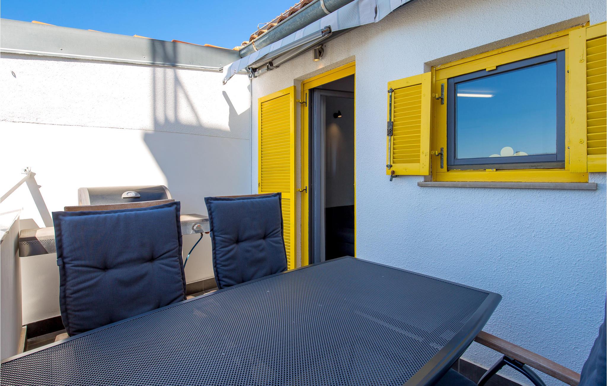 Lejligheden er flot indrettet og har en perfekt størrelse til en familie på fire eller to vennepar. På den store terrasse kan I begynde dagen med en kop kaffe i de komfortable havemøbler eller slutte med et glas vin, mens I nyder havudsigten eller ser en romantisk solnedgang. Der er også en grill, så I kan nyde de lange, lune sommeraftener udendørs.
