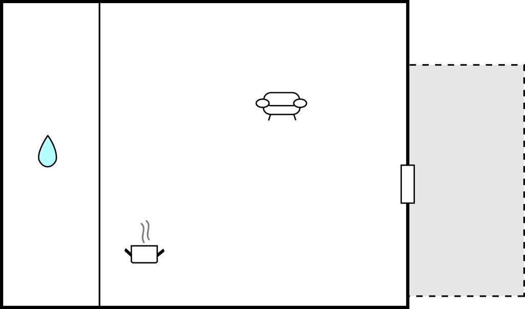 Opholdsstue/køkken 15m2 - 2 Sovepladser. (Sofa, madras eller lignende).
