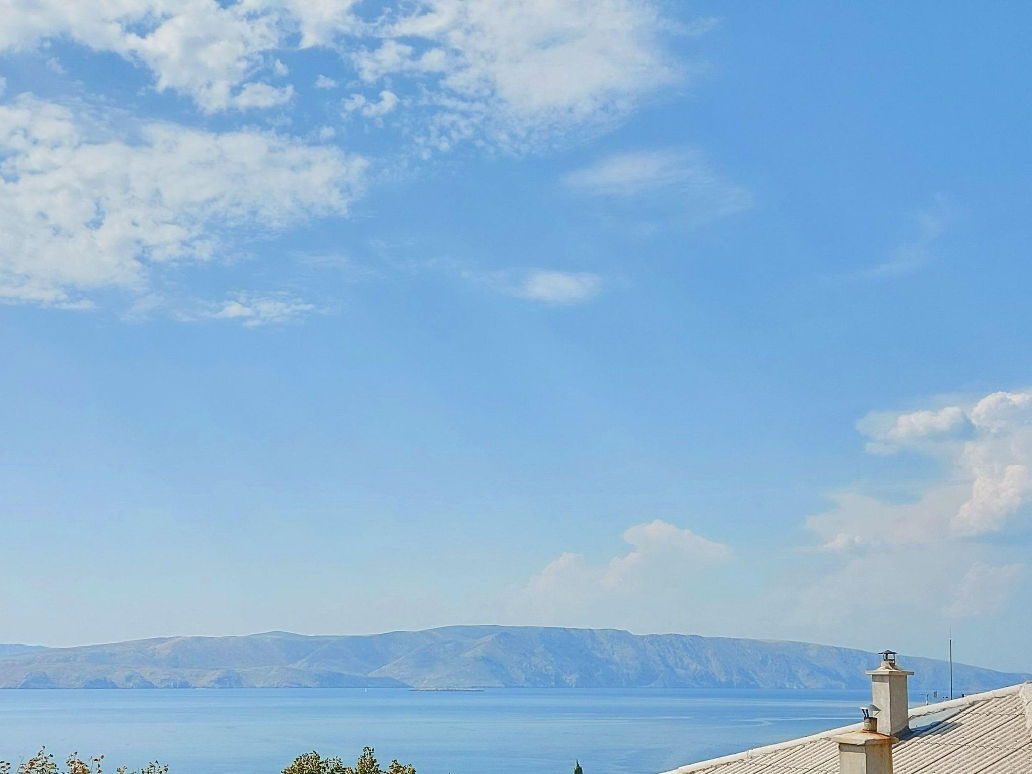 The holiday home has a ground floor and an upper floor. On the ground floor there are two bedrooms, a bathroom and a kitchenette. On the first floor there is a living room and dining room with air conditioning and 2 large sofa beds, a fully equipped kitchen and another bedroom with air conditioning and a bathroom. From the living area you can access the furnished balcony, which offers a view of the sea and the sunset. It is furnished with two folding chairs and a small table.