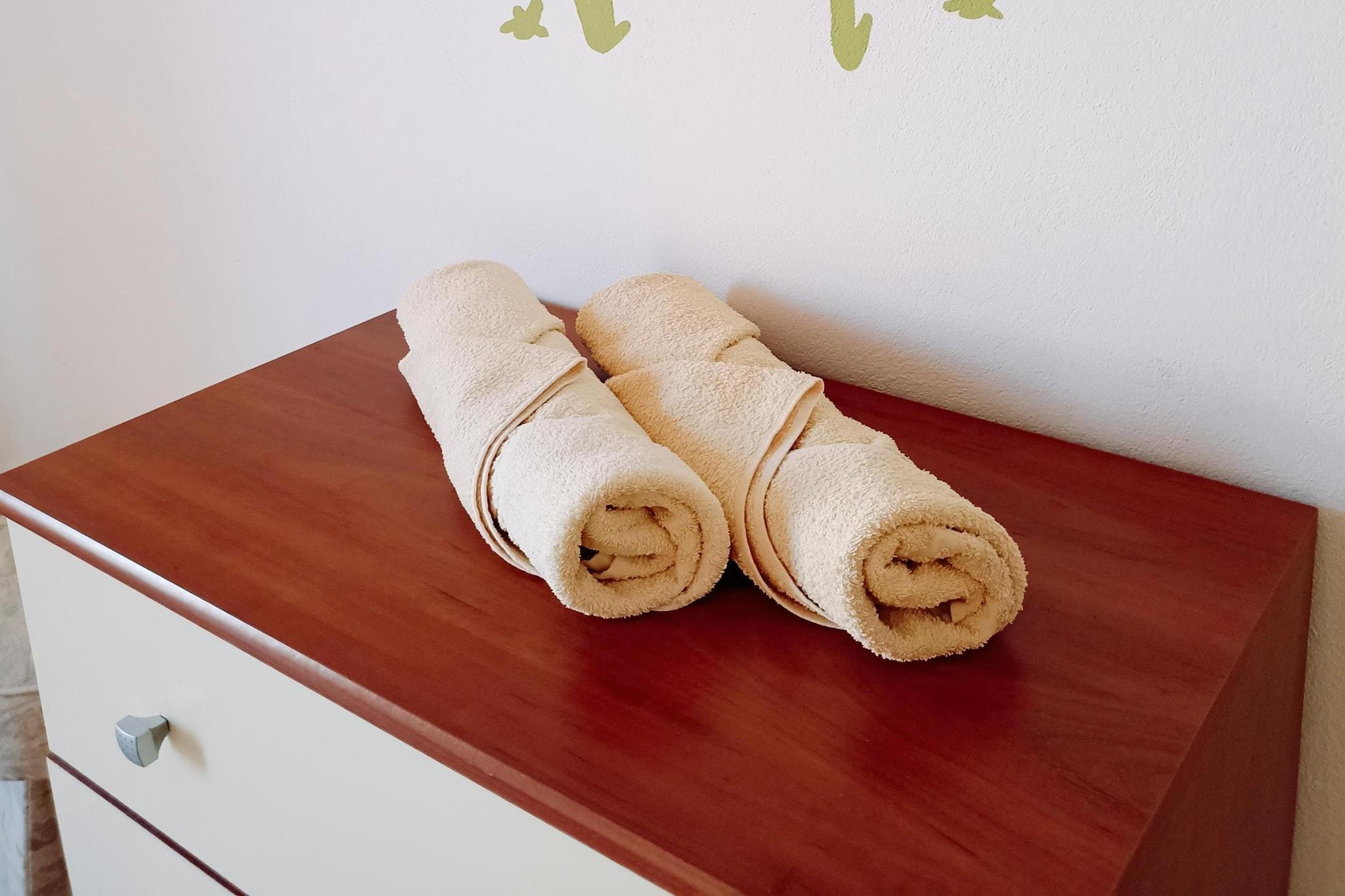 På 1. etage: (Køkken(spisebord, elkedel, brødrister, komfur, kaffemaskine, mikrobølgeovn, køle-fryseskab), Stue/soveværelse(enkeltsovesofa, Fjernsyn), soveværelse(dobbeltseng), badeværelse(tilgængelig via et værelse)(bruser, håndvask, toilet), tagterrasse) udekøkken(deles med andre gæster), vaskemaskine, klimaanlæg, have(deles med andre gæster), solstole, grill, parkering, Parasol, swimmingpool(deles med andre gæster)