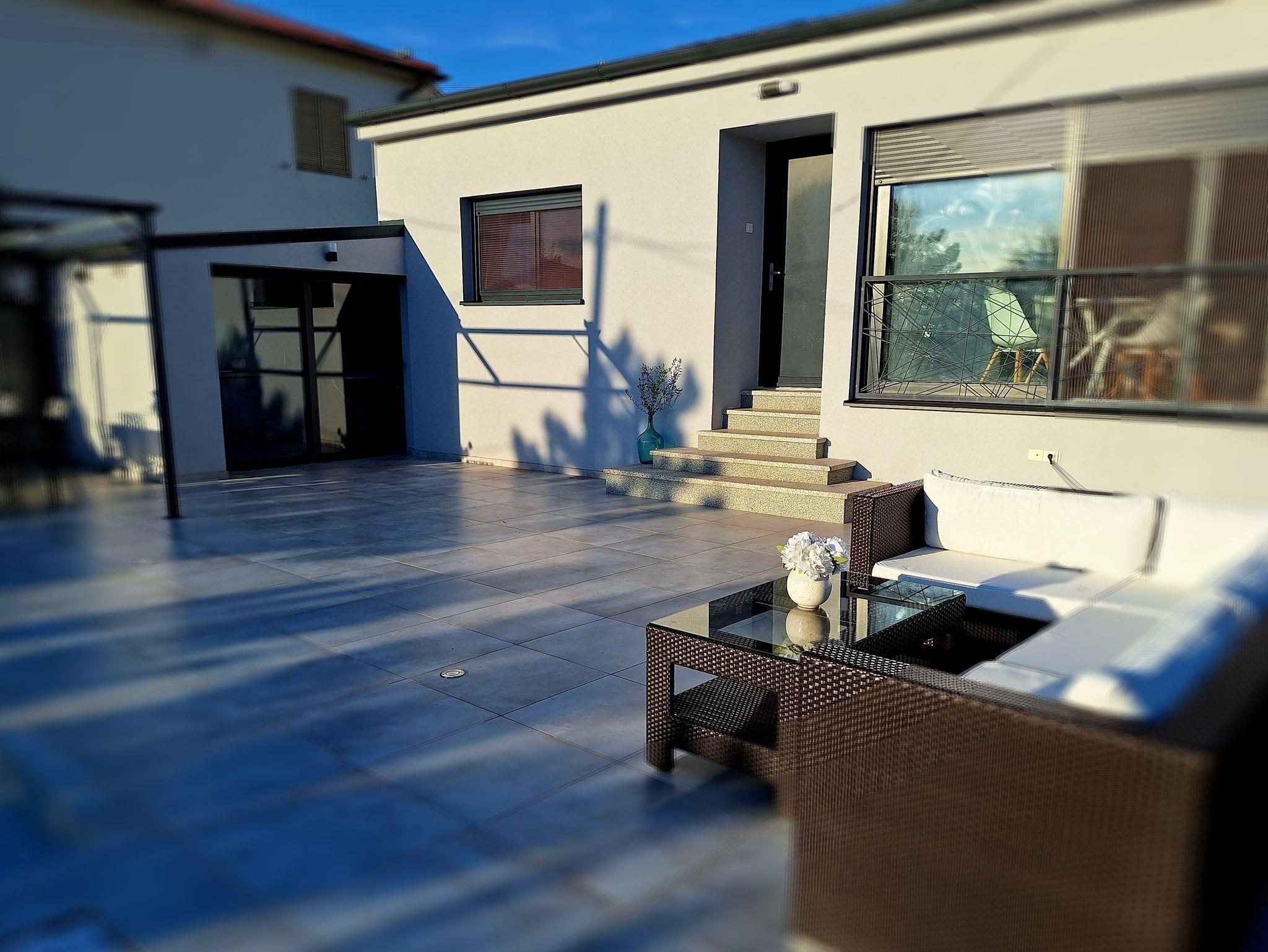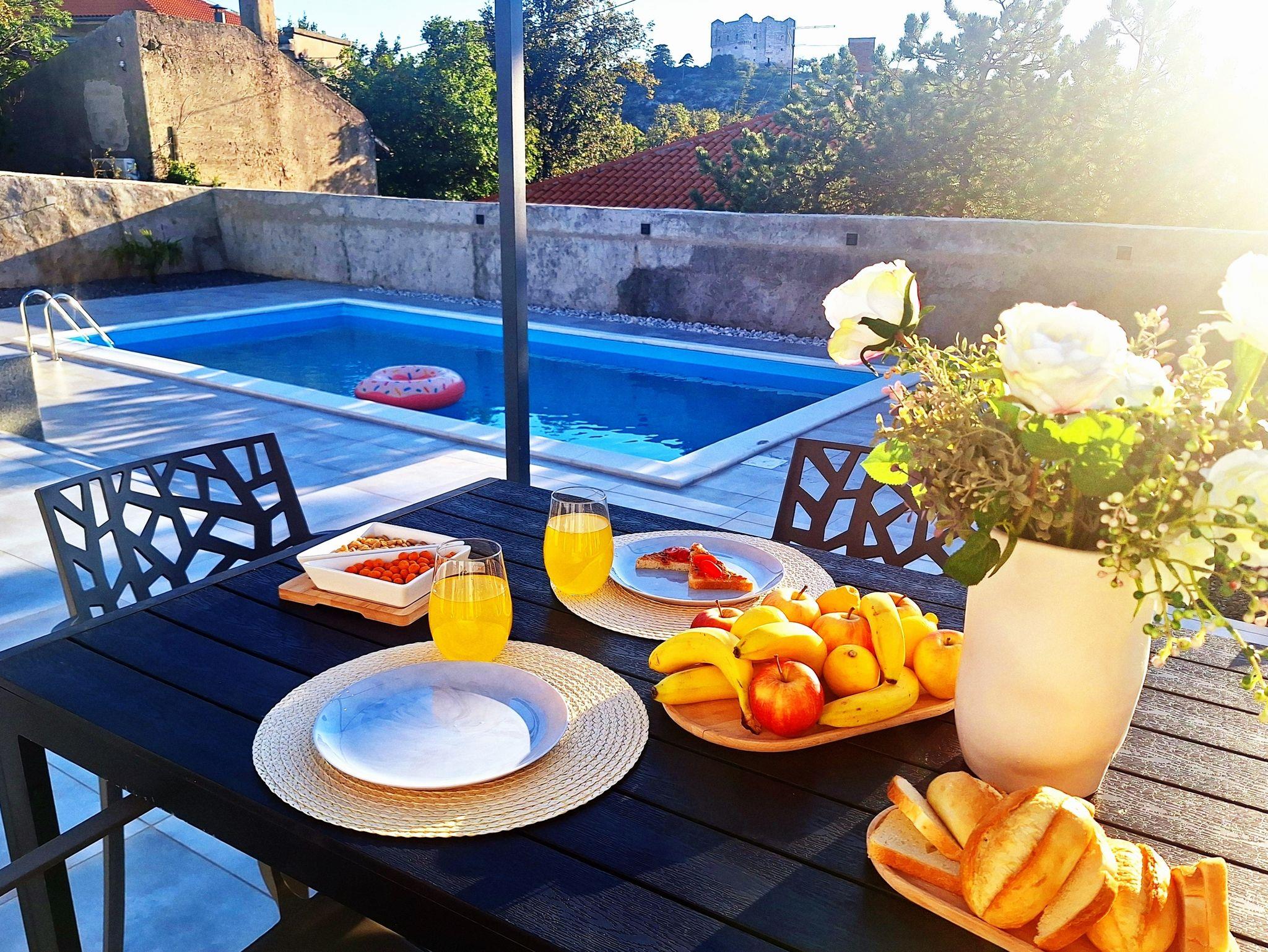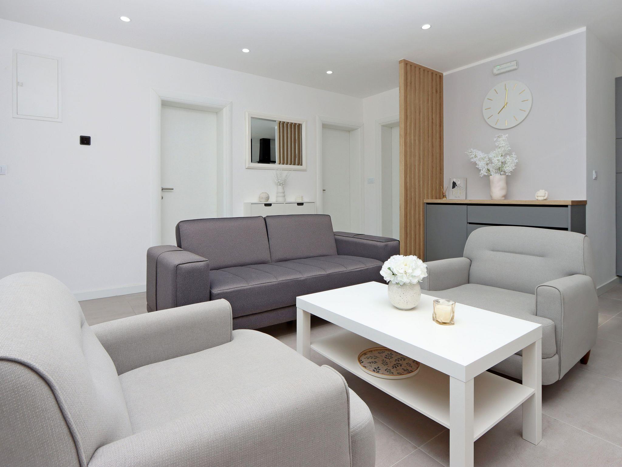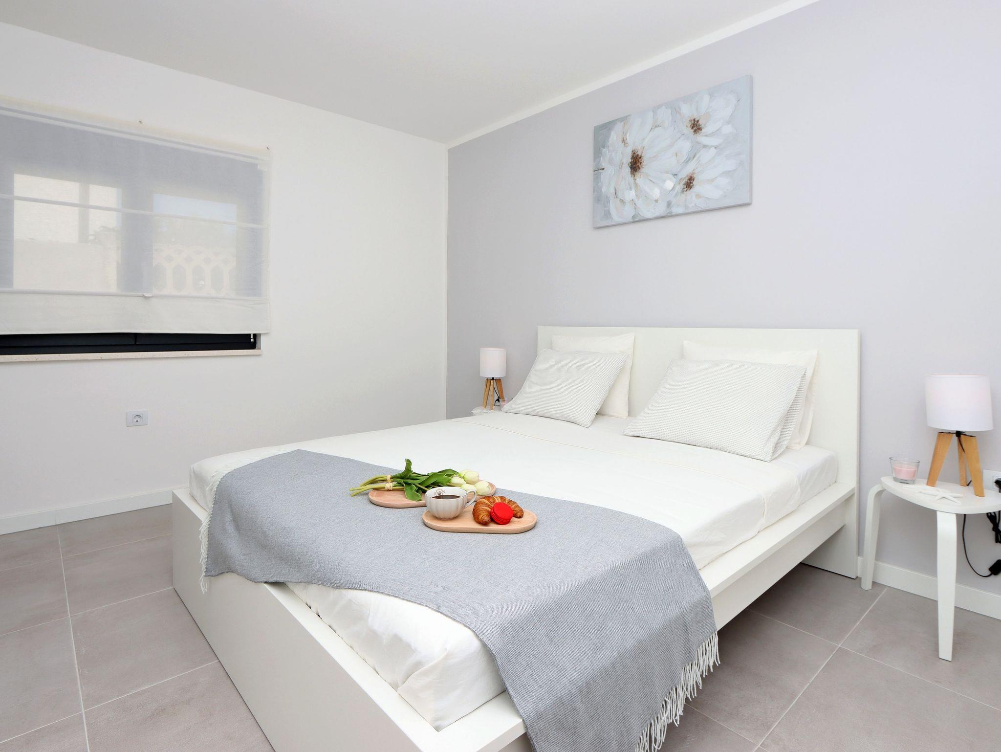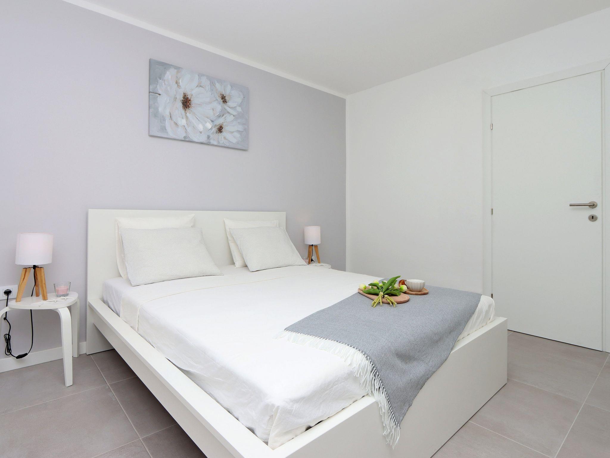 Haus bietet Platz für 5 Gäste. Die Betten sind in Schlafzimmern, die es 2 gibt, und in Wohnzimmer, innerhalb einer Gesamtfläche von 80m2, angeordnet. Die Gäste haben eine eigene Terrasse zur Verfügung, auf der sie in warmen Sommernächten genießen können. Für vollen Genuss und Entspannung gibt es einen privaten Grill für Gäste dieser Unterkunft. Während ihres Aufenthalts können sich Gäste im privaten Schwimmbad entspannen. Räume der gebuchten Unterkunftseinheit werden nicht in eine Ganze verbunden. IM PREIS INBEGRIFFEN: Kurtaxe, Endreinigung, Klimatisierung, Pool, Parkplatz, Internet, Bügeleisen, Bügelbrett, Föhn. Die Verfügbarkeit zusätzlicher Dienstleistungen in Ihrem reservierten Termin und die Preise derselben (falls nicht aufgeführt) müssen im Voraus überprüft werden. Zusätzliche Dienstleistungen die in der Zahlungsaufforderung nicht aufgeführt sind werden direkt beim Vermieter bezahlt, angenommen der Gast nutzt auch diese.