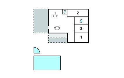 Badeværelse (nr. 1) - WC. Varmt og koldt vand. Bruser