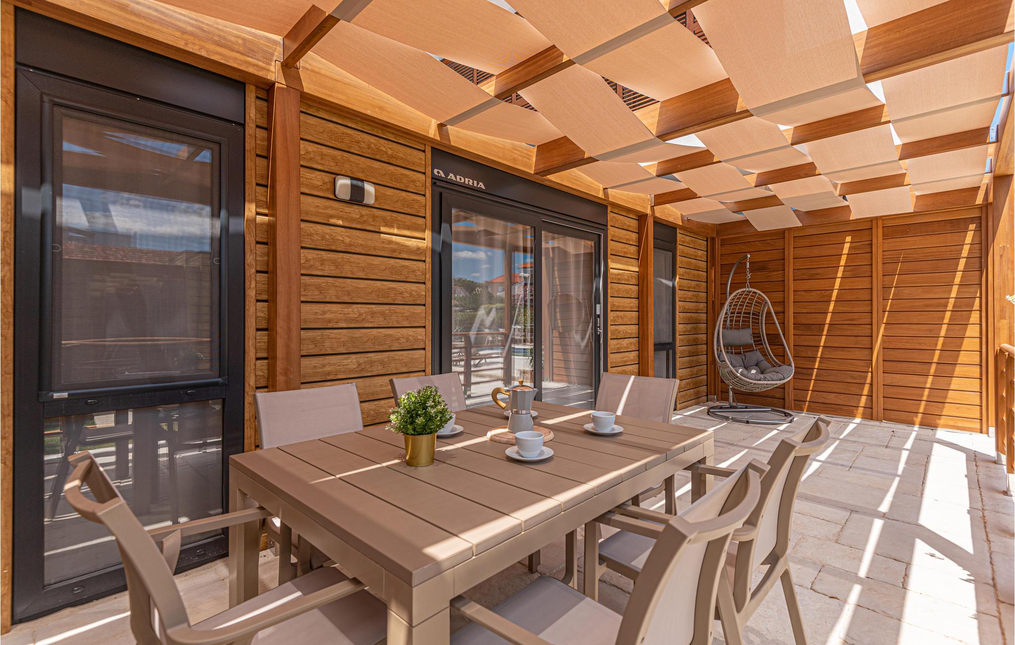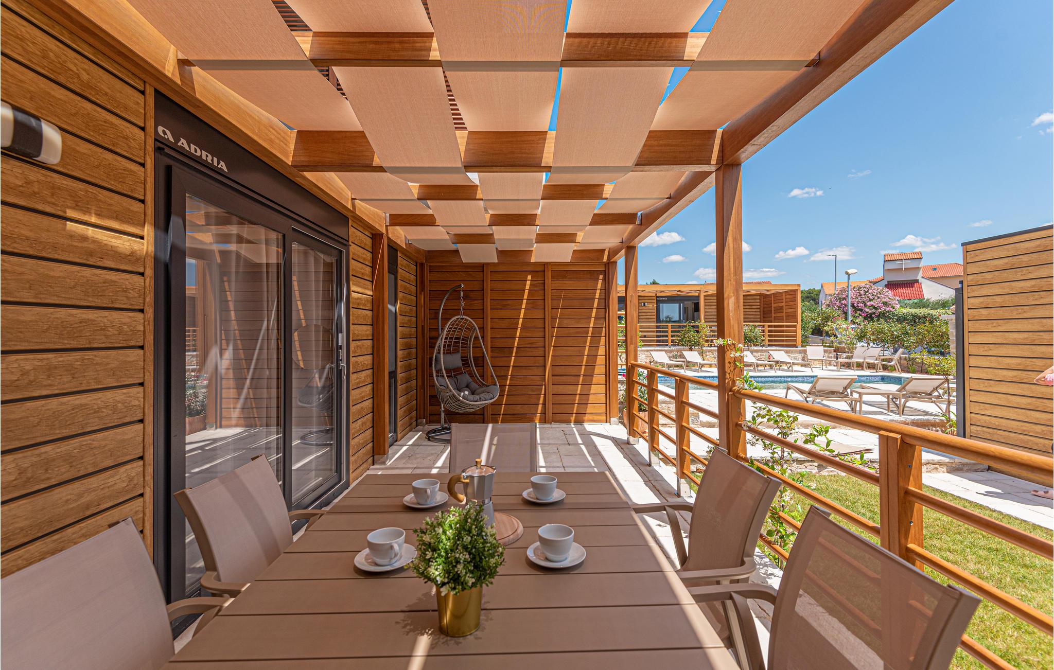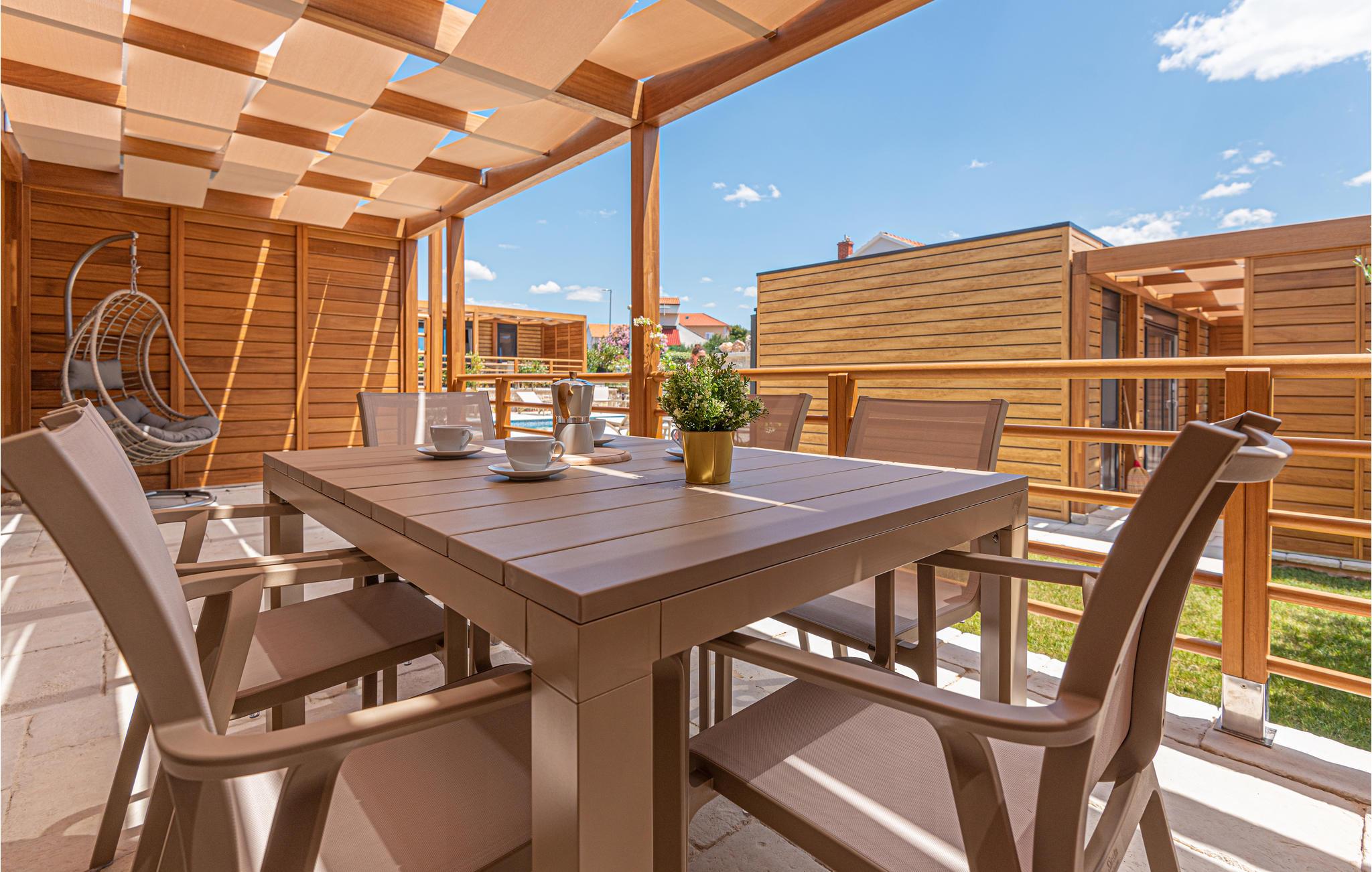 Tilbring en uforglemmelig ferie ikke langt fra havet. Den charmerende kystby Brodarica er det perfekte sted for jeres afslappende ferie med denne smukke bolig. Træd ind i det kompakte hjem udstyret med alt, hvad I skal bruge for at føle jer godt tilpas. Det venlige og lyse farvedesign og komfortable møbler giver jer et fantastisk overordnet koncept. I kan også nyde den rummelige terrasse med pergola, hvor I kan grille om aftenen eller sidde i kurvestolen med en bog. En fælles pool er også tilgængelig på ejendommen og lover jer en afkøling og udsigt over havet.