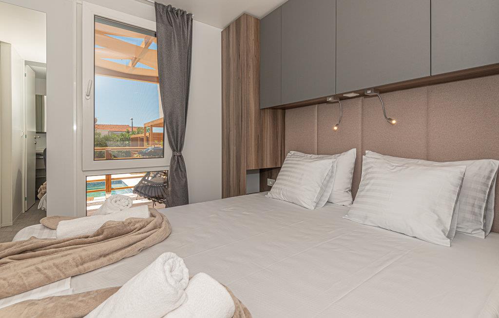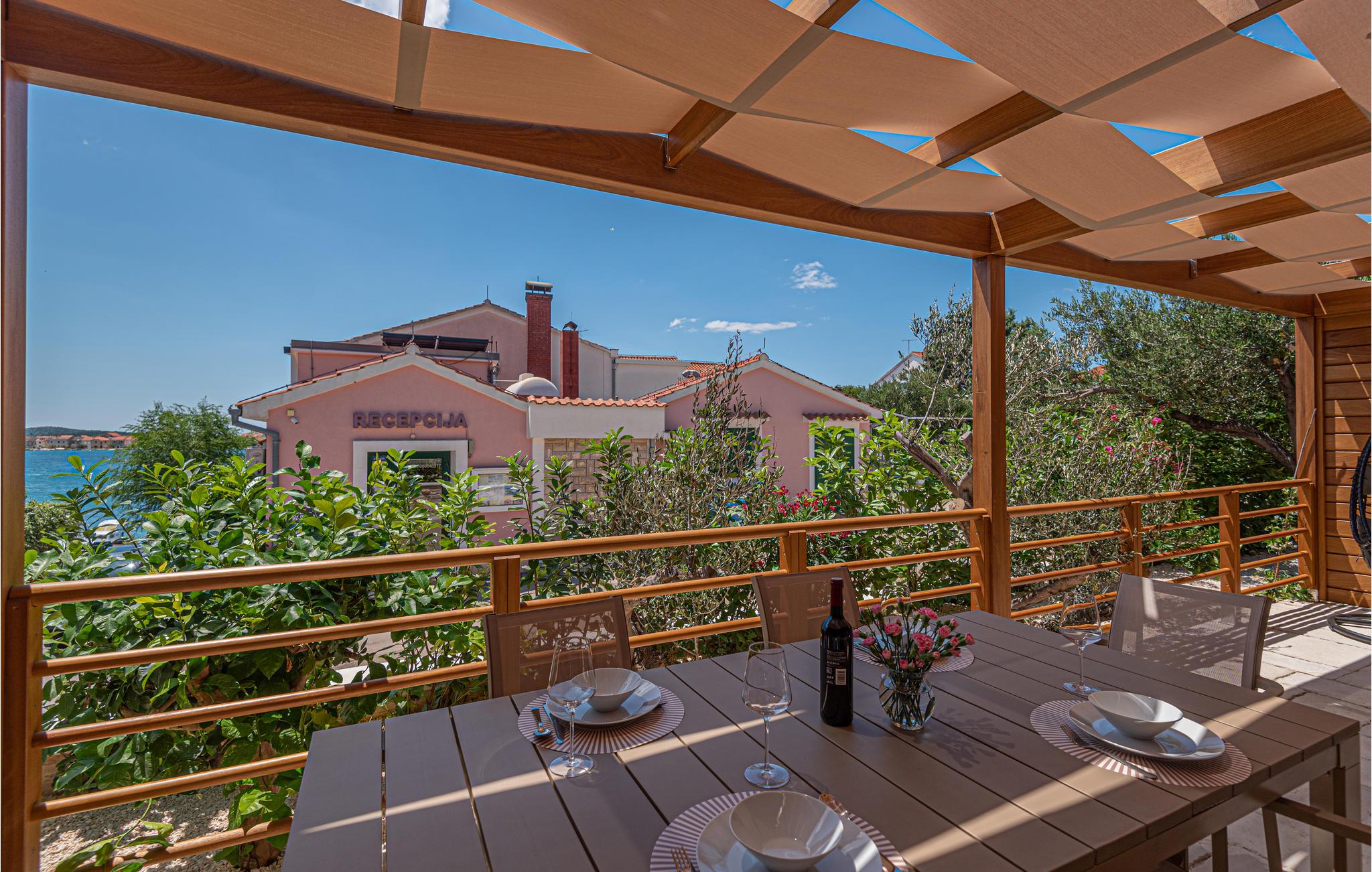 Tilbring en uforglemmelig ferie ikke langt fra havet. Den charmerende kystby Brodarica er det perfekte sted for jeres afslappende ferie med denne smukke bolig. Træd ind i det kompakte hjem udstyret med alt, hvad I skal bruge for at føle jer godt tilpas. Det venlige og lyse farvedesign og komfortable møbler giver jer et fantastisk overordnet koncept. I kan også nyde den rummelige terrasse med pergola, hvor I kan grille om aftenen eller sidde i kurvestolen med en bog. En fælles pool er også tilgængelig på ejendommen og lover jer en afkøling og udsigt over havet.