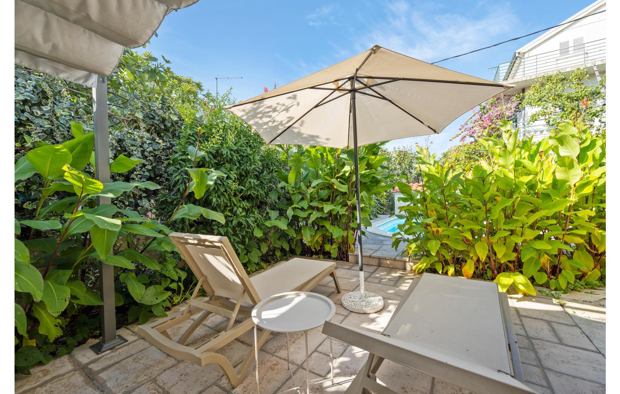 Uden for huset er der flere dejlige steder at slappe af i solen eller i skyggen. Snup en masse friske dukkerter i den fælles pool, nyd solbadning i en liggestol og milde sommeraftener på den overdækkede terrasse.
