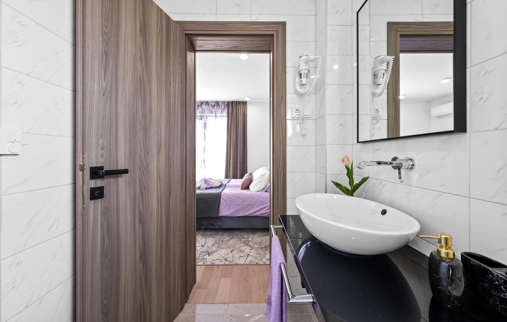 Tag familien under armen og rejs til Kroatien, hvor I en kort køretur fra Sibenik får base i dette komfortable feriehus. Her får I godt med kvadratmeter over to etager og en indretning, der fremtræder flot og moderne i behagelige farveskalaer, der får skuldrene til at sænke sig med det samme, I stiller kufferterne. Soveværelserne har badeværelse en-suite, så I kan begynde dagen i ro og mag og nyde lidt privatliv, inden I mødes til morgenmaden i den åbne stue med det tilstødende rummelige køkken.