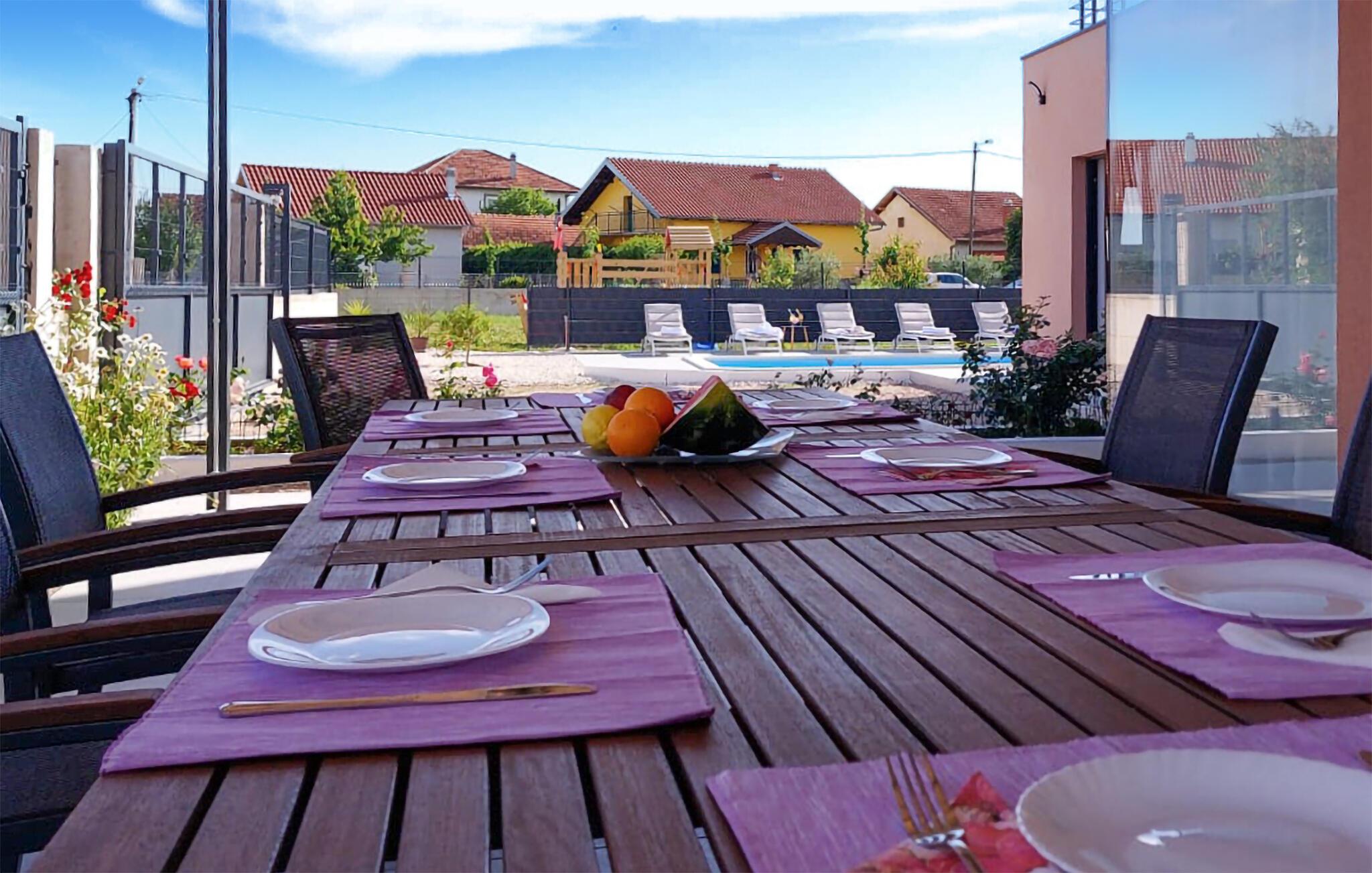 Gør jer klar til årets familieferie i dette lækre hus med en rummelig tagterrasse og privat pool.