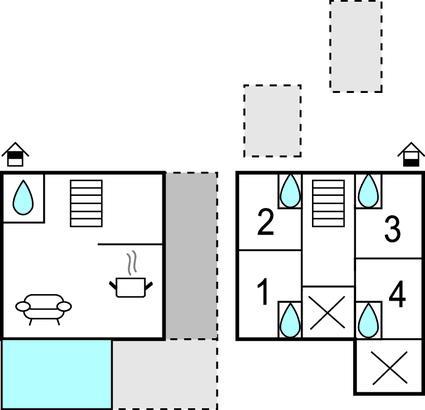 Badeværelse 3m2 (nr. 1) - WC. Varmt og koldt vand. Bruser