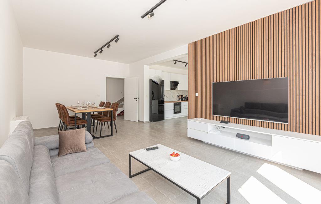 Lyse lokaler, komfortable faciliteter og moderne møbler danner rammen om en vellykket pause. Slap af i en tiltalende atmosfære af enkel elegance, spis sammen ved det lange spisebord og sæt jer godt til rette i sofaen efter en begivenhedsrig dag, måske med en god film.