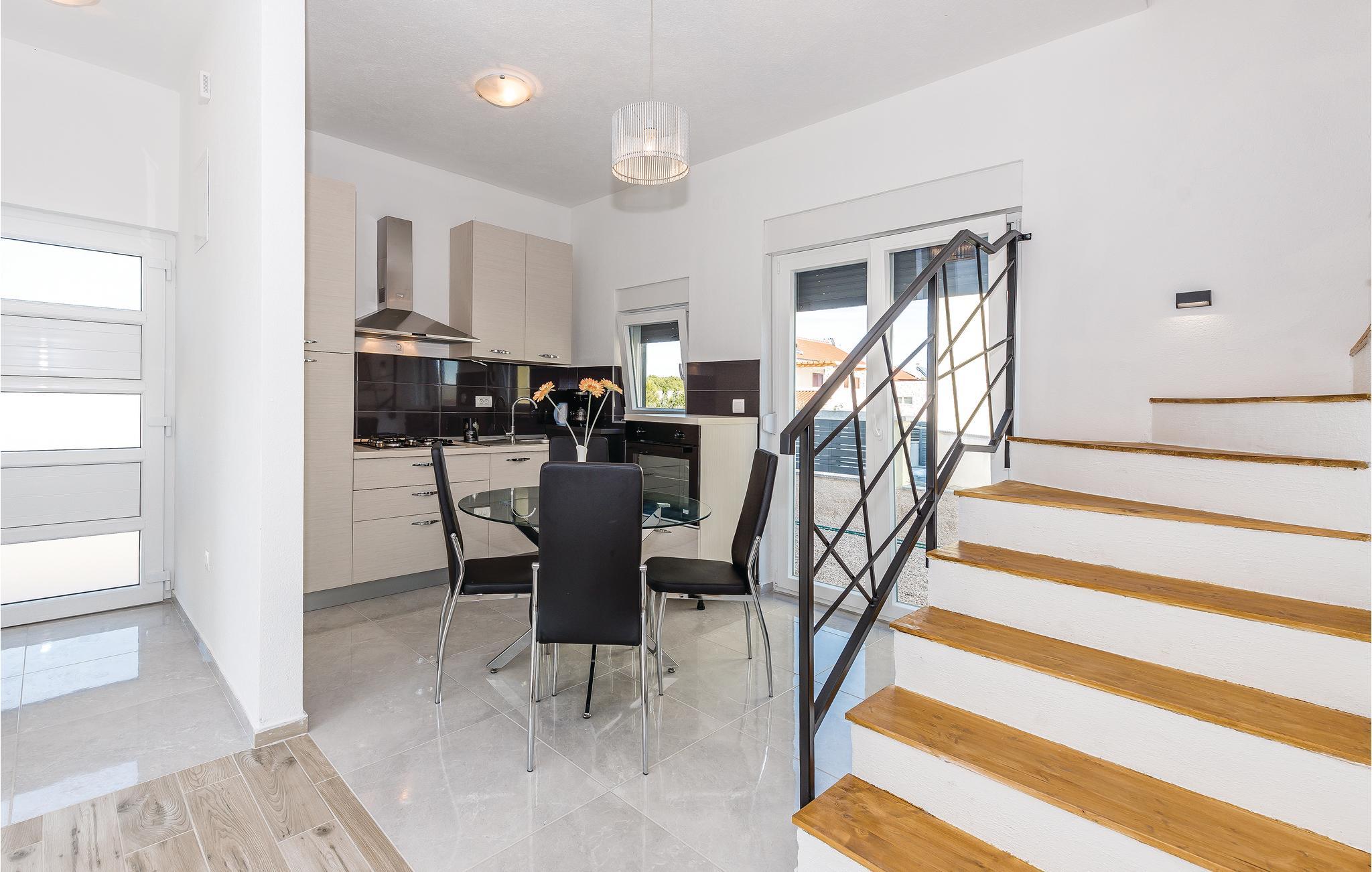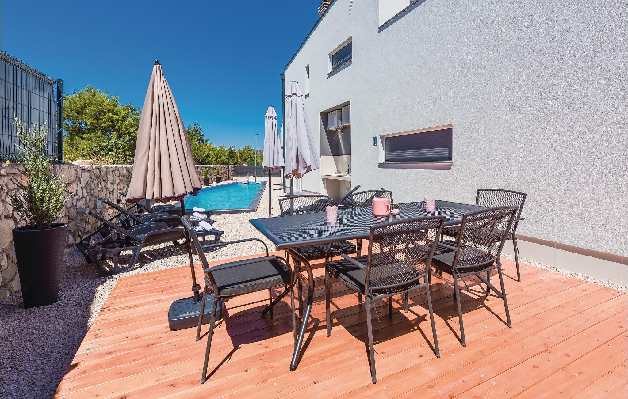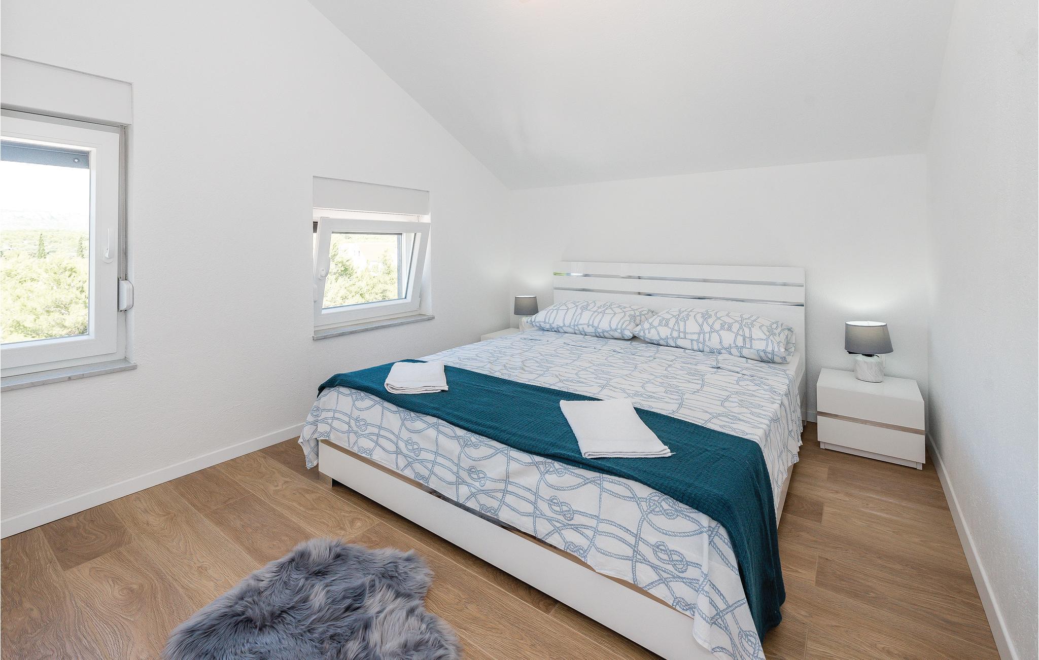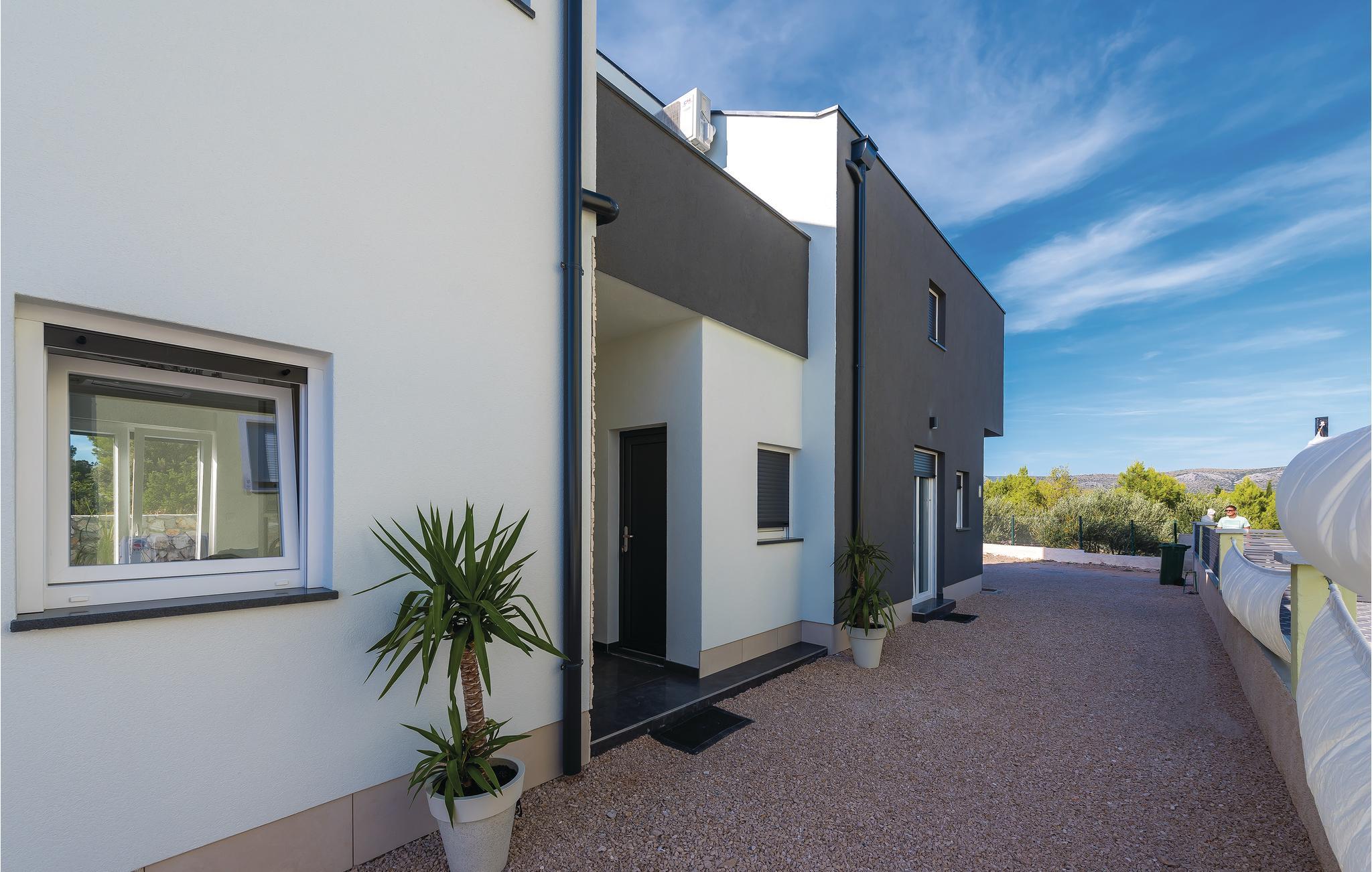 I dette attraktive feriehus med pool, er der to lejligheder der hver fordeler sig over to etager, i den lille kystby Brodarica, nær den populære turistby Šibenik. Det er ideelt til familier eller vennegrupper der rejser sammen men gerne vil bevare privatsfæren. Ud over den moderne indretning giver den udendørs pool, der ligger på naturgrunden, den helt rigtige feriefornemmelse. På øverste etage er der skrå vægge der går ned til 160 cm i siden, fra denne etage er der en herlig udsigt over både naturen og havet. Tag på tur til nationalparkerne Kornatiøerne og til Krka ligesom det er skønt at gå en romantisk aftentur på strandpromenaden Lungomare. Hver ferielejlighed har sin egen indgang.