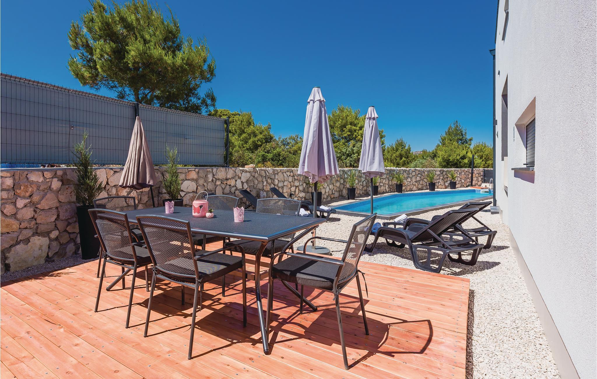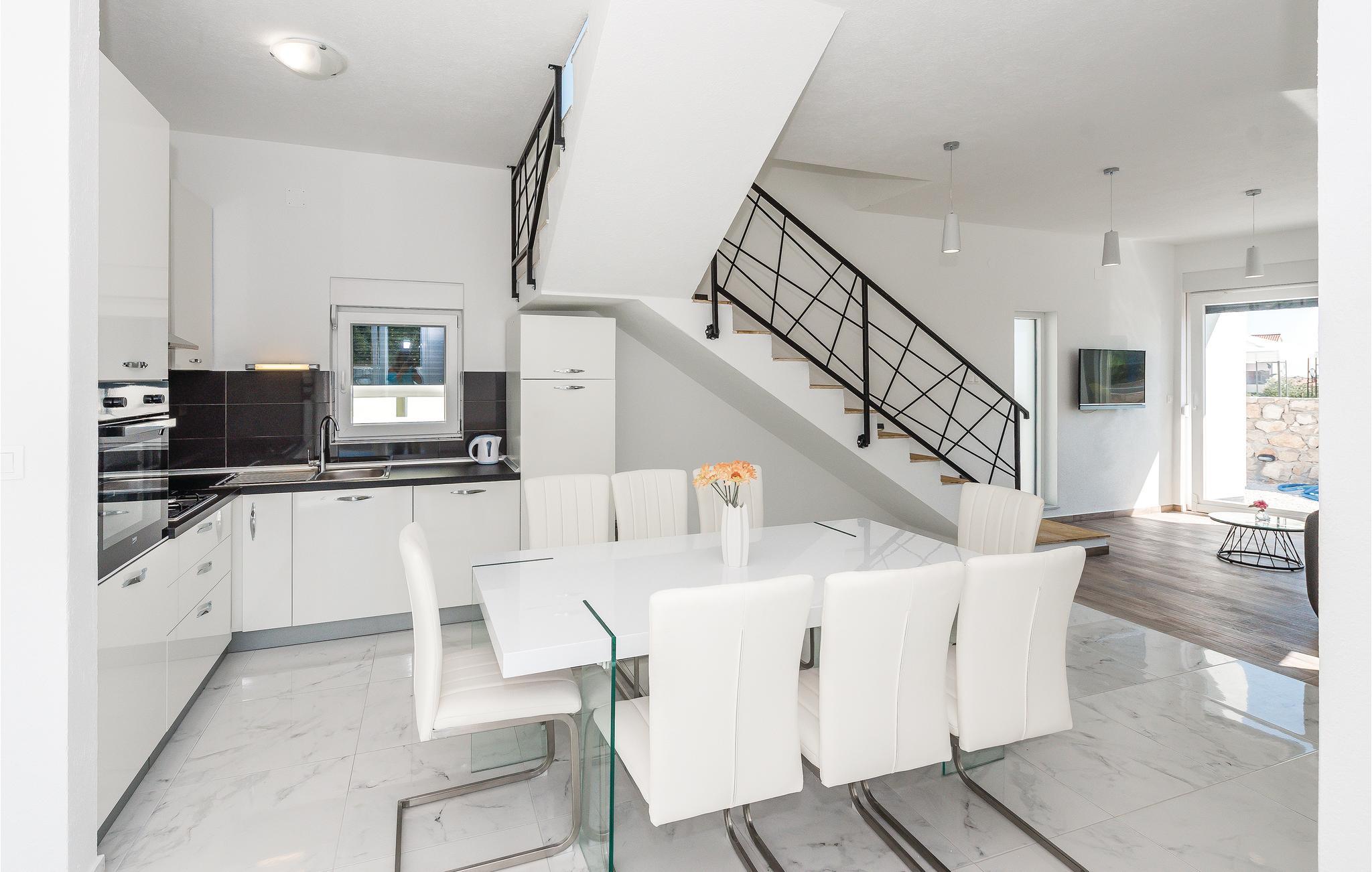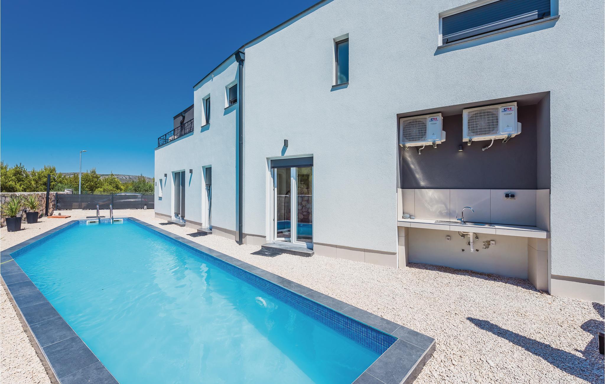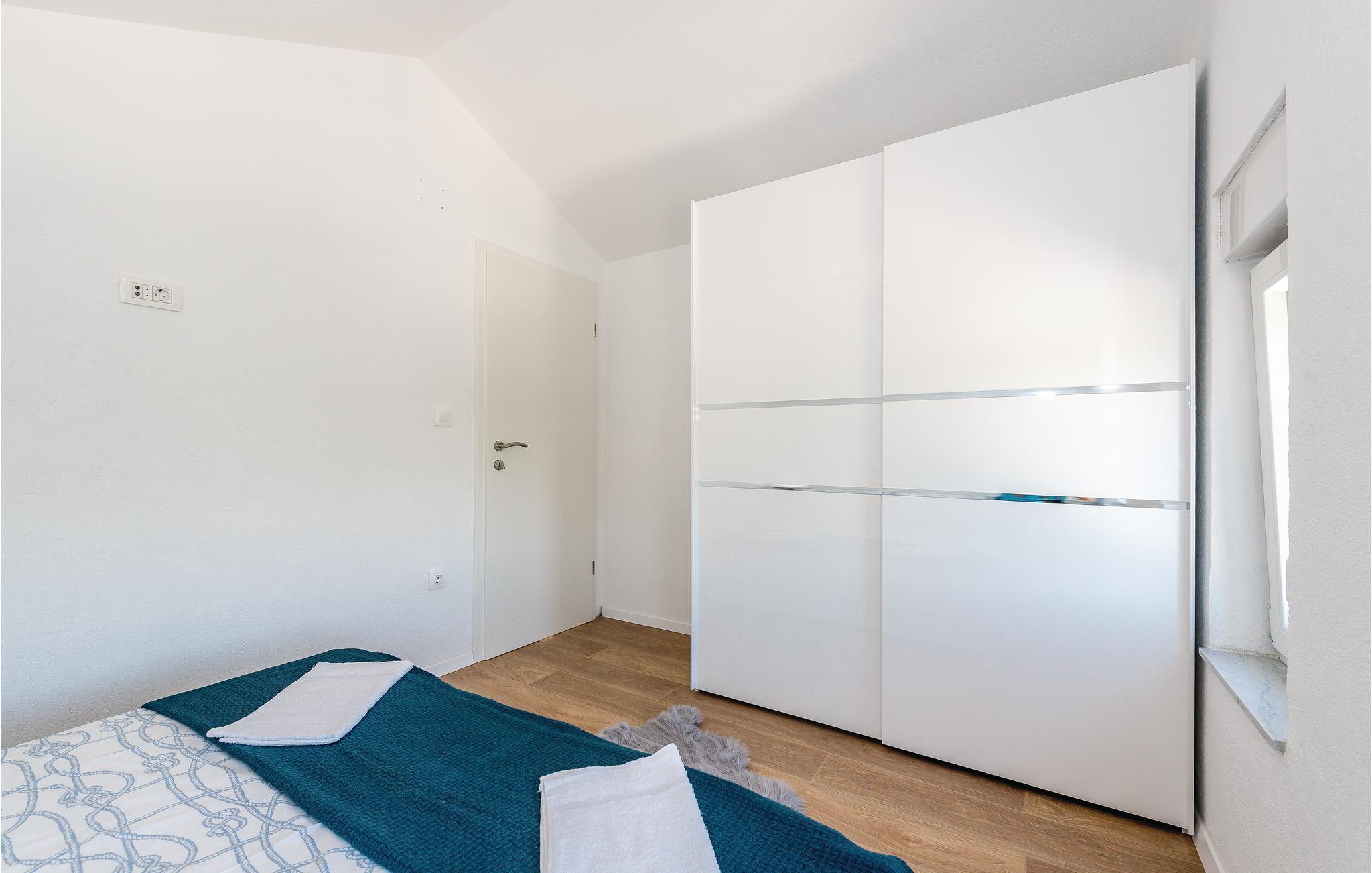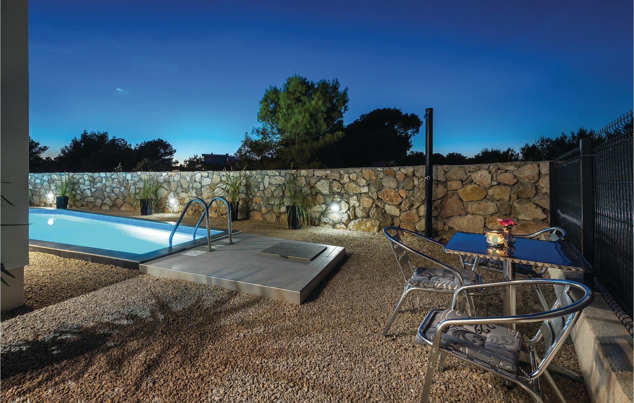 I dette attraktive feriehus med pool, er der to lejligheder der hver fordeler sig over to etager, i den lille kystby Brodarica, nær den populære turistby Šibenik. Det er ideelt til familier eller vennegrupper der rejser sammen men gerne vil bevare privatsfæren. Ud over den moderne indretning giver den udendørs pool, der ligger på naturgrunden, den helt rigtige feriefornemmelse. På øverste etage er der skrå vægge der går ned til 160 cm i siden, fra denne etage er der en herlig udsigt over både naturen og havet. Tag på tur til nationalparkerne Kornatiøerne og til Krka ligesom det er skønt at gå en romantisk aftentur på strandpromenaden Lungomare. Hver ferielejlighed har sin egen indgang.