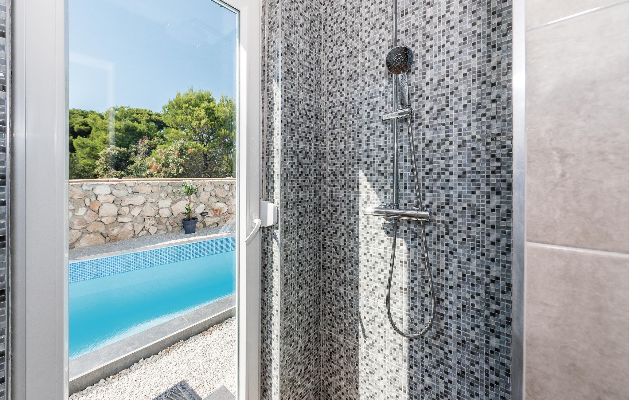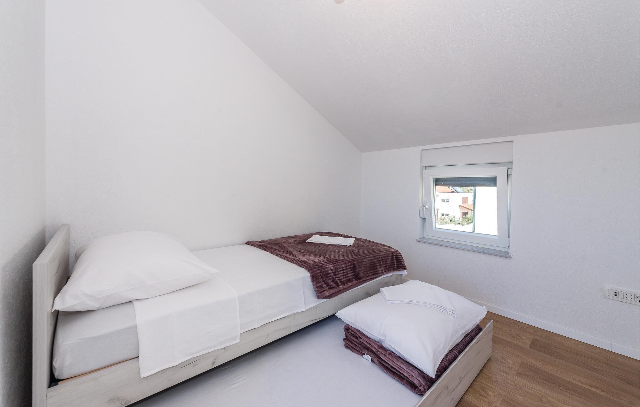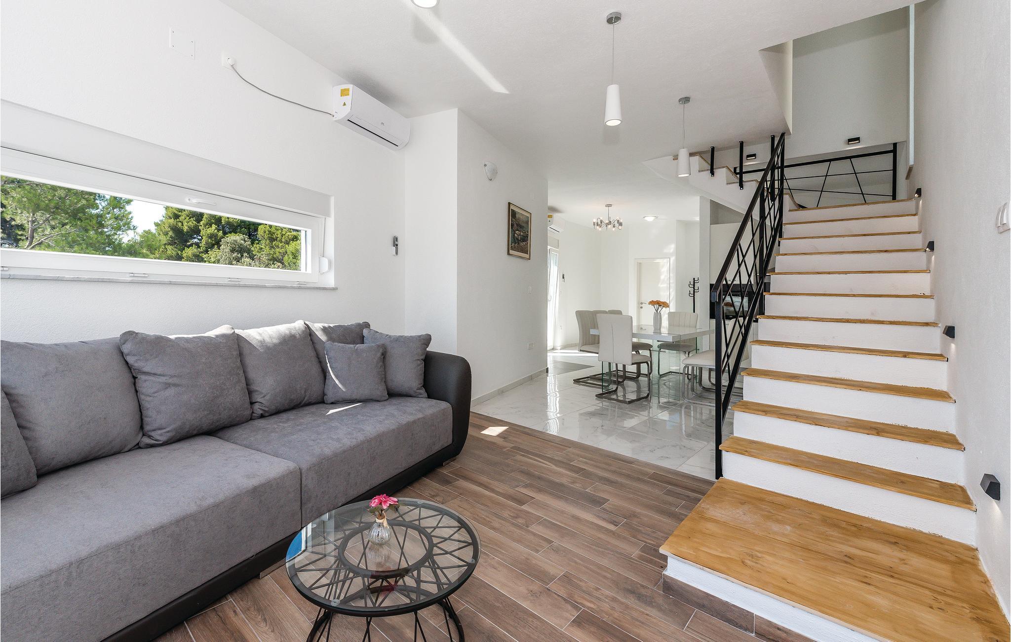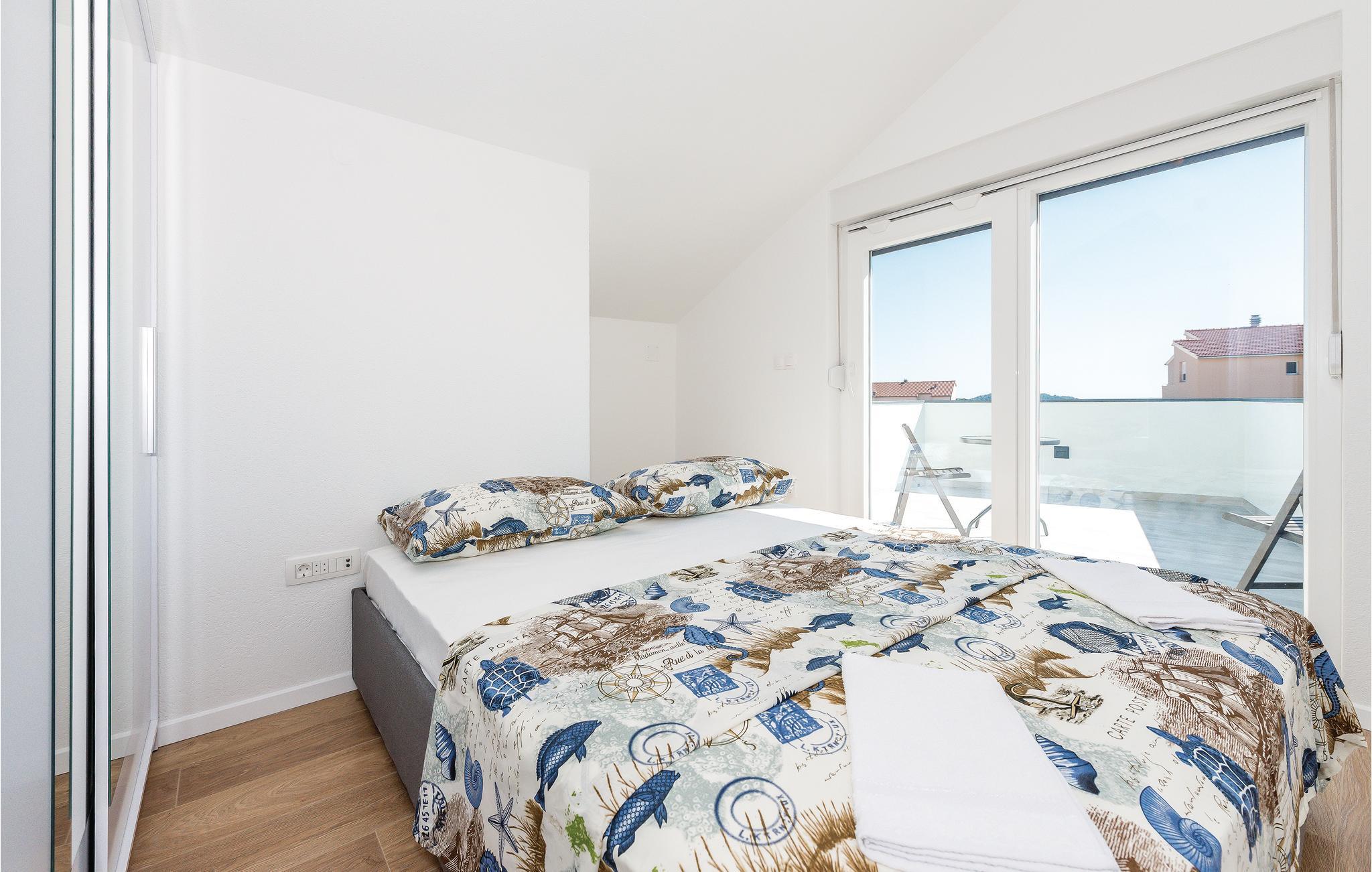 I dette attraktive feriehus med pool, er der to lejligheder der hver fordeler sig over to etager, i den lille kystby Brodarica, nær den populære turistby Šibenik. Det er ideelt til familier eller vennegrupper der rejser sammen men gerne vil bevare privatsfæren. Ud over den moderne indretning giver den udendørs pool, der ligger på naturgrunden, den helt rigtige feriefornemmelse. På øverste etage er der skrå vægge der går ned til 160 cm i siden, fra denne etage er der en herlig udsigt over både naturen og havet. Tag på tur til nationalparkerne Kornatiøerne og til Krka ligesom det er skønt at gå en romantisk aftentur på strandpromenaden Lungomare. Hver ferielejlighed har sin egen indgang.