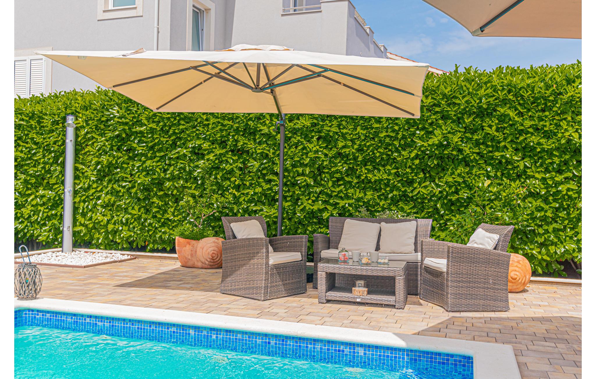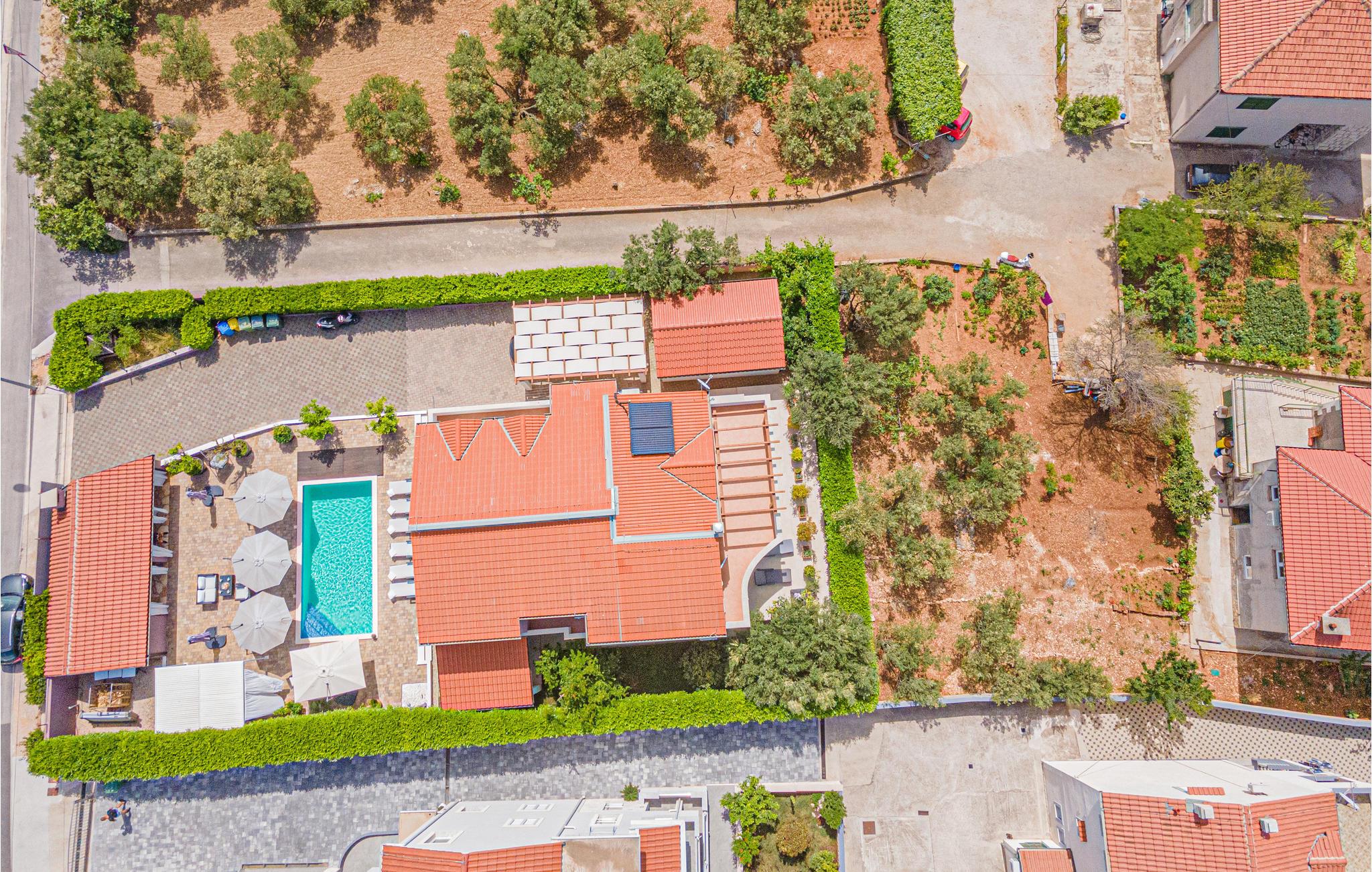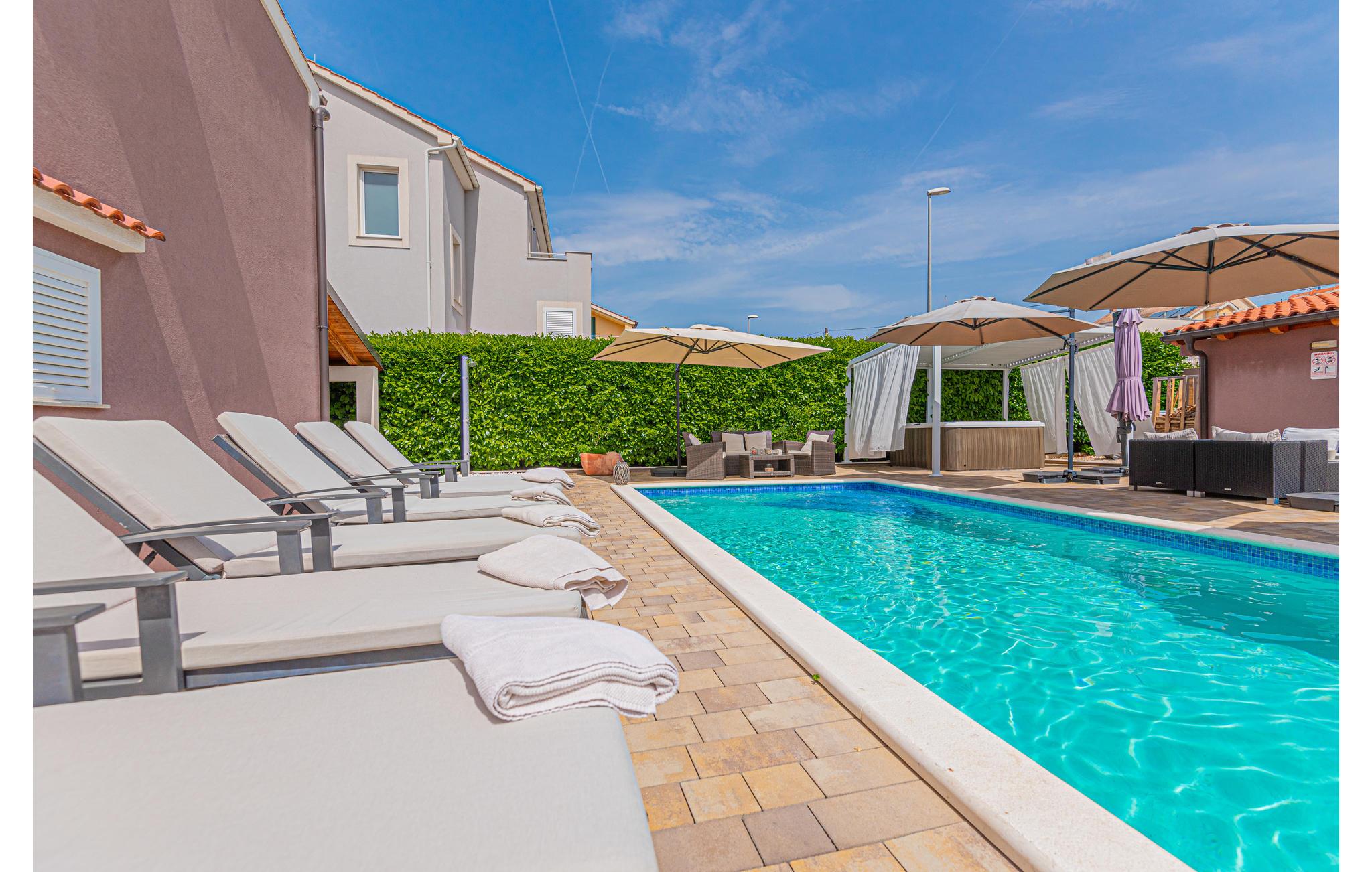 Dette moderne indrettede feriehus ligger i den lille by Brodarica i nærheden af Sibenik. Beliggende lige ved havet består huset af to separate enheder, der er forbundet med et trappehus. Dette gør en ferie for flere familier perfekt. Fra de store terrasser kan I nyde udsigten over havet. Poolen i haven sørger for afkøling, og mens I laver aftensmad på grillen på terrassen, kan børnene lege udenfor. I Brodarica er der talrige beton- og kiselstrande, restauranter og barer. En dagstur til nationalparkerne Krka eller Kornati kan anbefales.