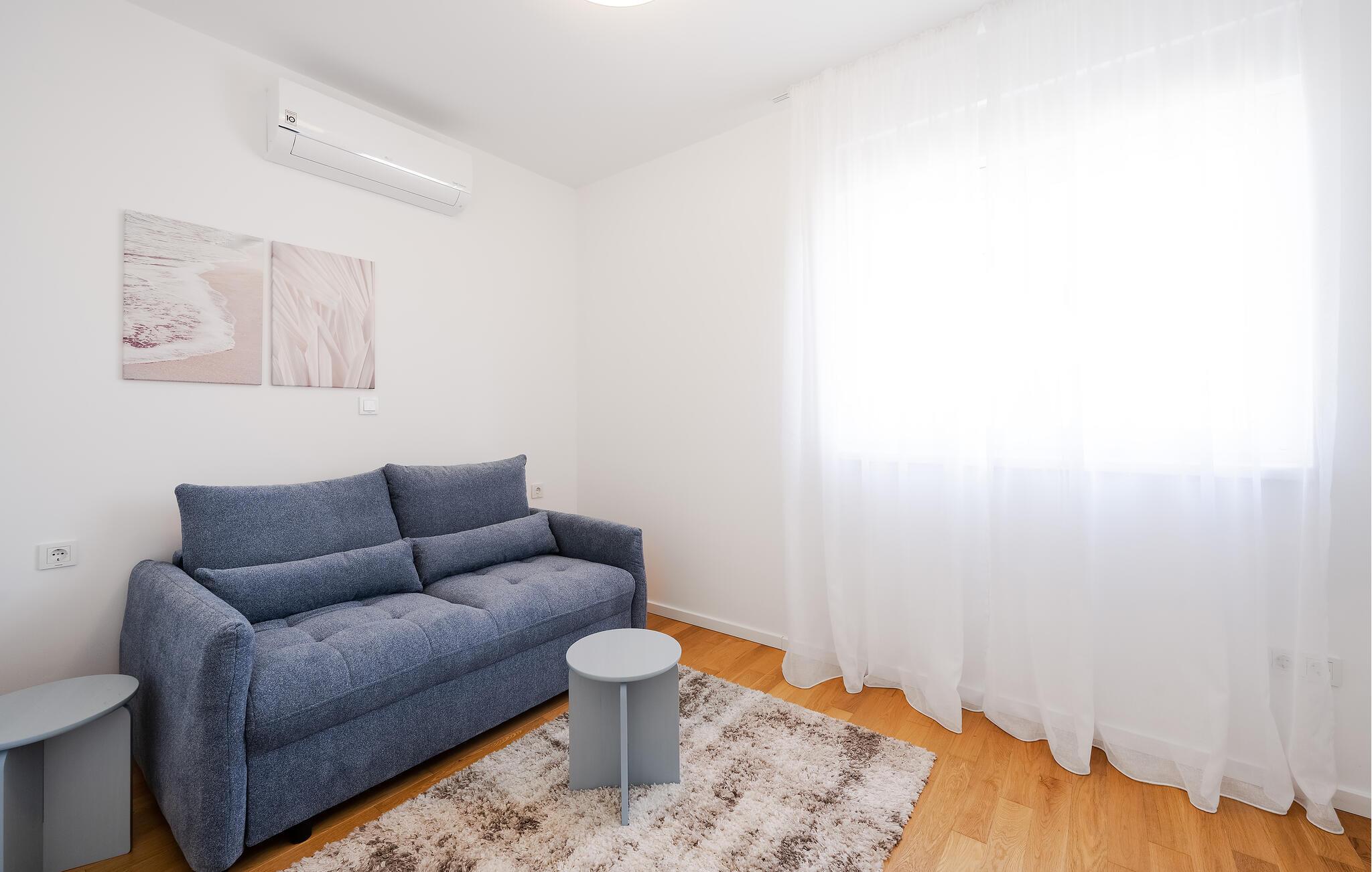 Nyd komfort, elegance og muligheden for spontant at gå til havet for en svømmetur, mens I tilbringer en afslappende ferie i denne lyse, moderne ferielejlighed. Tilbered kroatiske specialiteter eller romantiske middage i det åbne designerkøkken. Find jer godt til rette i den store, indbydende sofa, stream en spændende serie eller organiser hyggelige spilleaftener.