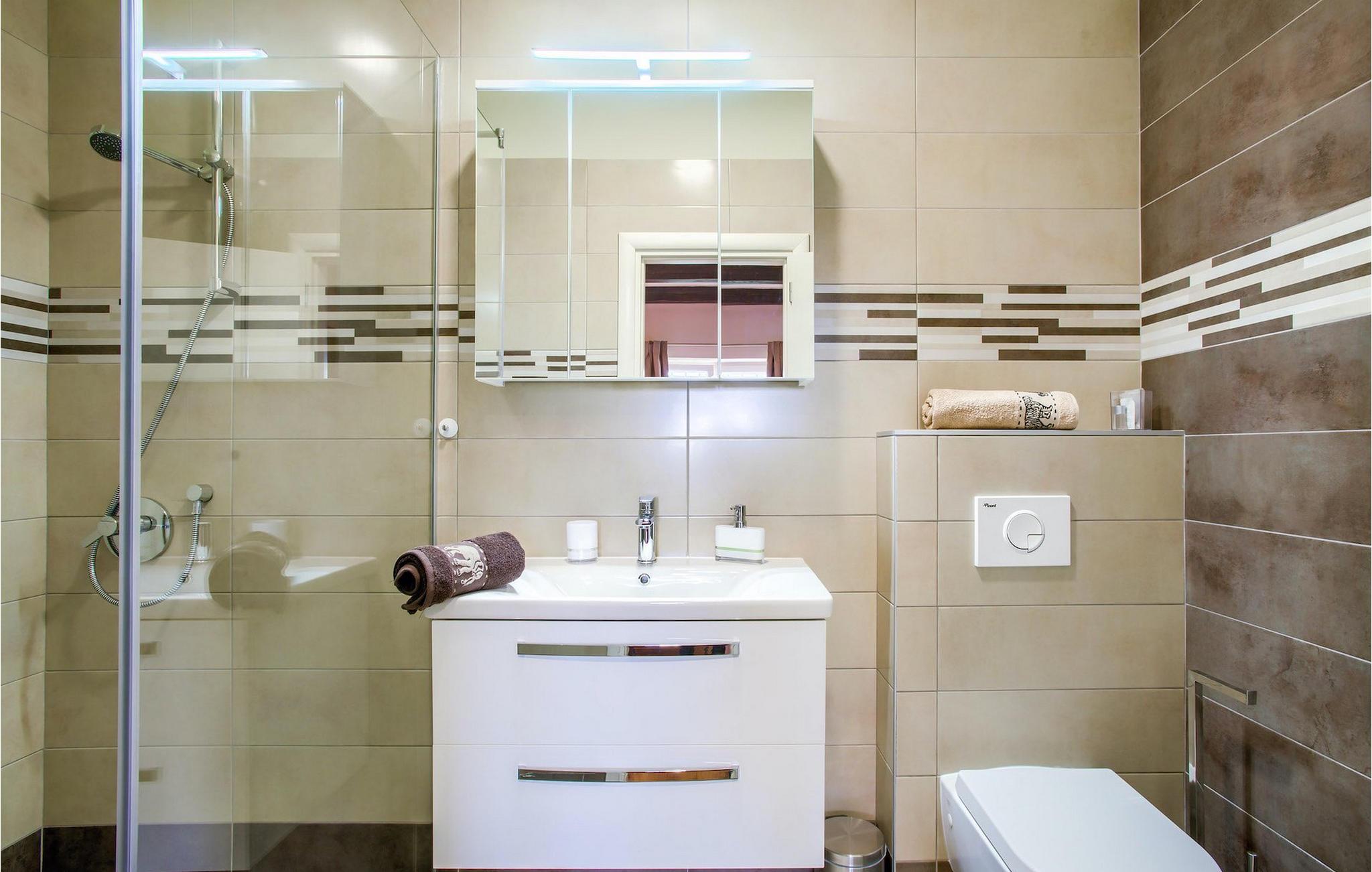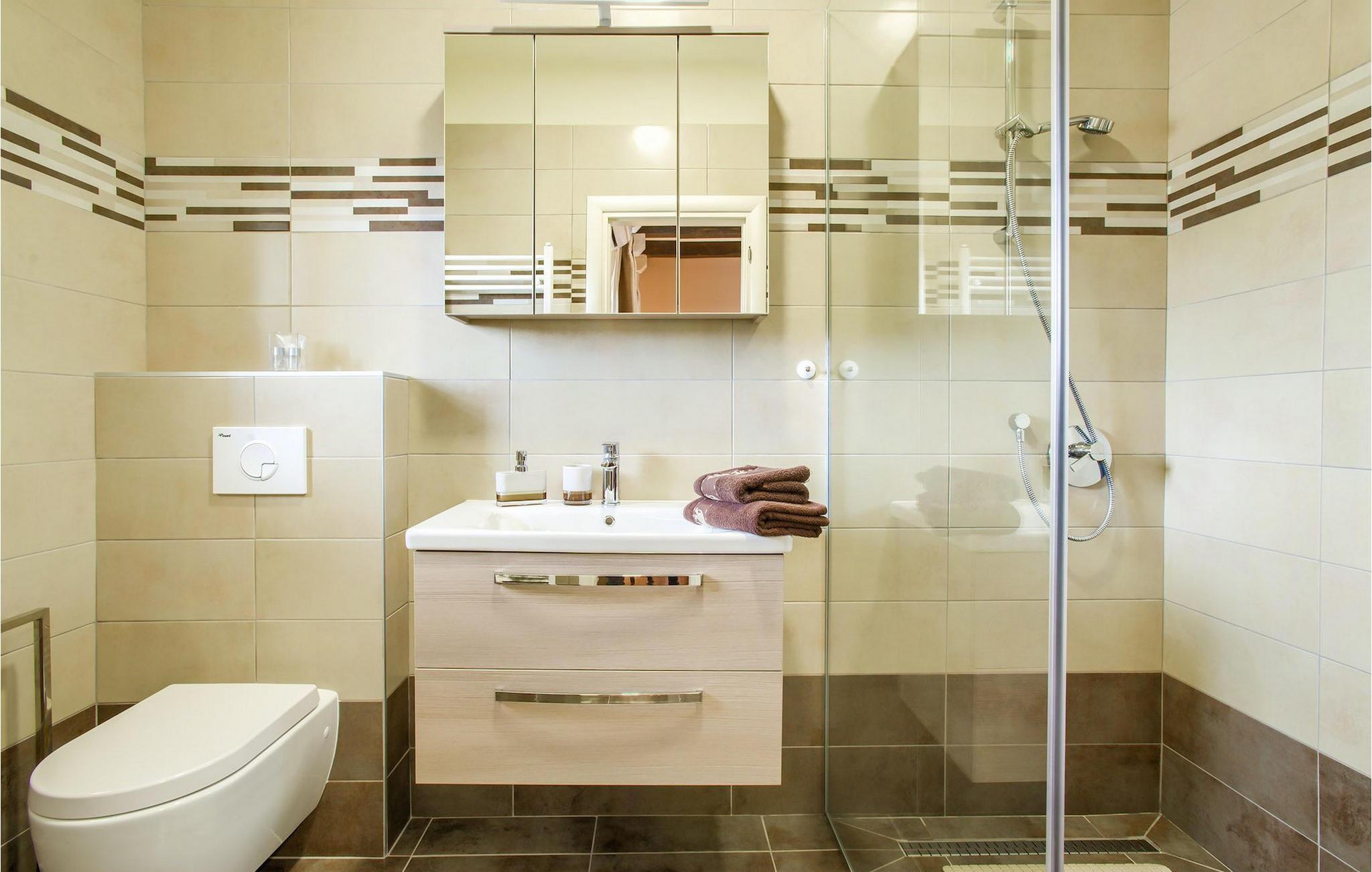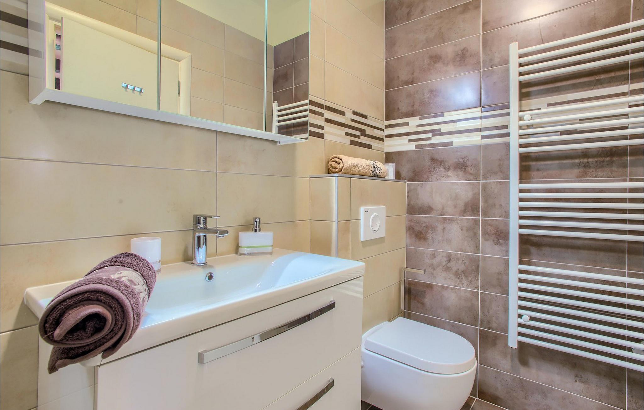 Badezimmer (nr. 2) - WC. Warmes und kaltes Wasser. Dusche
