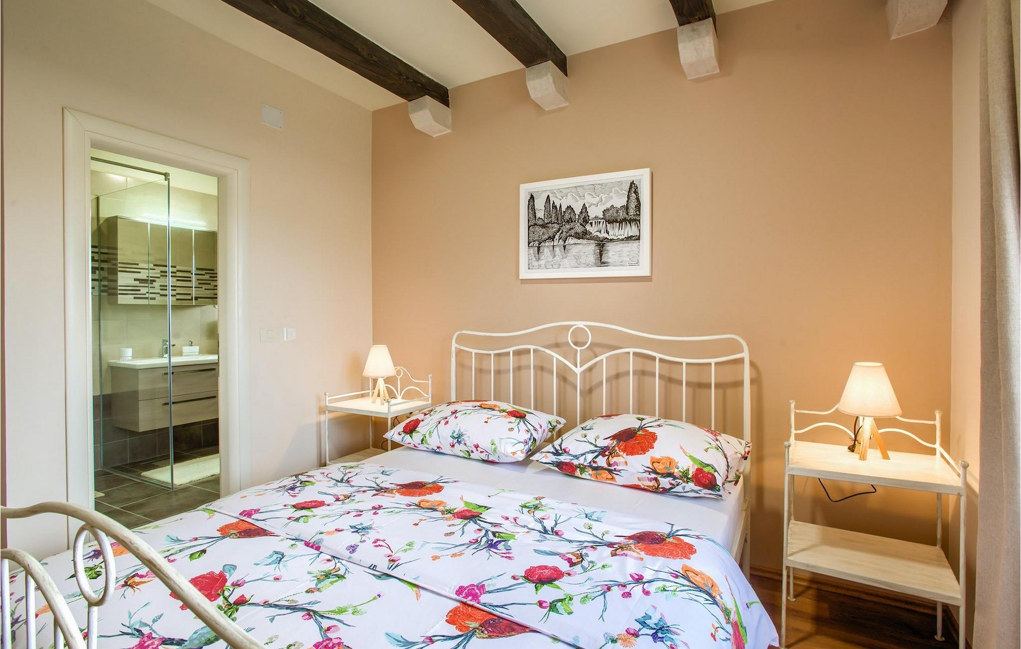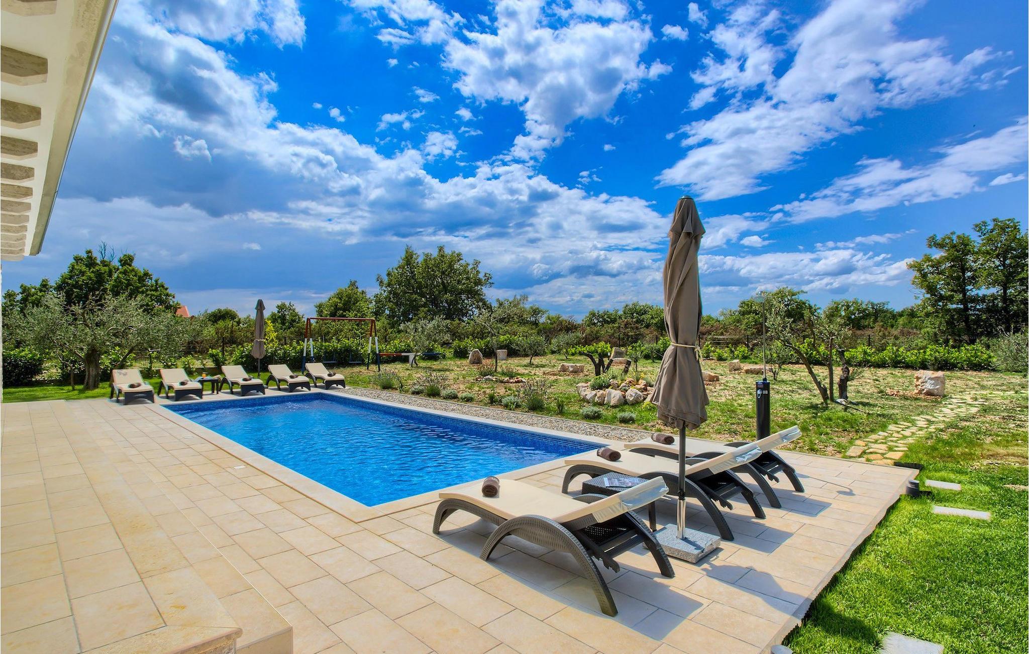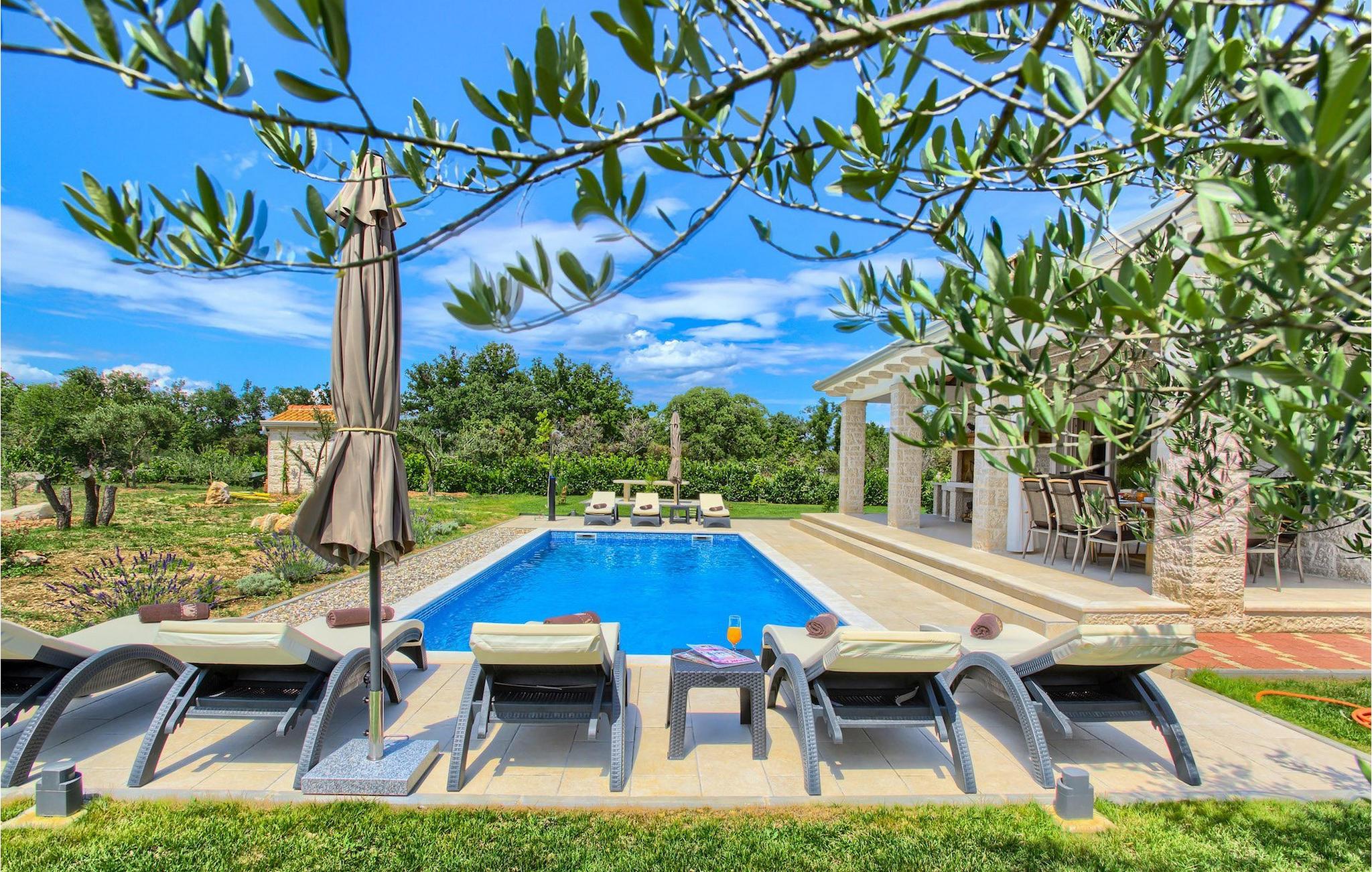 Villa Mary verbindet die Eigenschaften des dalmatinischen Hinterlandes mit ihrem Aussehen und ihrer Umgebung. Das Exterieur aus Stein, das sich auch in der Inneneinrichtung spiegelt, Holzbalken an den Decken und die Holzdetails der Möbel verströmen dalmatinischen Charme, aber alle Annehmlichkeiten für einen modernen Lebensstil sind natürlich vorhanden. Dieses einstöckige Haus ist eine ausgezeichnete Wahl für Familien mit Kindern, da alle Zimmer leicht zugänglich sind. Der offene Grundriss von Wohnzimmer, Esszimmer und Küche ermöglicht einen direkten Zugang zur schönen Außenterrasse. Vier geräumige Schlafzimmer, Badezimmer in jedem Zimmer und Annehmlichkeiten in Form von Klimaanlage und Fernseher stellen Ihre Privatsphäre und Komfort für optimale Erholung sicher. Verbringen Sie Ihre Tage im Pool, umgeben von Olivenbäumen und dem Duft von Lavendel für die nötige Abkühlung in der Sommerhitze oder bei einem Drink auf den vielen Liegestühlen rund um den Pool. Auch Ihre Kleinen kommen nicht zu kurz am Pool, aber auch mit den eigens für sie aufgestellten Schaukeln im Garten. Beginnen Sie Ihren Tag mit einem Morgenkaffee und lassen Sie diesen mit dem Abendessen auf der Außenterrasse mit herrlichem Blick auf den Garten ausklingen.Das dalmatinische Hinterland, insbesondere die Gegend um Šibenik, ist bekannt für die wunderschöne Natur, hervorragendes Klima und köstliche Küche. Nur eine kurze Autofahrt von der Villa entfernt finden Sie Berge, wunderschöne Wasserfälle im Nationalpark Krka und die sonnige kroatische Küste. Wenn Sie gerne erkunden, empfehlen wir Ihnen, die Stadt Šibenik zu besuchen, die für ihr reiches kulturelles Erbe bekannt ist. Die Sehenswürdigkeiten, die besonders hervorstechen, sind die Kathedrale des Hl. Jakob und die Festung des Hl. Nikolaus, die in die UNESCO-Liste des Weltkulturerbes aufgenommen wurden. Die Villa befindet sich auch in der Nähe der Schlucht des Flusses Cikola, wo Sie wandern können oder diejenigen, die Adrenalin suchen, können dort die Seilrutsche ausprobieren und die Region aus der Vogelperspektive erleben.